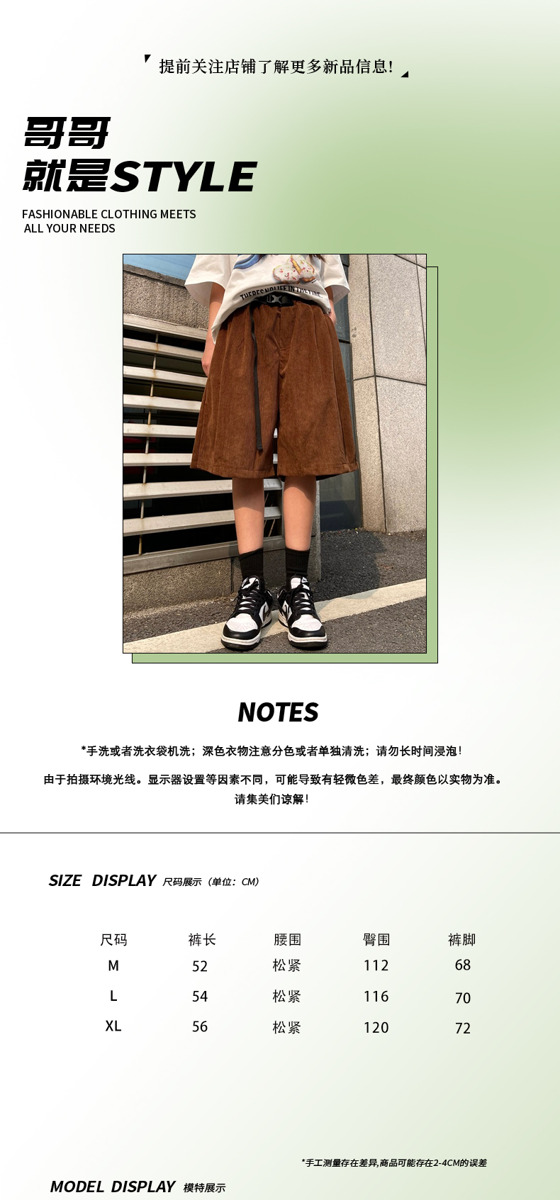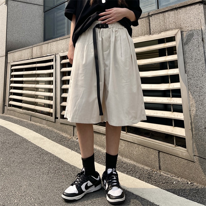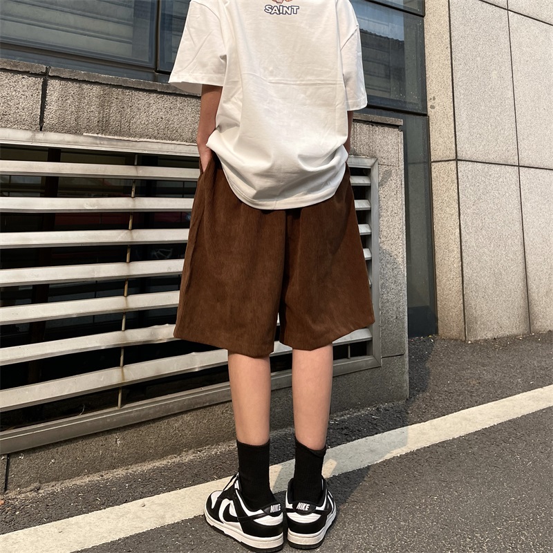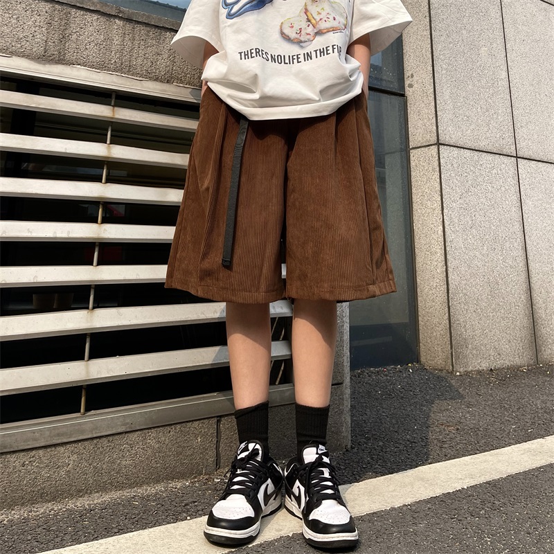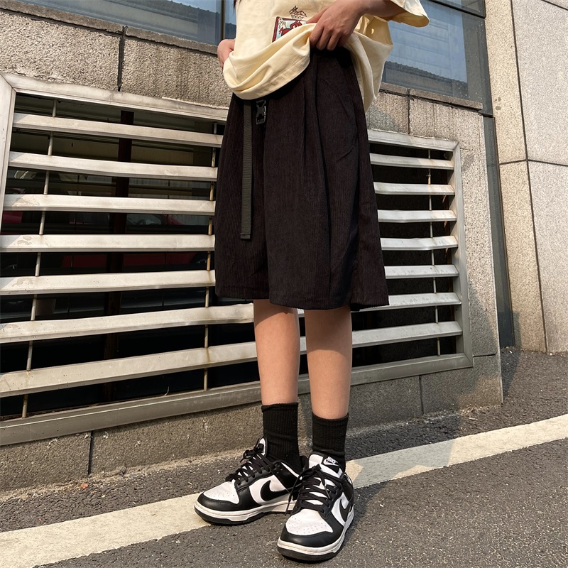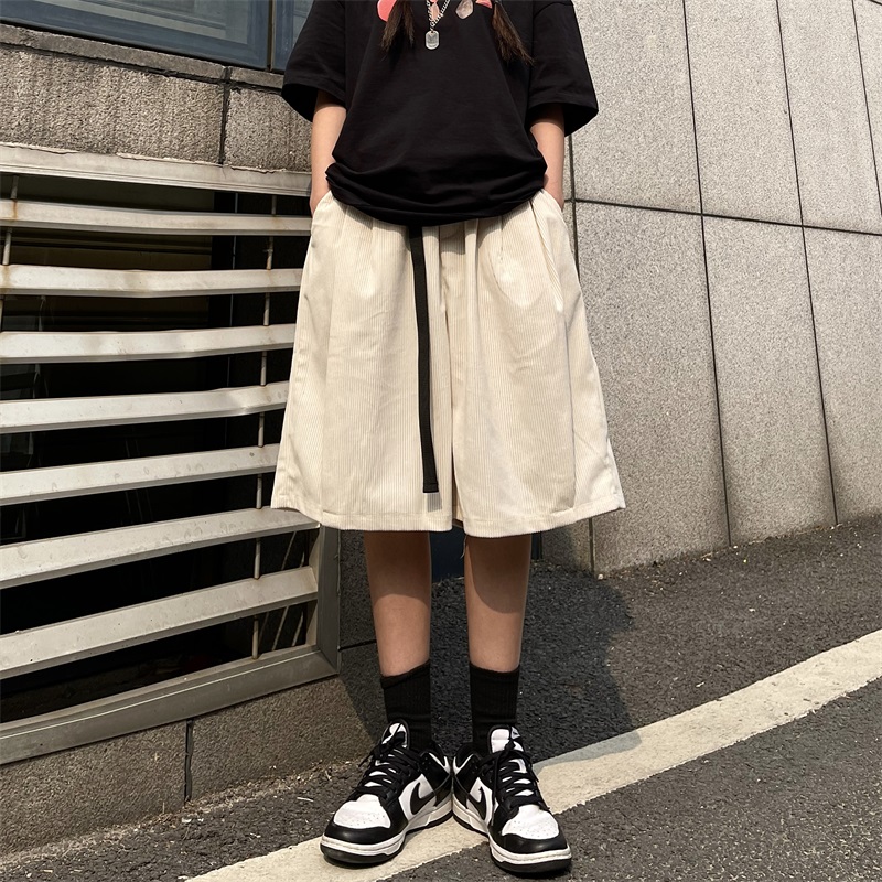 日系街頭短款休閒褲女夏季復古燈芯絨五分褲闊腿寬鬆百搭直筒短褲