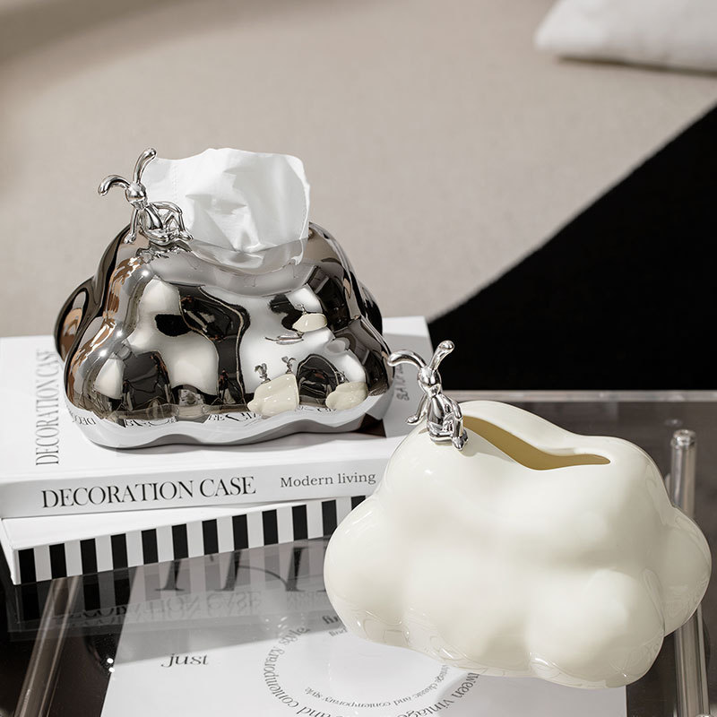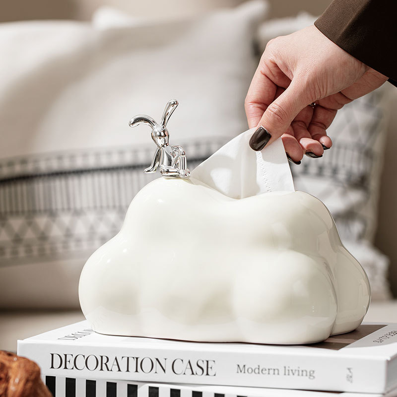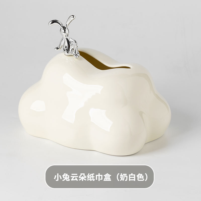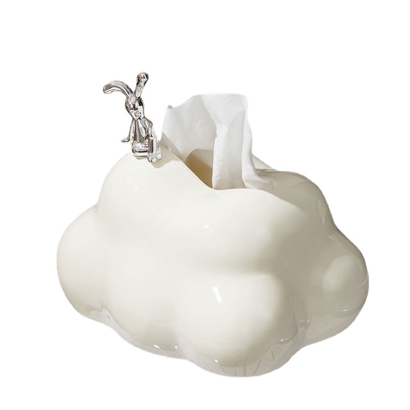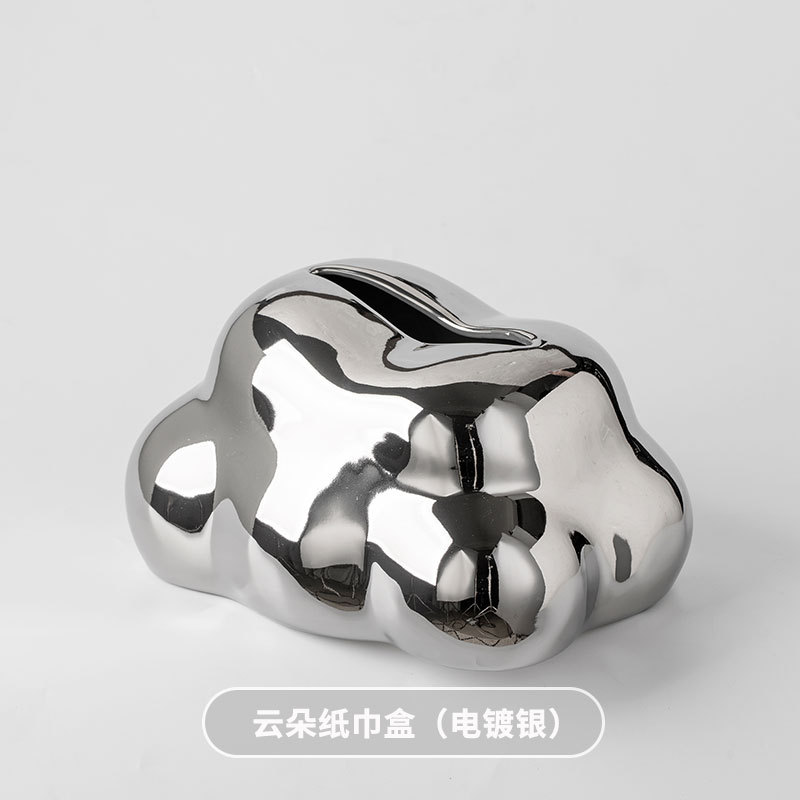轻奢陶瓷桌面纸巾盒家用摆件云朵抽纸盒卫生间电镀纸巾收纳盒批发