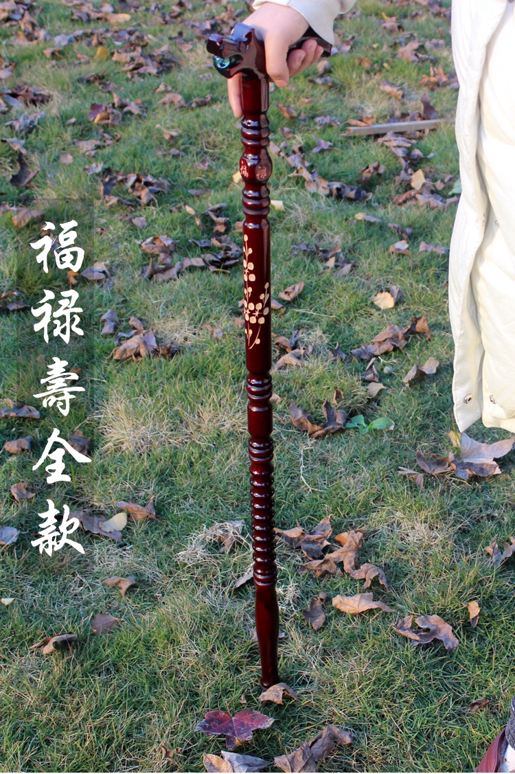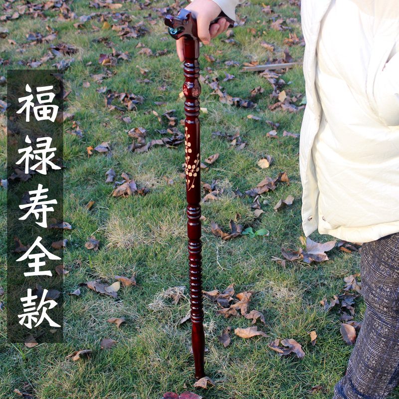 福祿壽雕花實木手杖老年人龍頭柺杖刻字防滑老人木頭柺棍登山禮品
