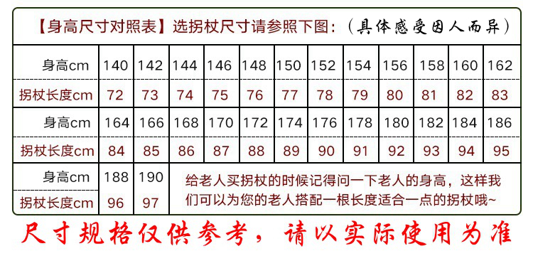 顏色分類 龍頭 福如東海 壽比南山 款,龍頭 福祿壽全 款,實木 葫蘆形款,下單給賣家留言處可備註,下方選項爲推薦尺碼錶,身高150cm 推薦柺杖77cm,身高152cm 推薦柺杖78cm,身高154cm 推薦柺杖79cm,身高156cm 推薦柺杖80cm,身高158cm 推薦柺杖81cm,身高160cm 推薦柺杖82cm,身高162cm 推薦柺杖83cm,身高164cm 推薦柺杖84cm,身高166cm 推薦柺杖85cm,身高168cm 推薦柺杖86cm,身高170cm 推薦柺杖87cm,身高172cm 推薦柺杖88cm,身高174cm 推薦柺杖89cm,身高176cm 推薦柺杖90cm