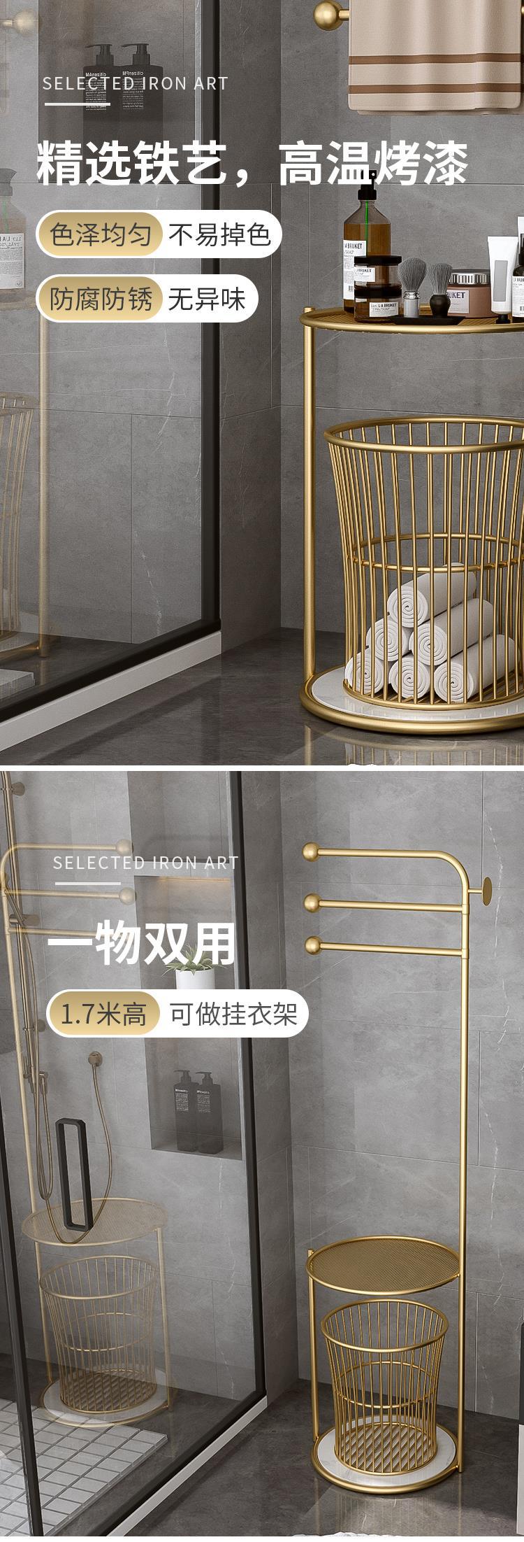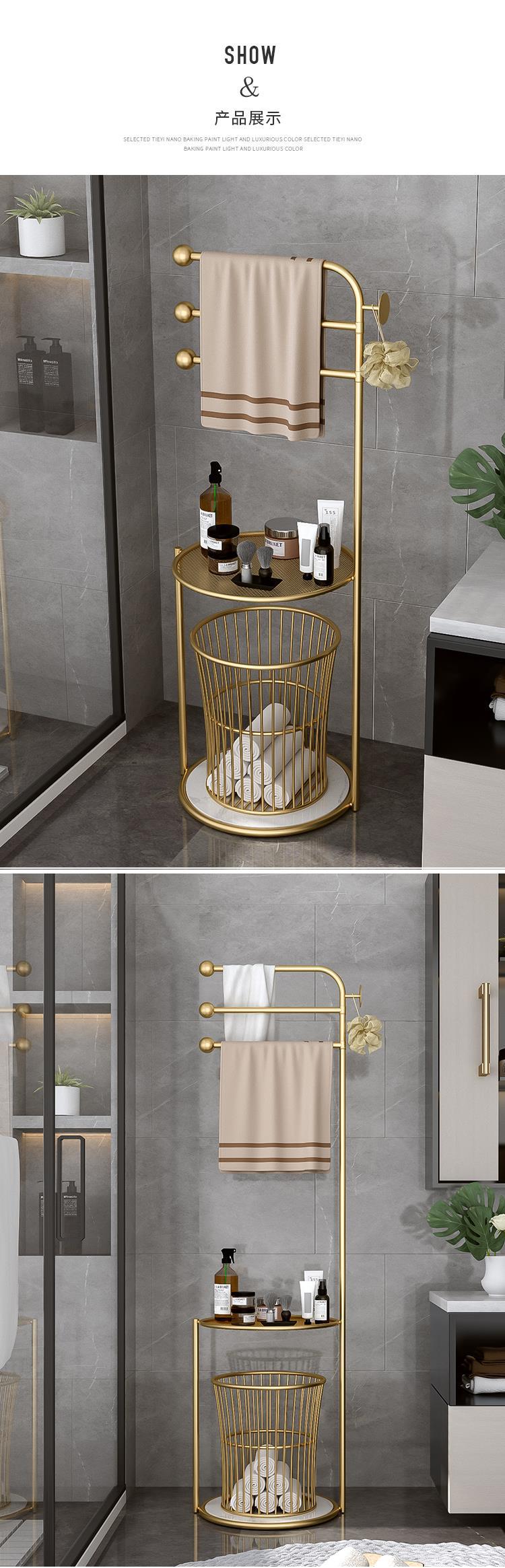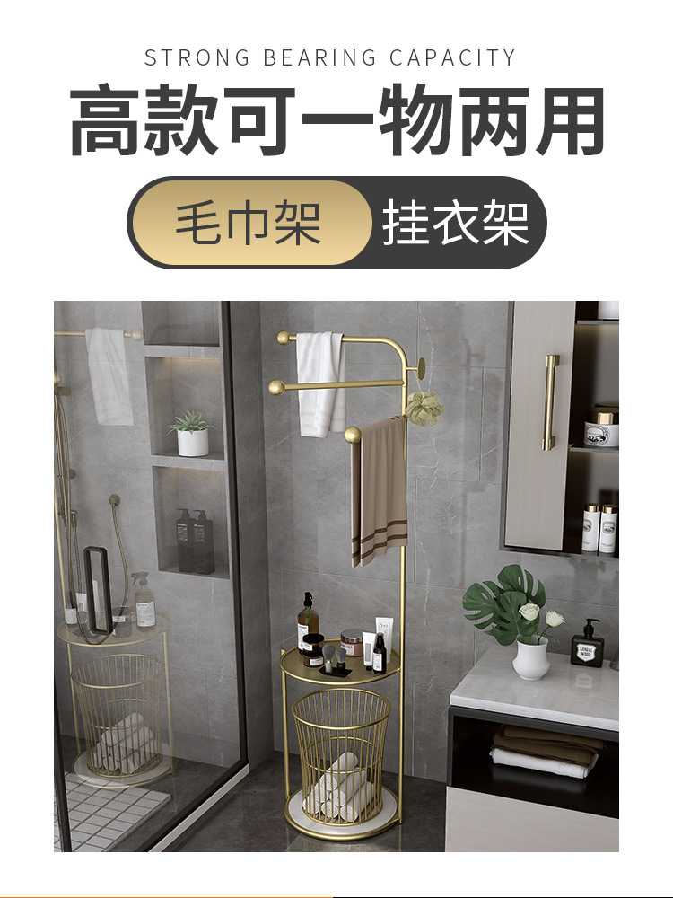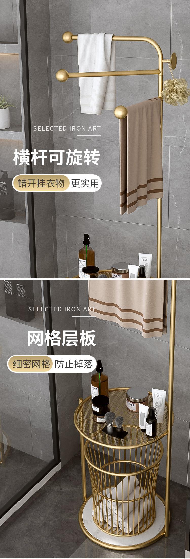 北欧卫生间置物架浴室轻奢毛巾架子落地 浴巾收纳架子防潮免打孔