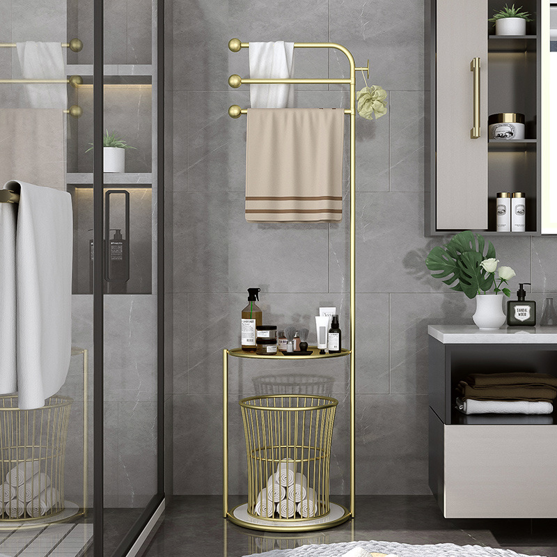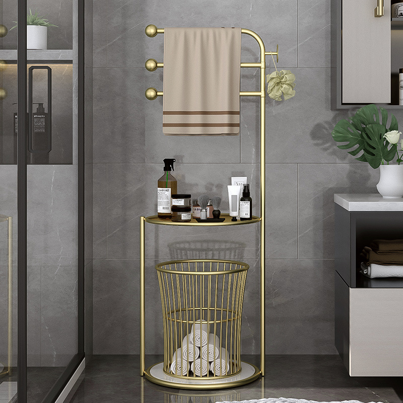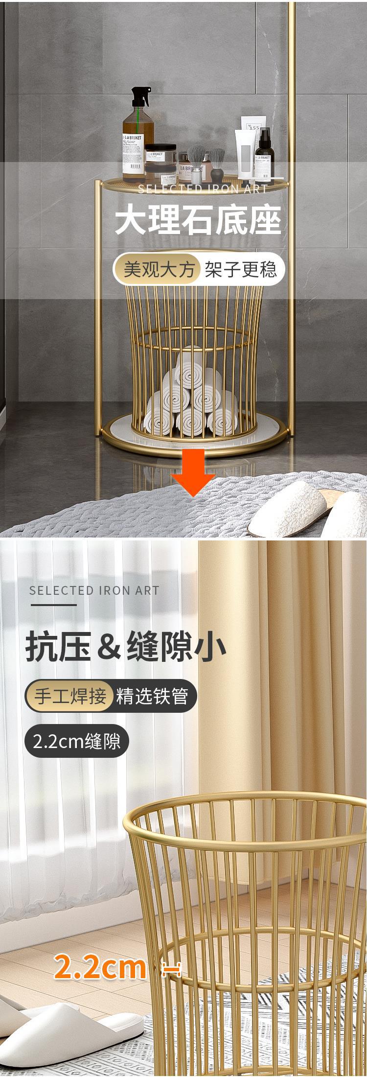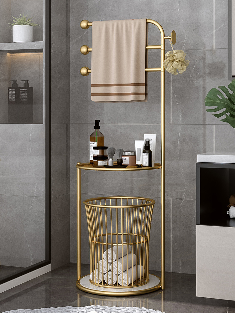 北欧卫生间置物架浴室轻奢毛巾架子落地 浴巾收纳架子防潮免打孔