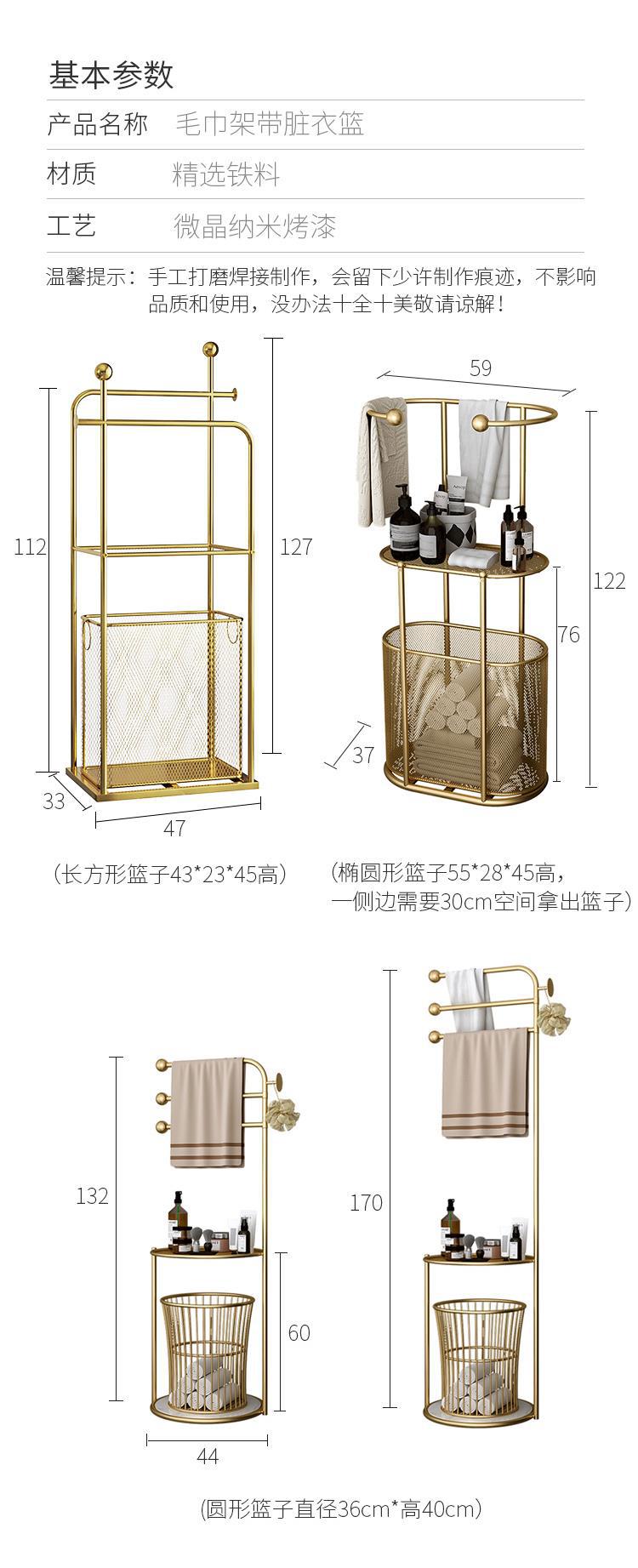 颜色 长方形金色毛巾架+篮子,长方形金色篮子,椭圆形金色毛巾架+篮子,椭圆形金色脏衣篮,矮款圆形金色毛巾架+篮子,高款圆形金色毛巾架+篮子,圆形金色脏衣篮,小户型椭圆形金色毛巾架+篮子,正方形篮子55*25*25cm,正方形篮子55*30*30cm