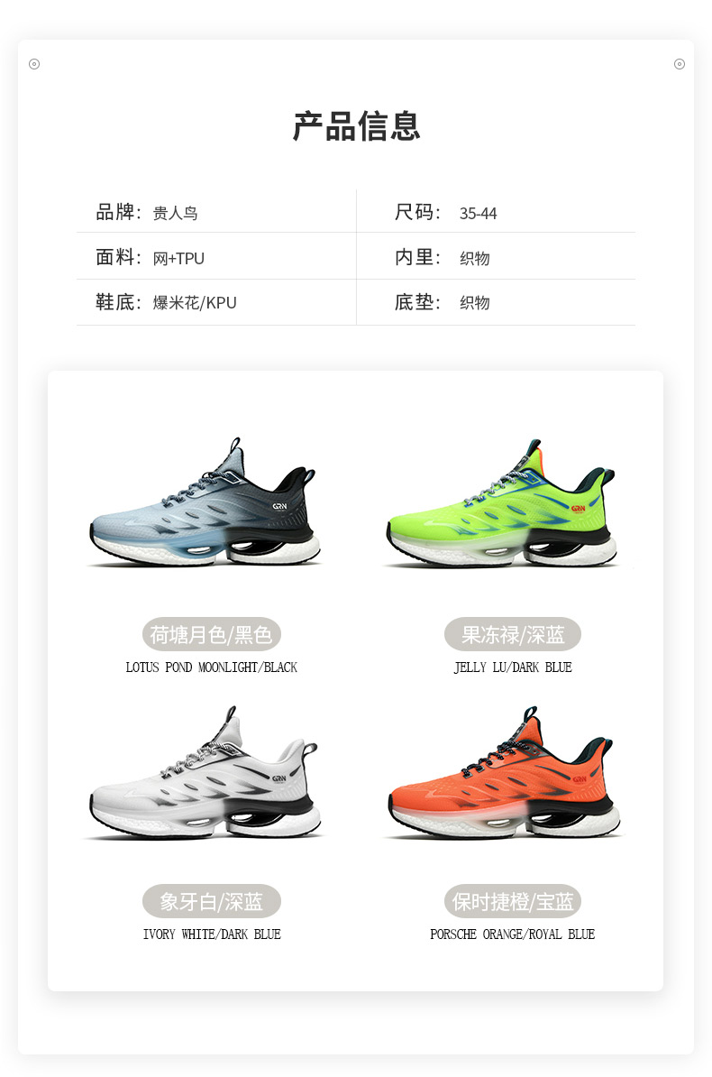 貴人鳥旗艦店夏季透氣網面運動鞋男女爆米花減震跑步鞋情侶休閒鞋