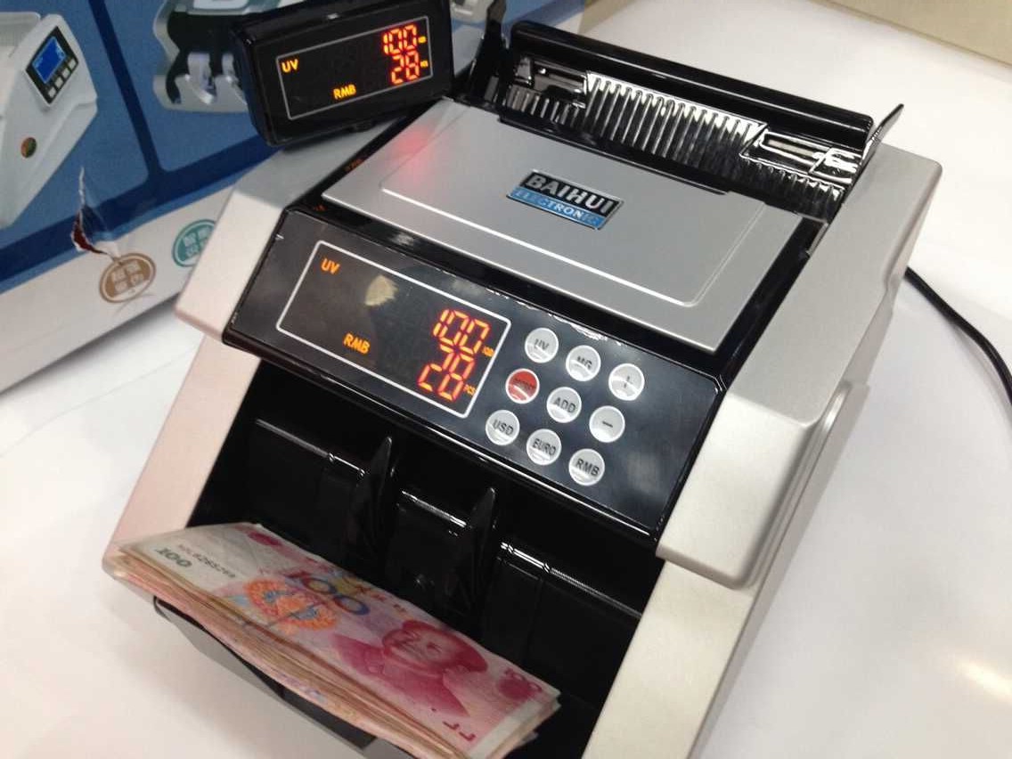 点钞时自动以荧光和磁性检测纸币