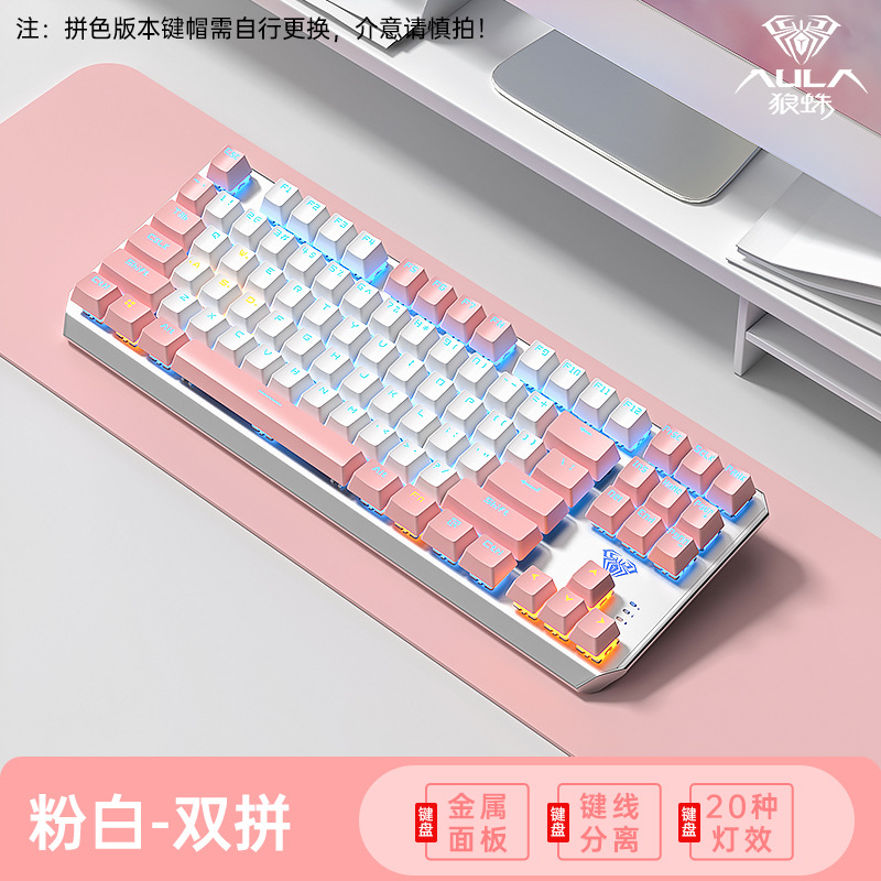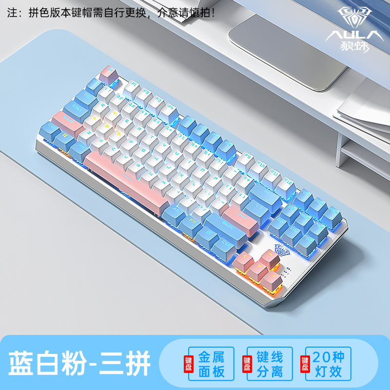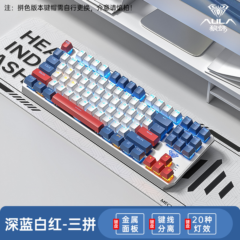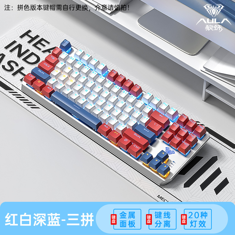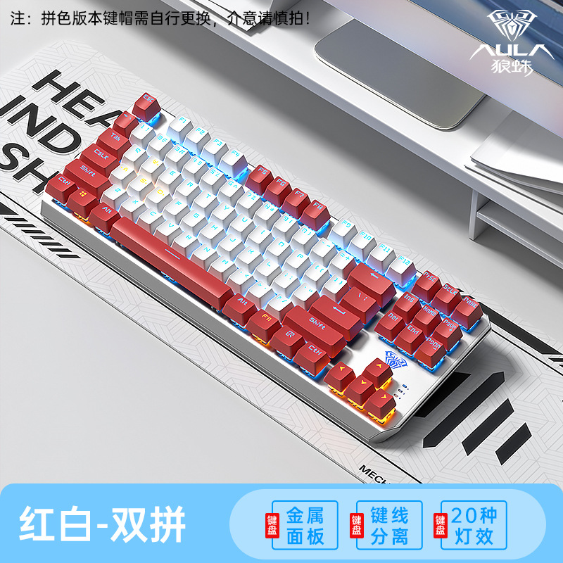 狼蛛F3087机械键盘青轴黑红茶轴有线电竞游戏专用台式笔记本办公