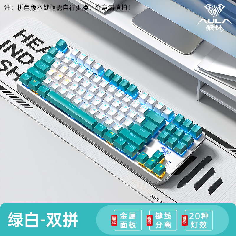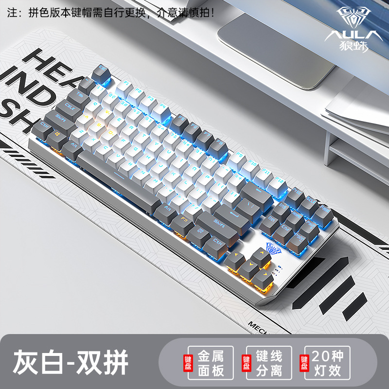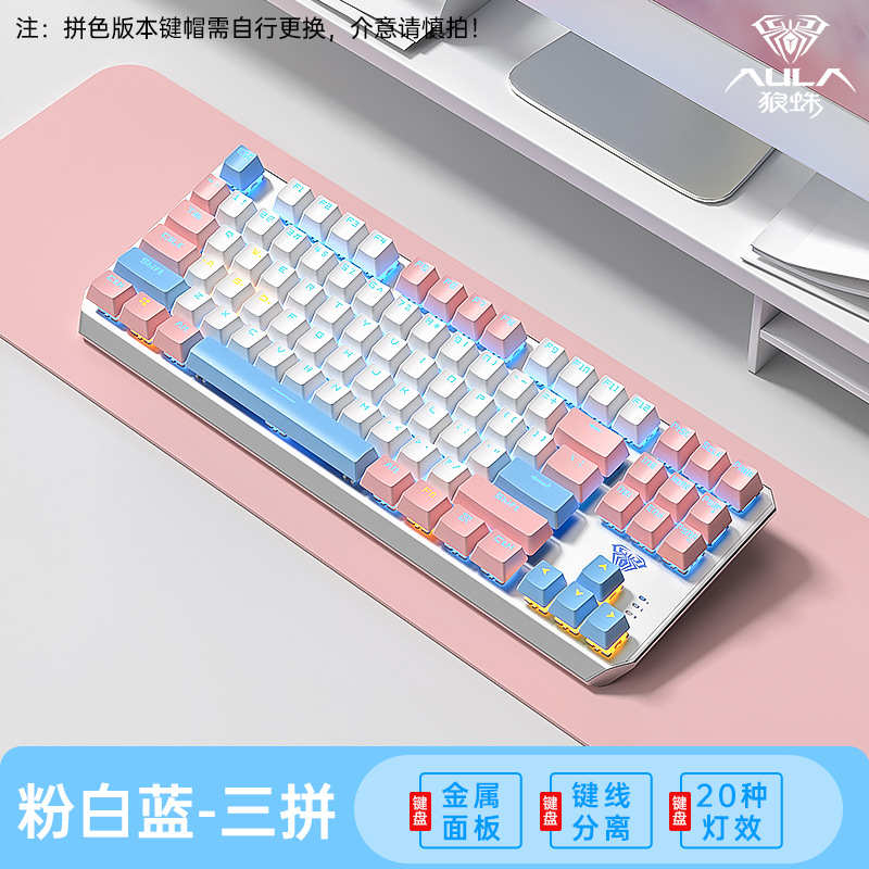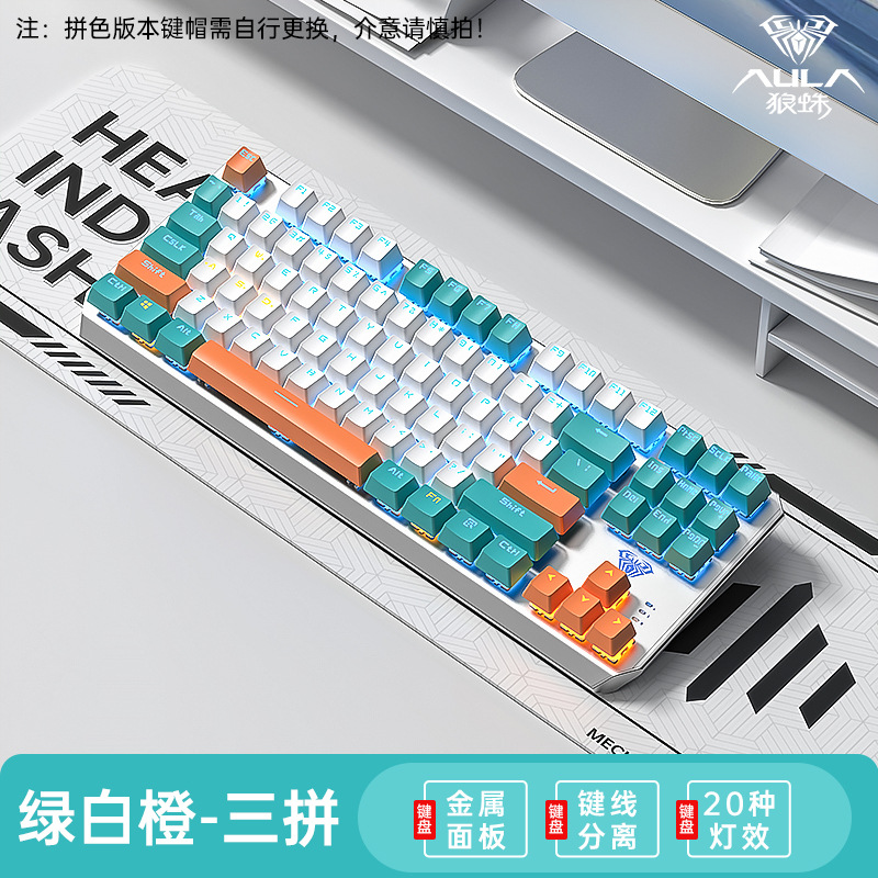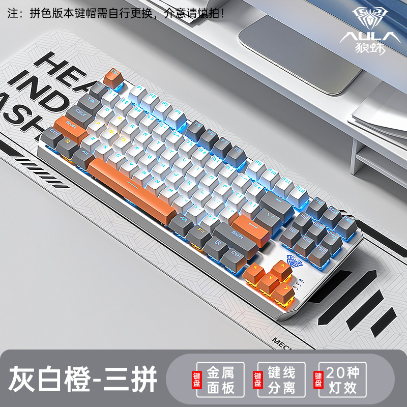 狼蛛F3087机械键盘青轴黑红茶轴有线电竞游戏专用台式笔记本办公