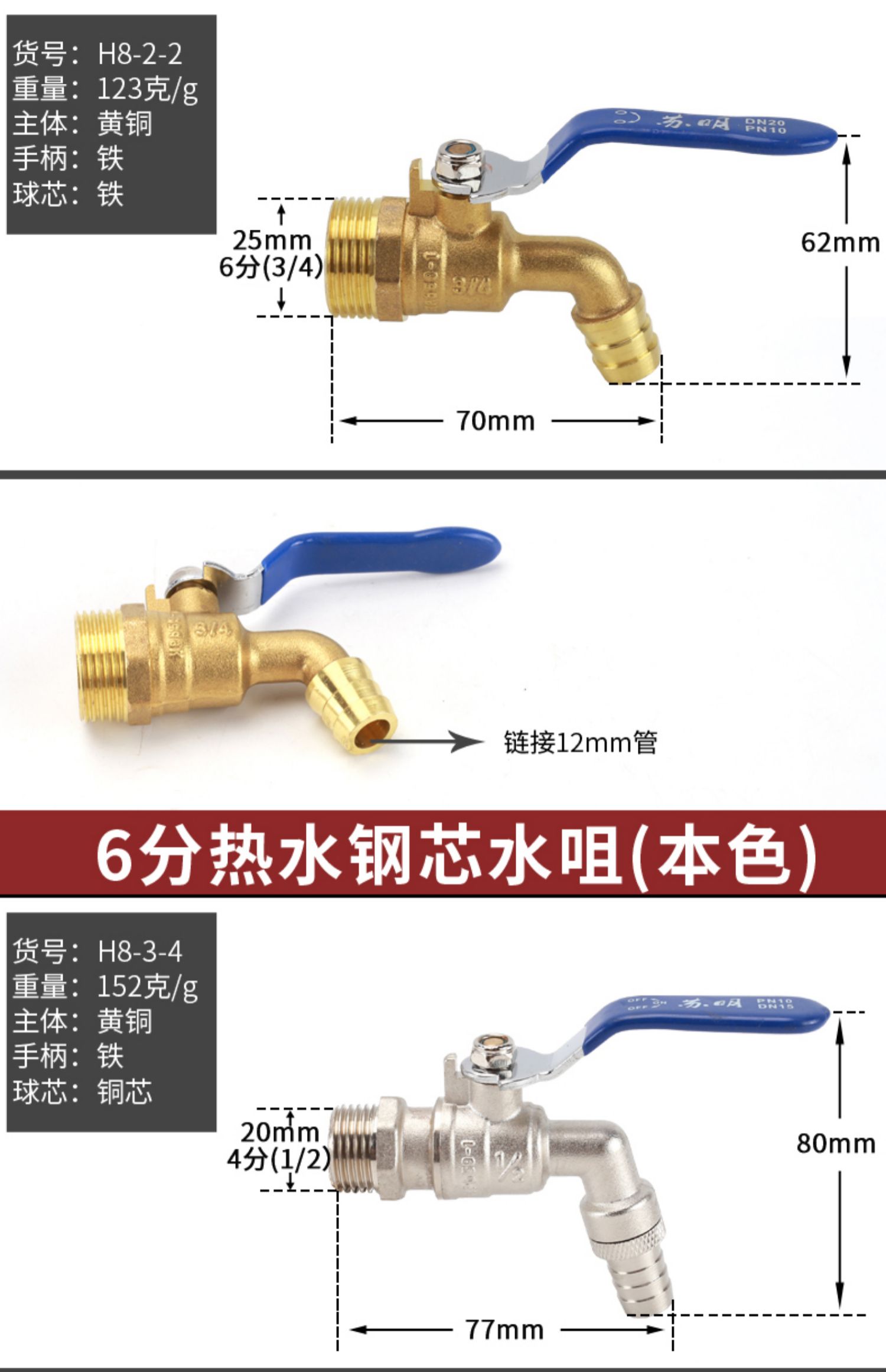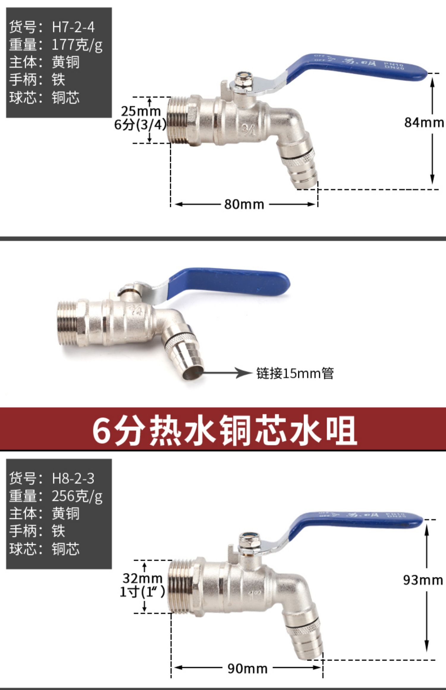 规格 4分热水龙头(本色),6分热水龙头(本色),电镀热水龙头4分,电镀热水龙头6分,电镀热水龙头1寸