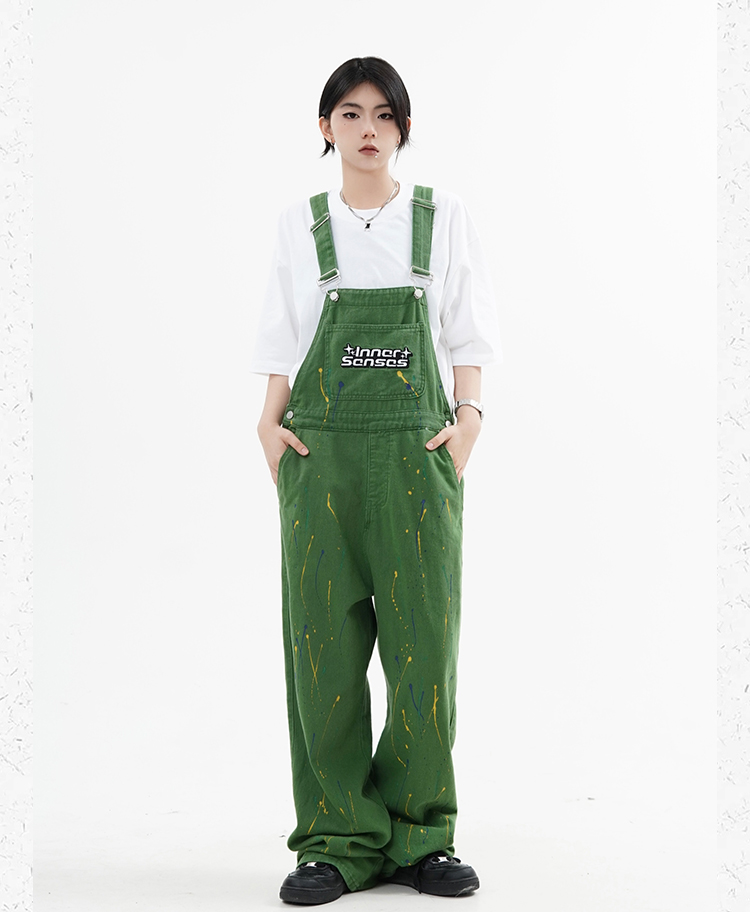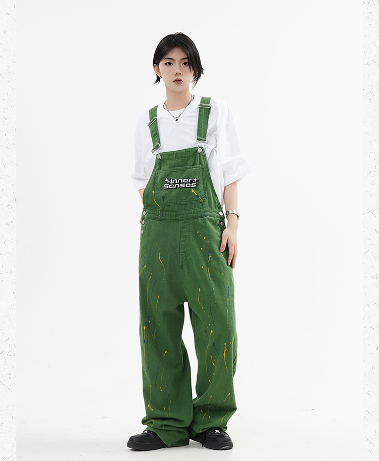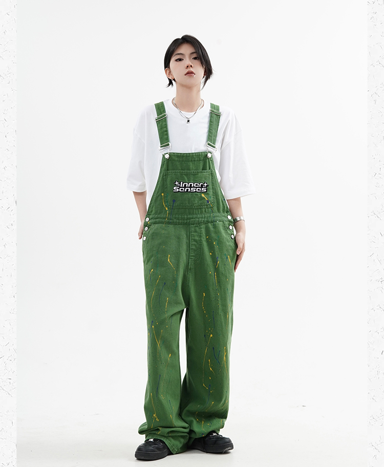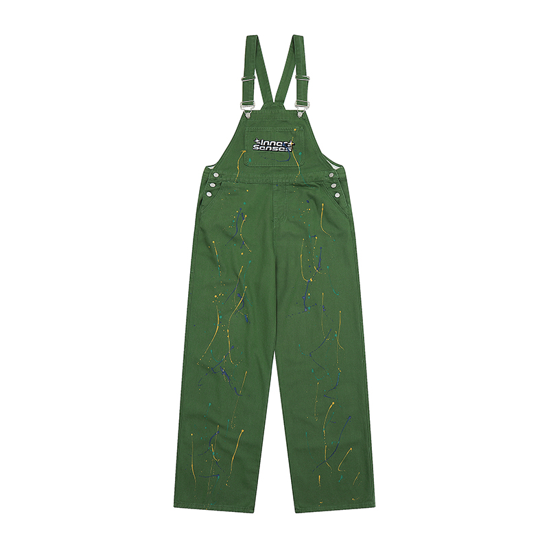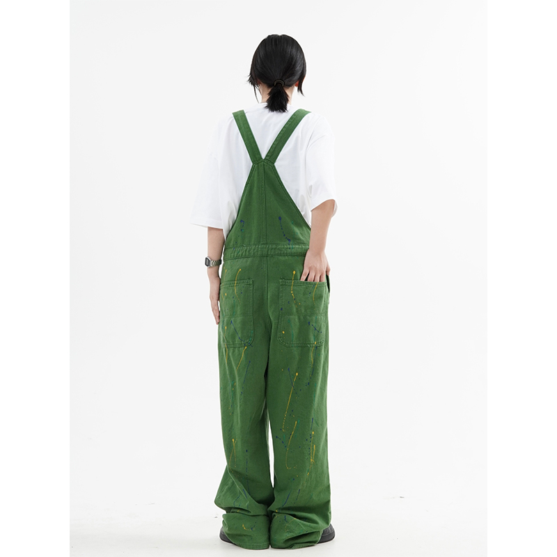 川川也原創牛仔美式復古噴墨工裝抱嬰袋褲寬鬆休閒男女長褲hiphop潮