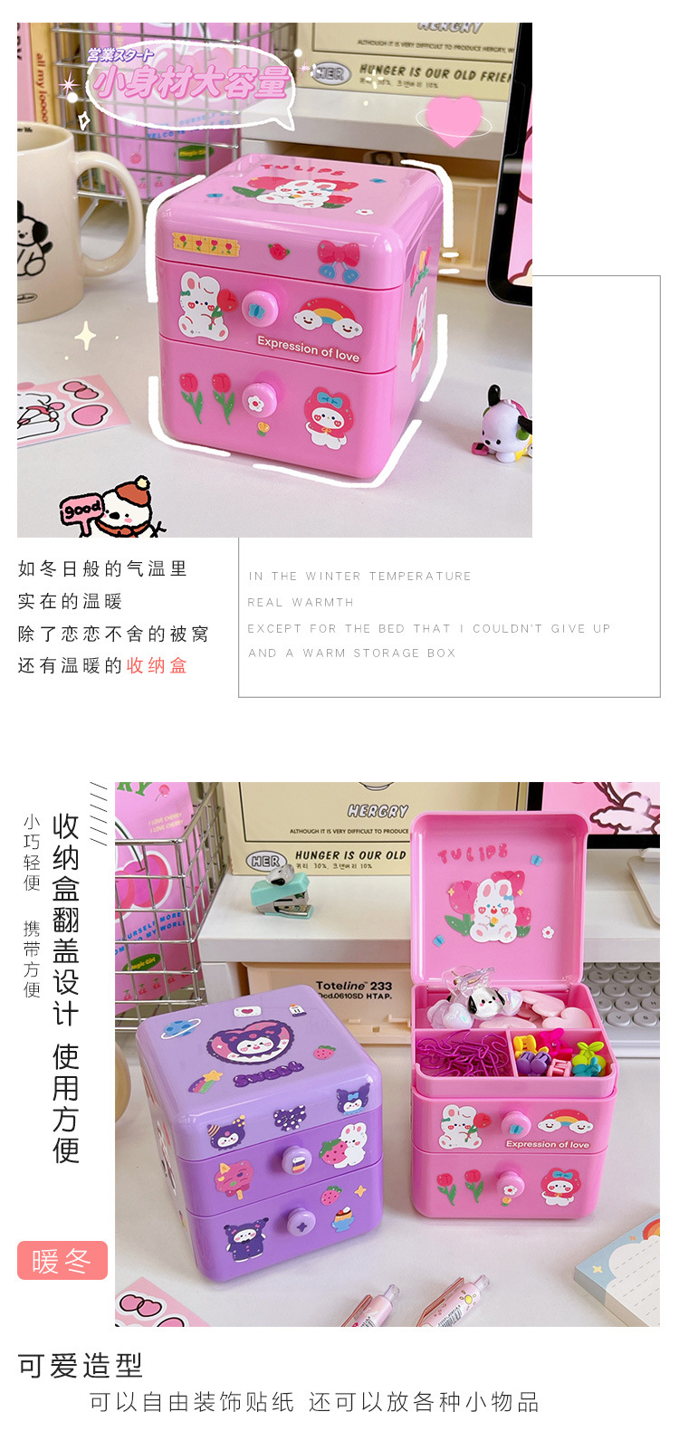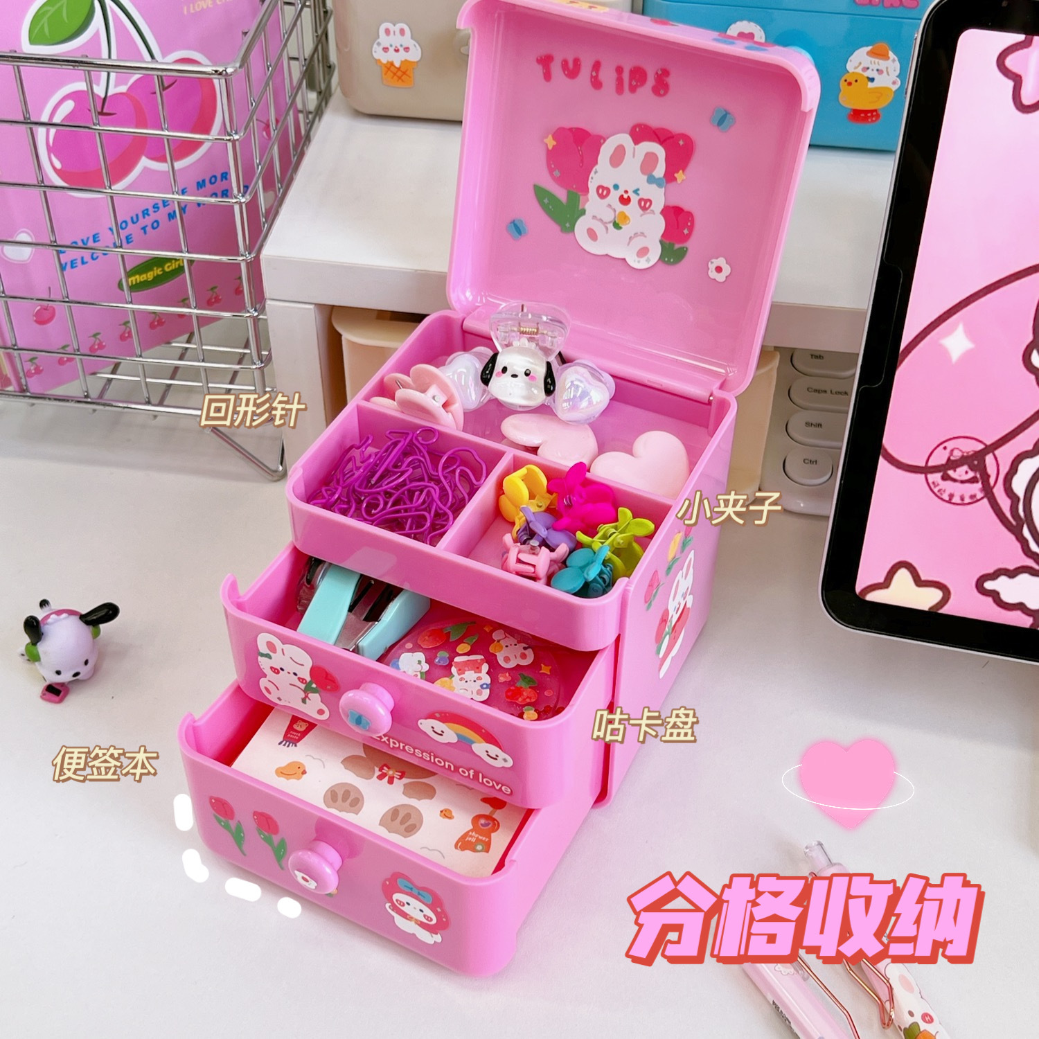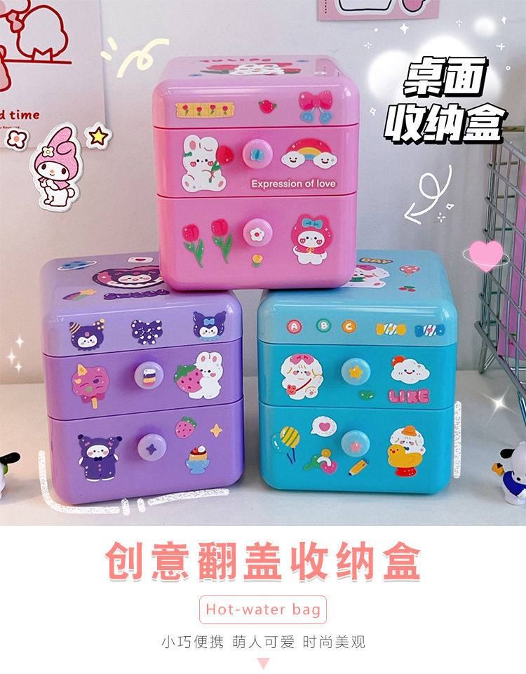 可爱创意学生桌面文具收纳盒ins时尚多功能家用翻盖带抽屉储物盒