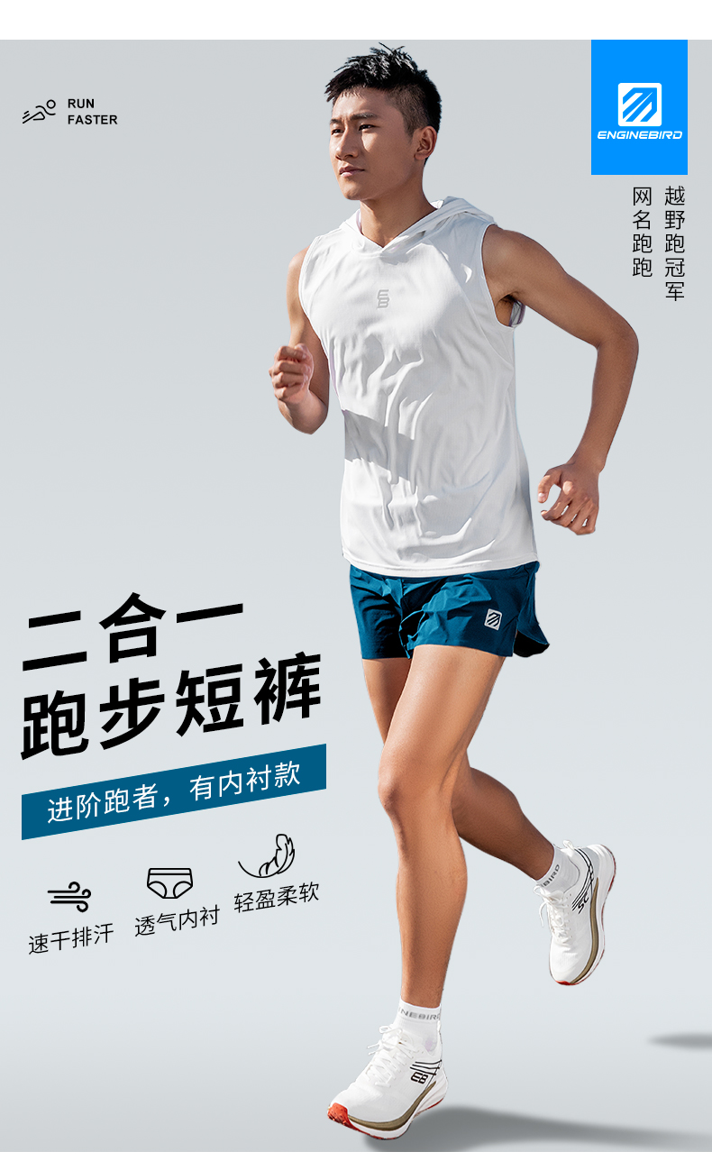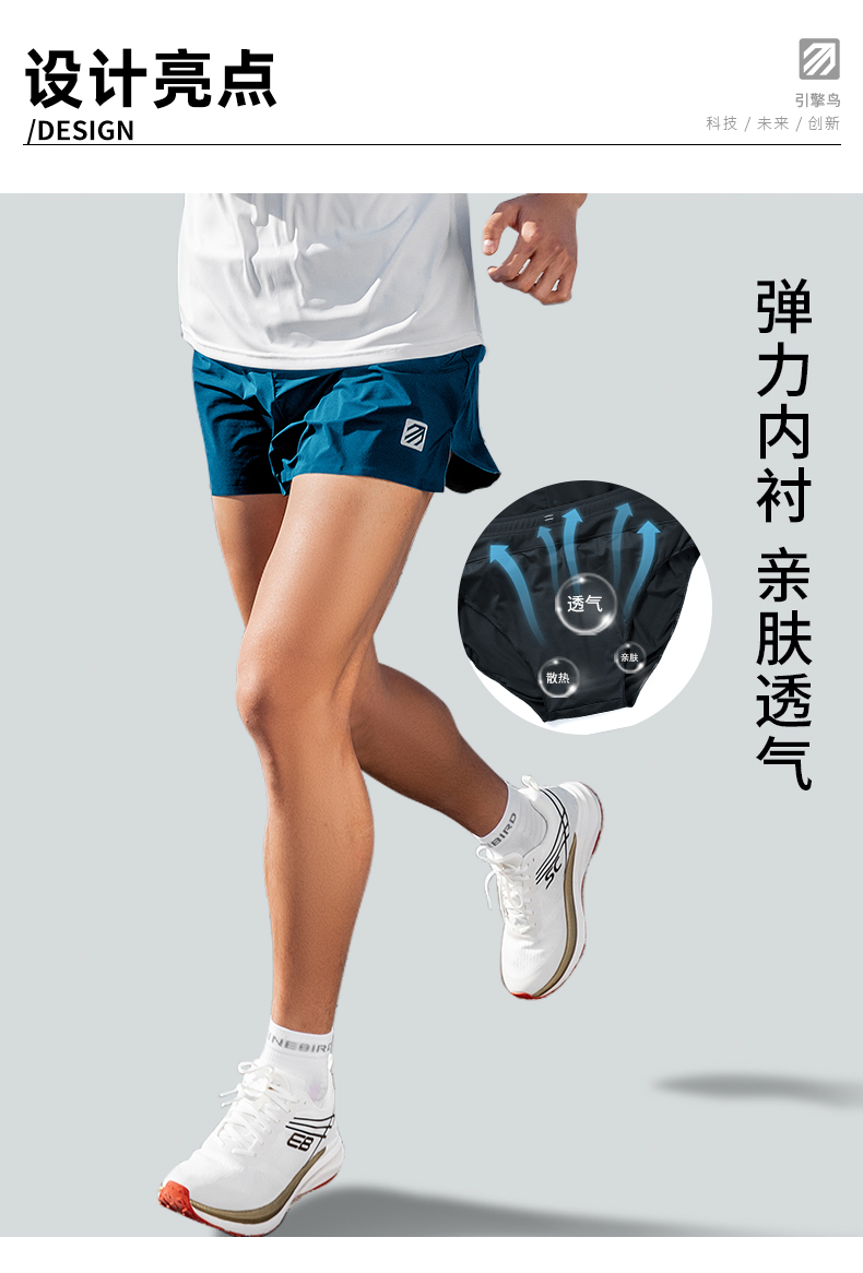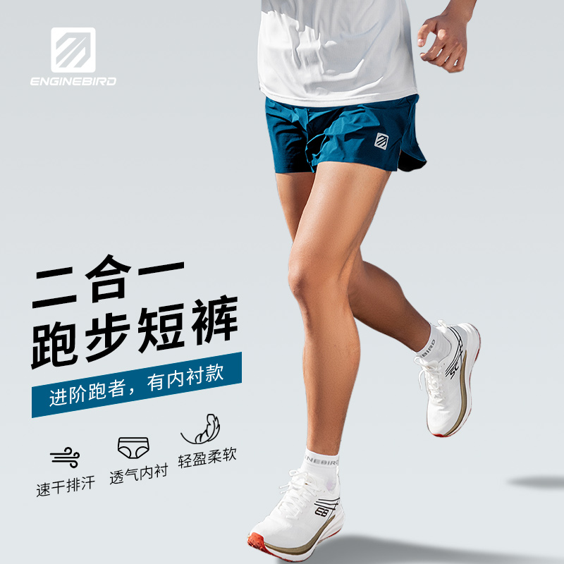 引擎鳥夏季運動競速二合一短褲男超輕馬拉鬆跑步訓練速乾褲