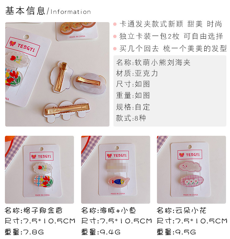韩版软萌小熊发夹套装女夏季可爱少女心刘海碎发夹简约气质侧边夹