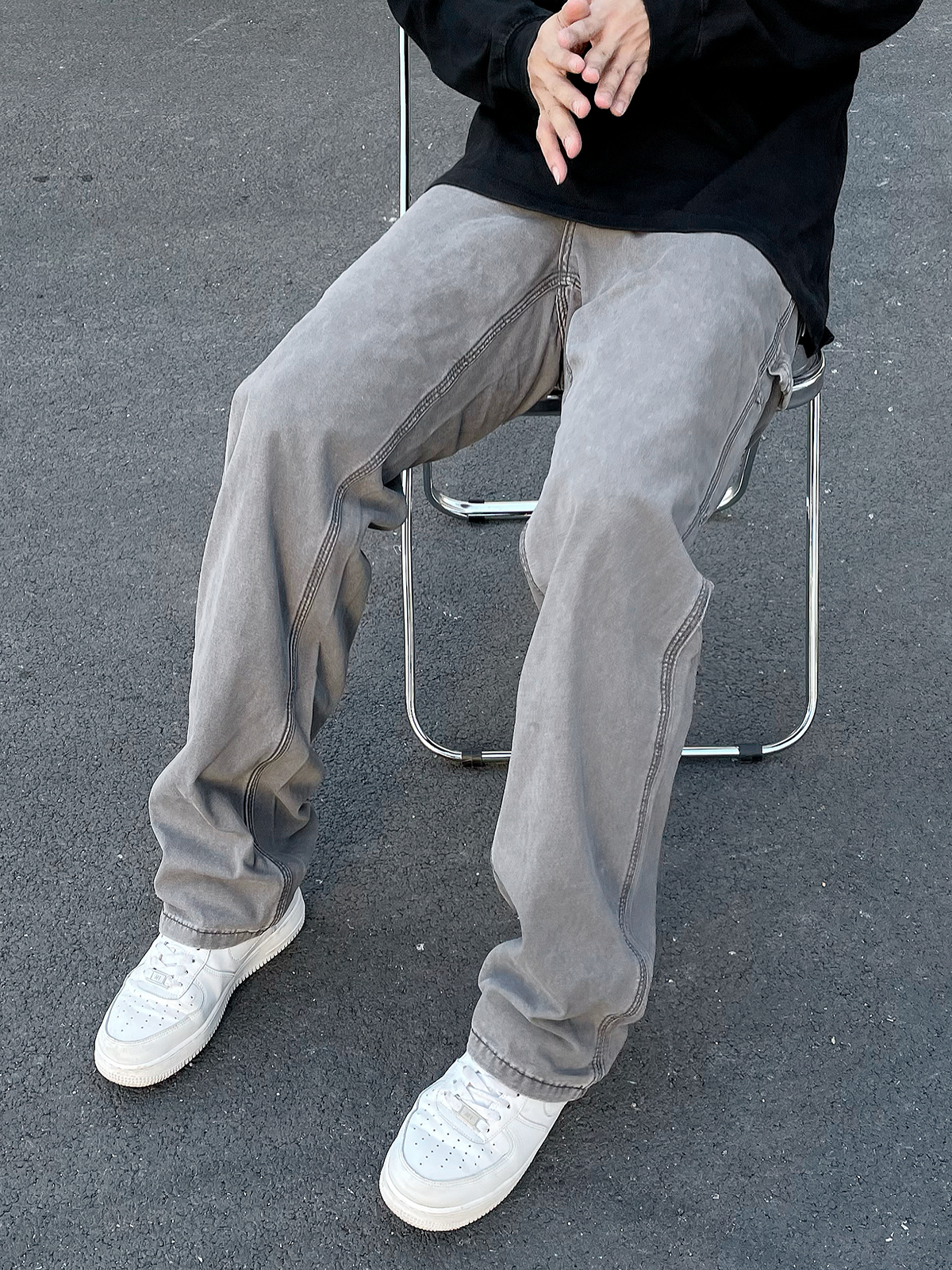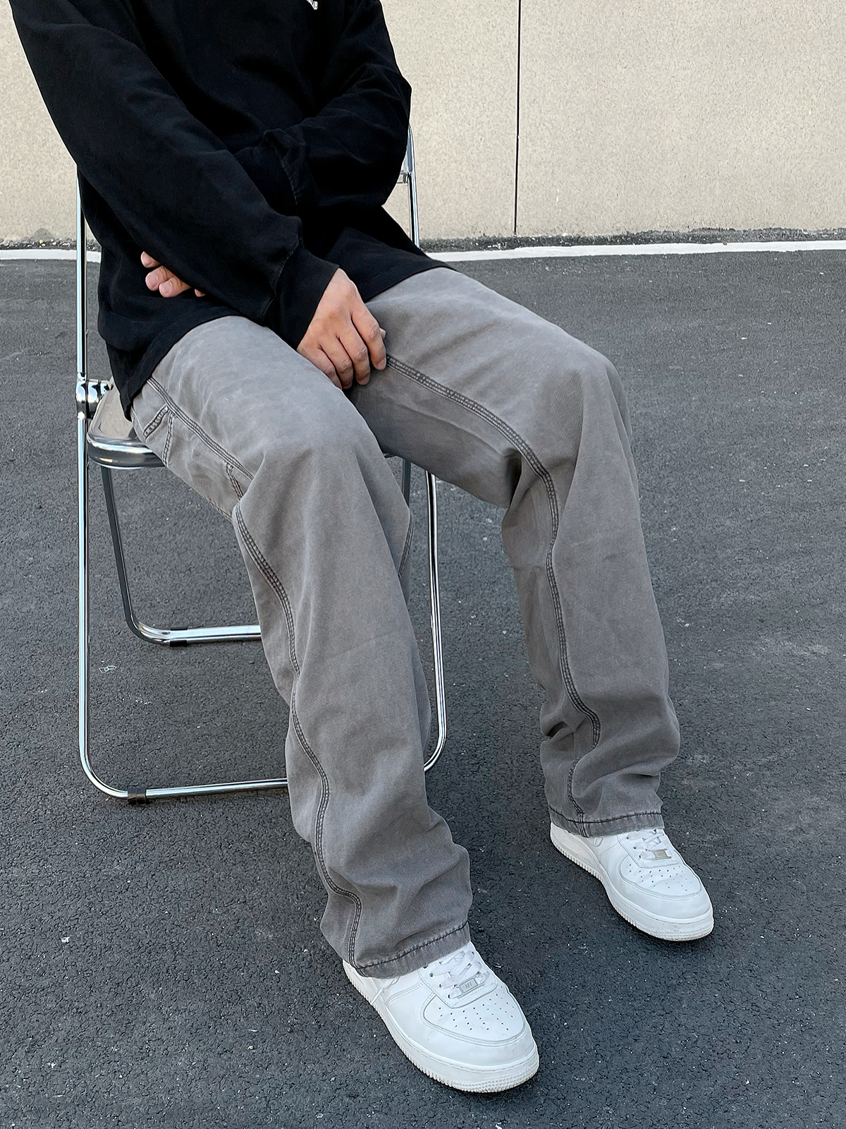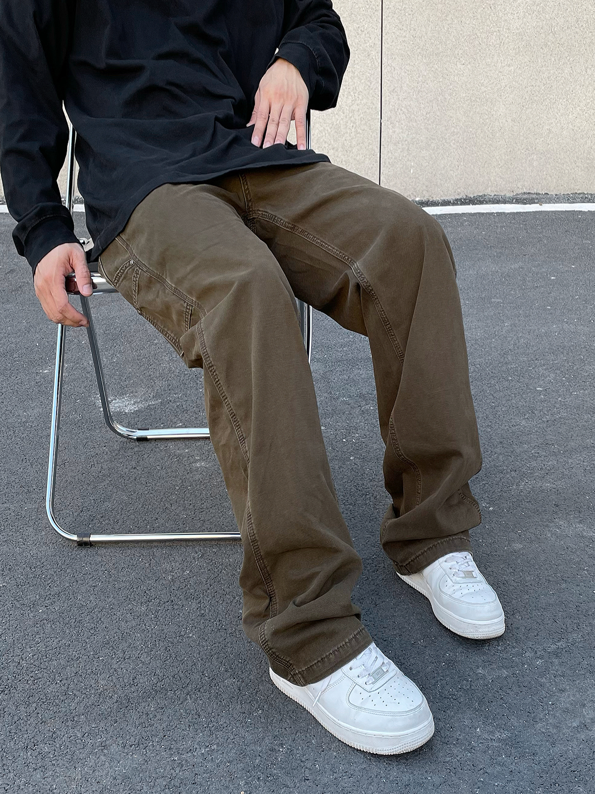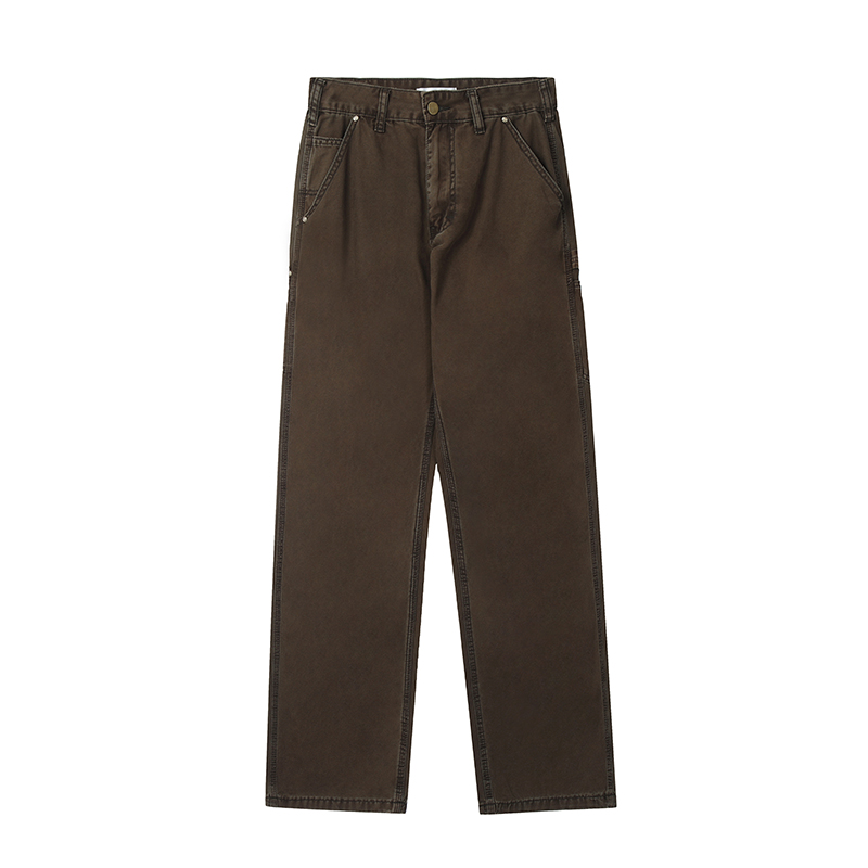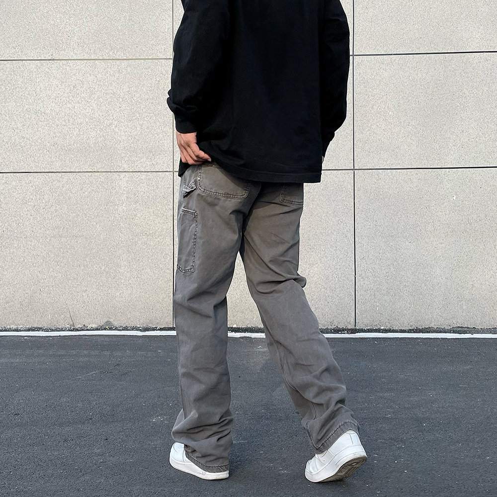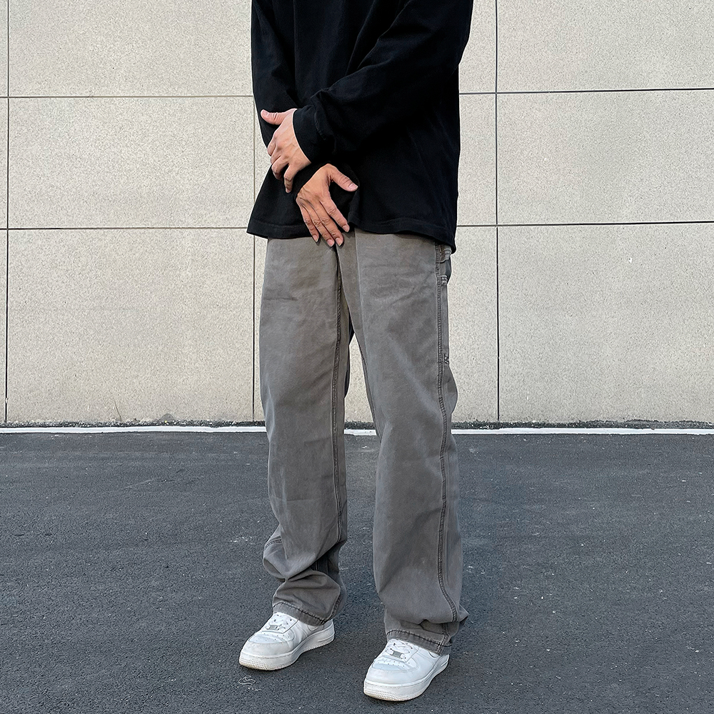 美式復古百搭伐木工裝褲潮牌男女寬鬆直筒做舊休閒水洗牛仔褲ins
