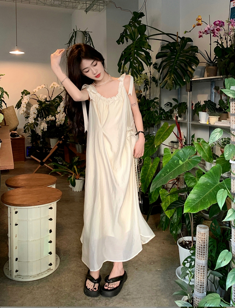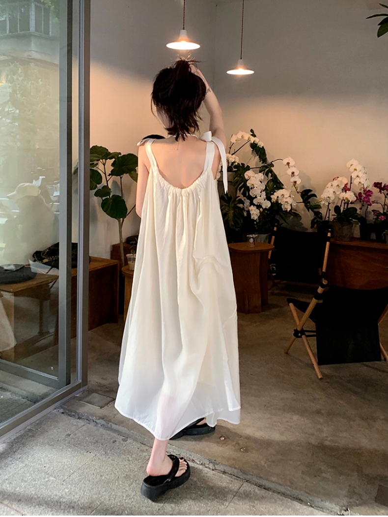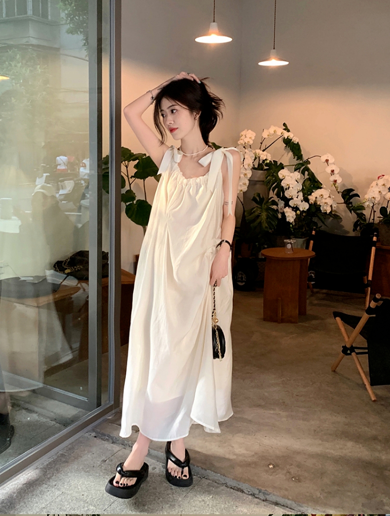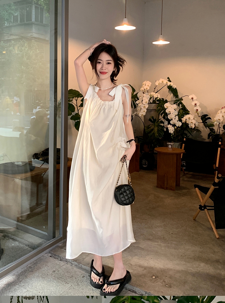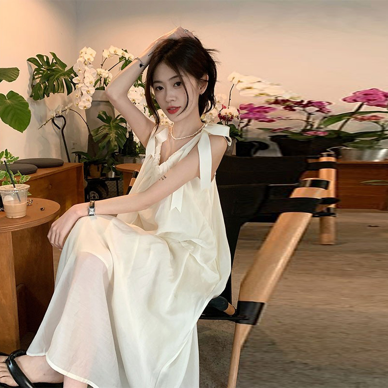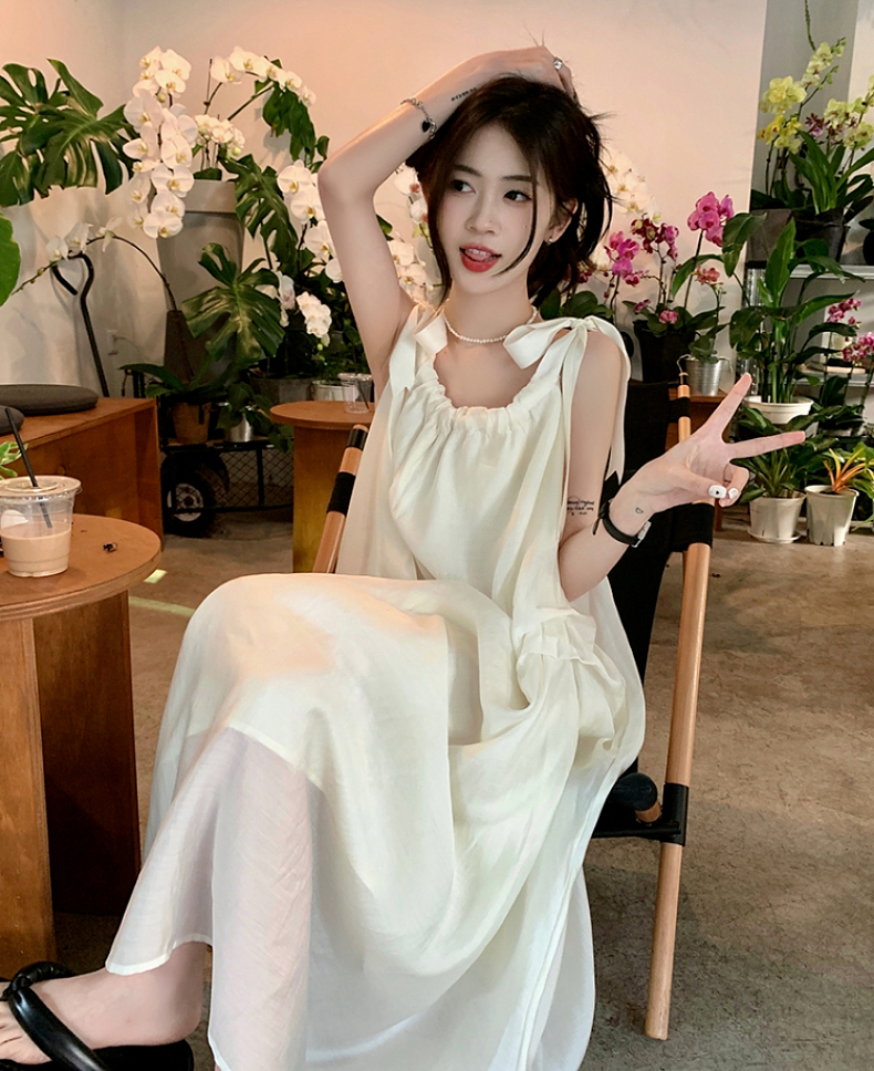 海邊度假白色吊帶初戀洋裝2023新款法式無袖長裙沙灘裙子女夏季
