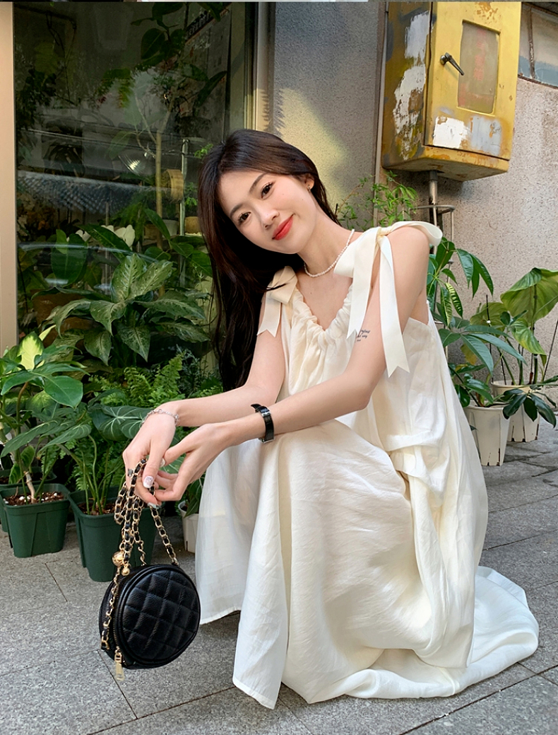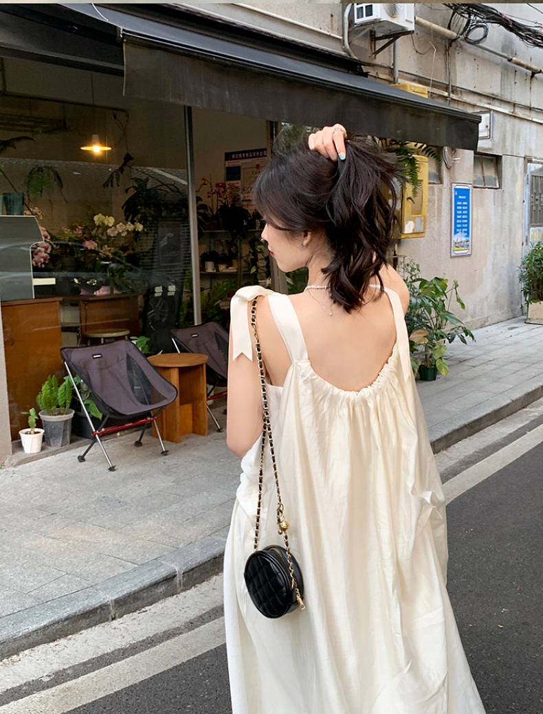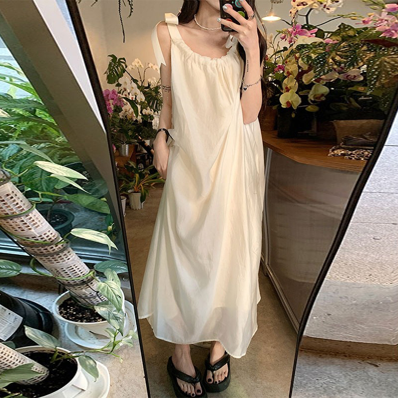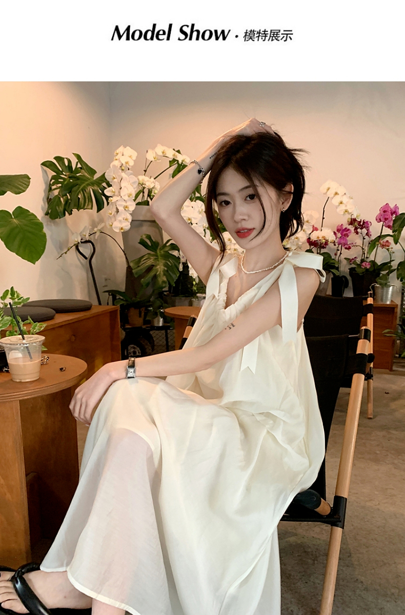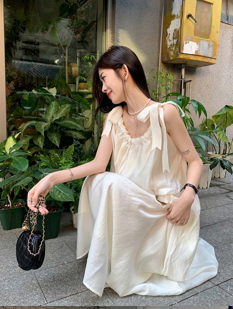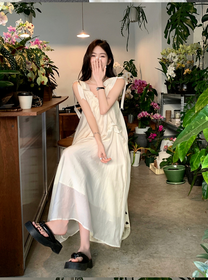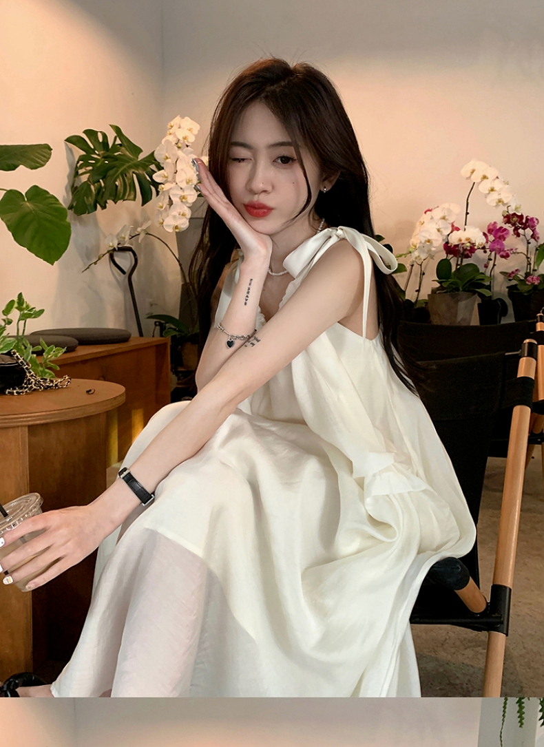 海邊度假白色吊帶初戀洋裝2023新款法式無袖長裙沙灘裙子女夏季