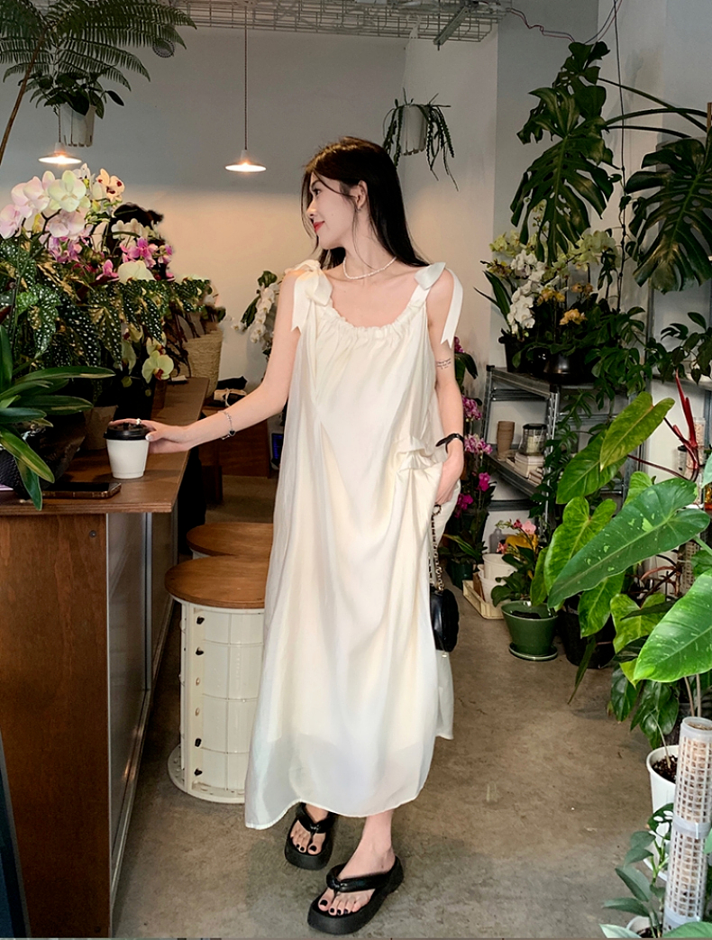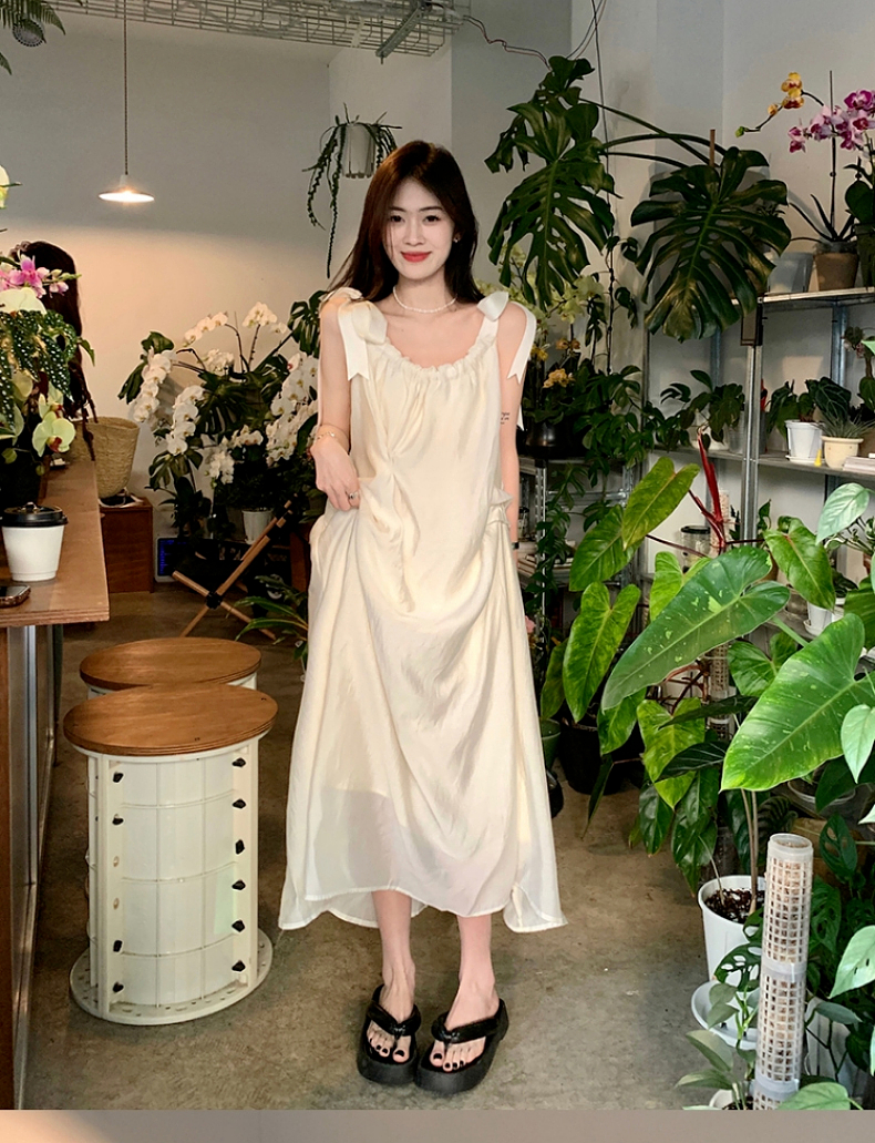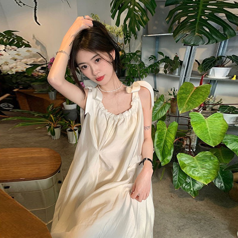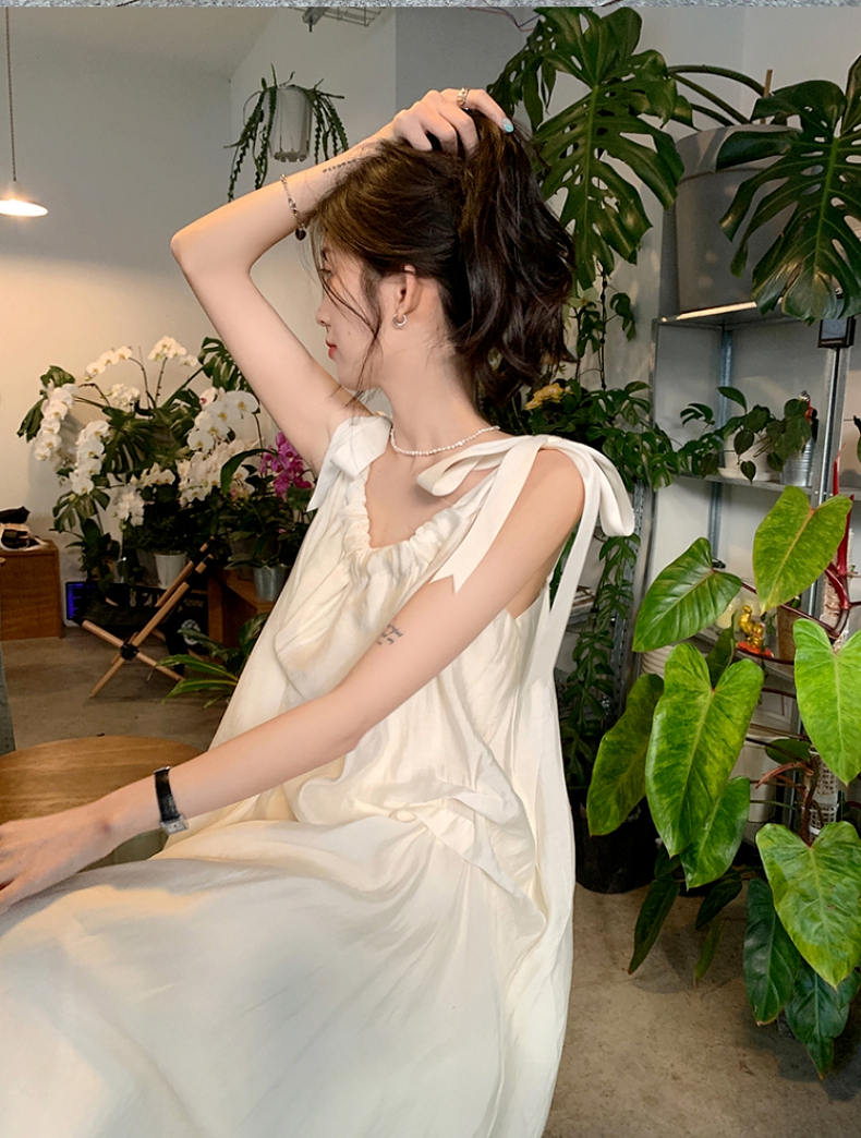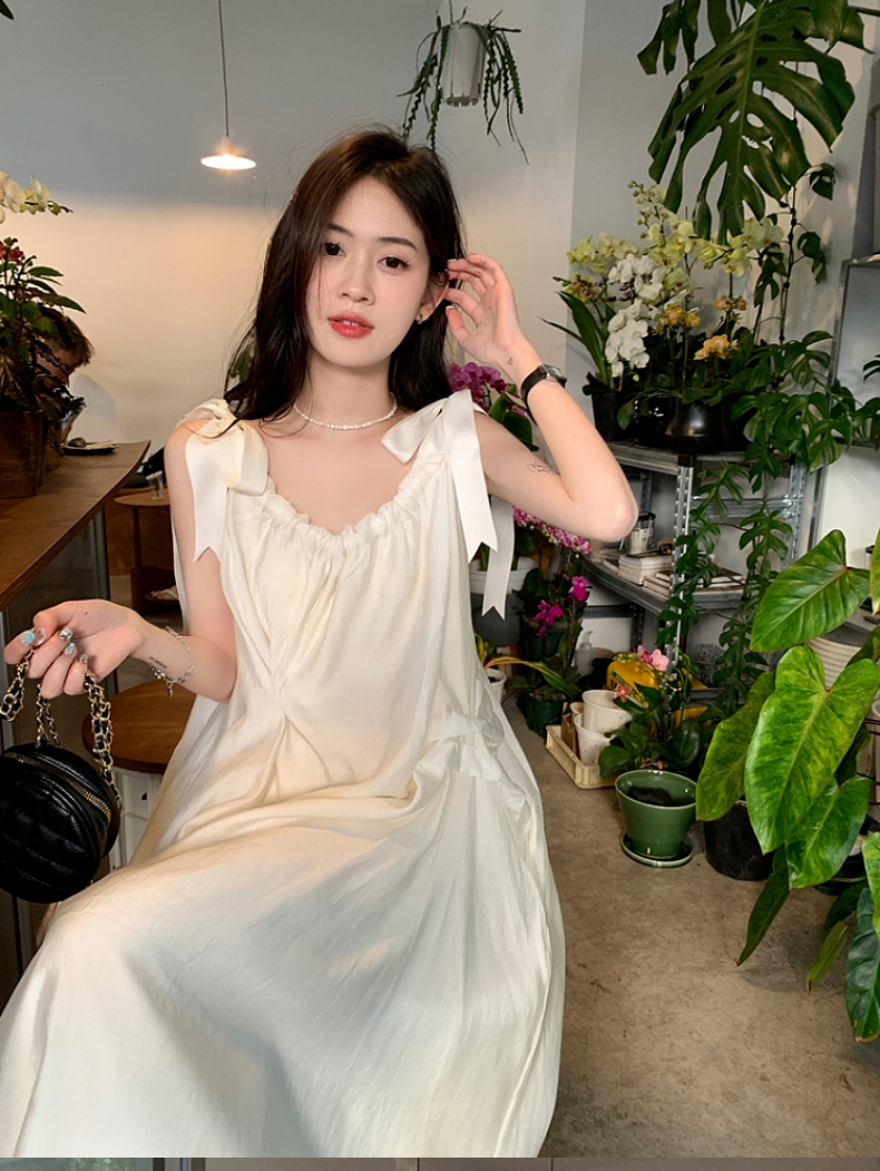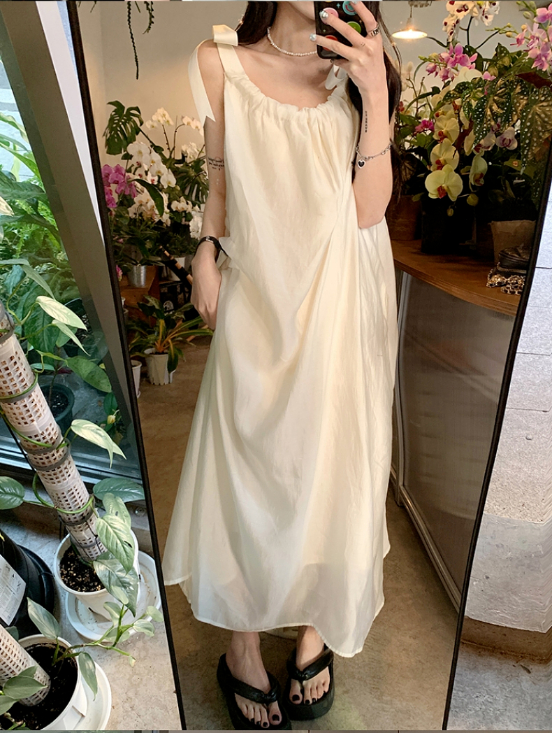 海邊度假白色吊帶初戀洋裝2023新款法式無袖長裙沙灘裙子女夏季