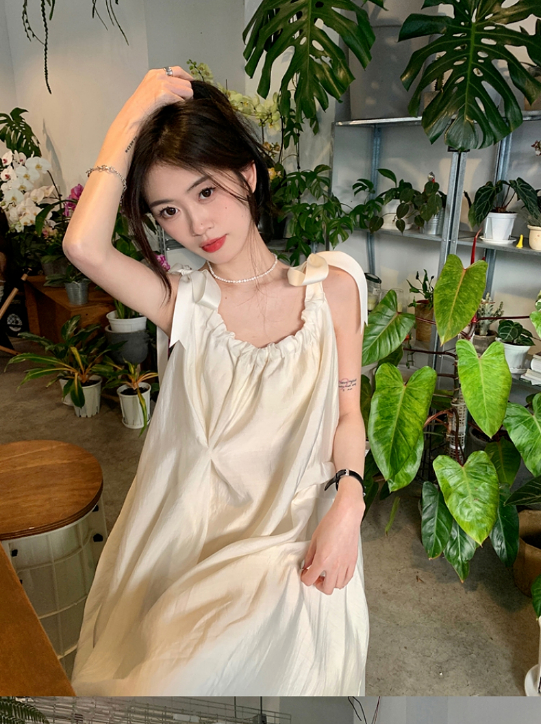 顏色分類 米杏色吊帶裙【海邊度假拖尾洋裝2023女新款/白色/吊帶/裙子/夏季/沙灘裙/長裙/春秋款/碎花/ polo/ 茶歇法式/女裝/抱嬰袋裙】秋季洋裝