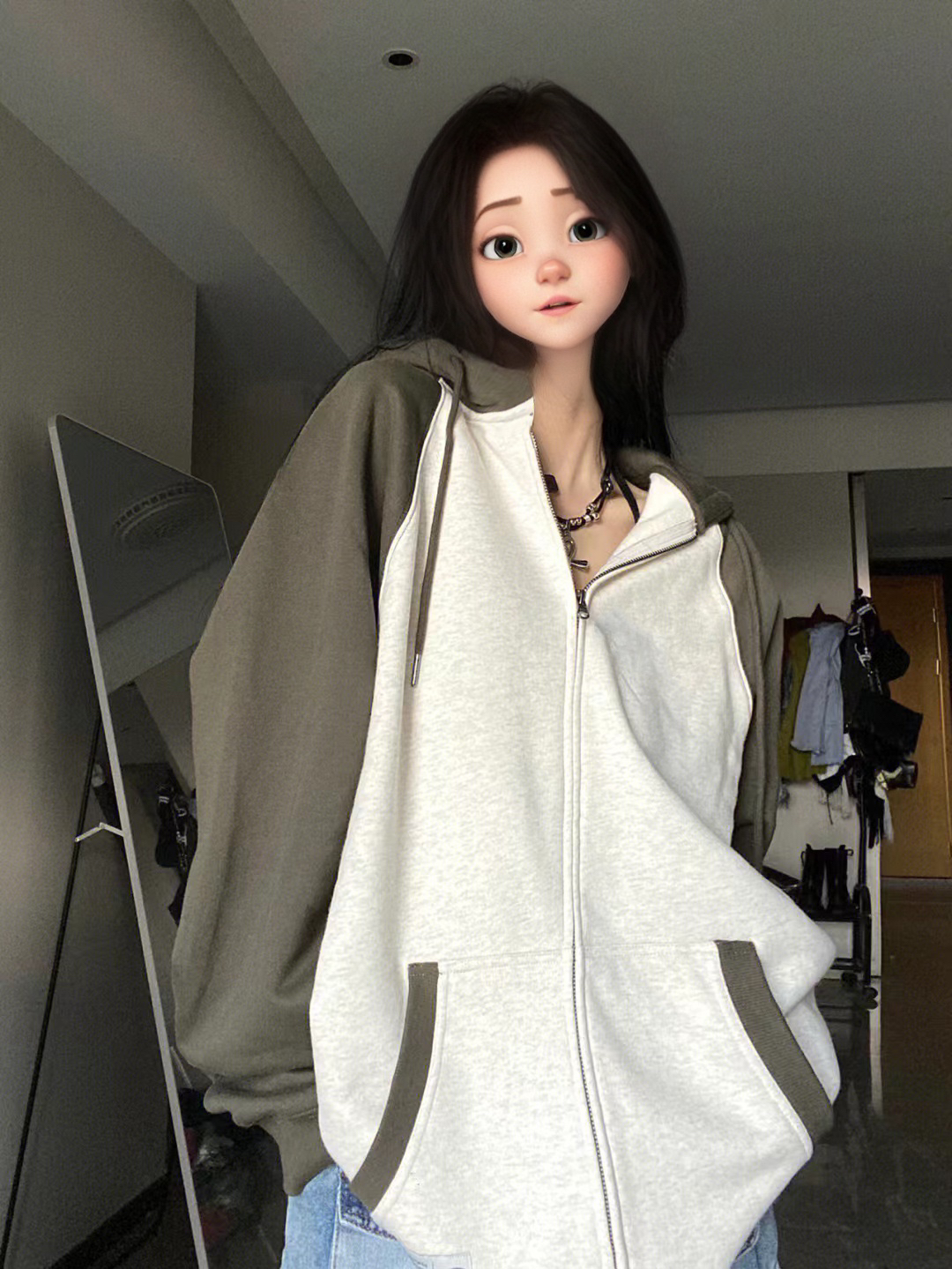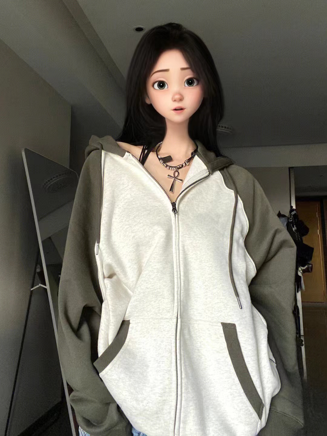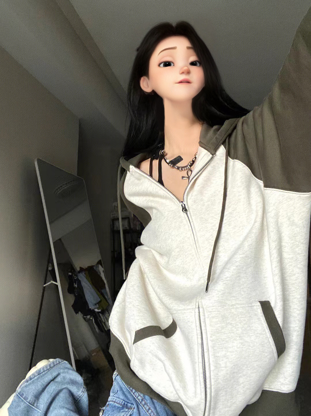 美式工裝撞色棒球服拉鍊外套女夾克加絨冬設計感連帽春秋衛褲厚棉T