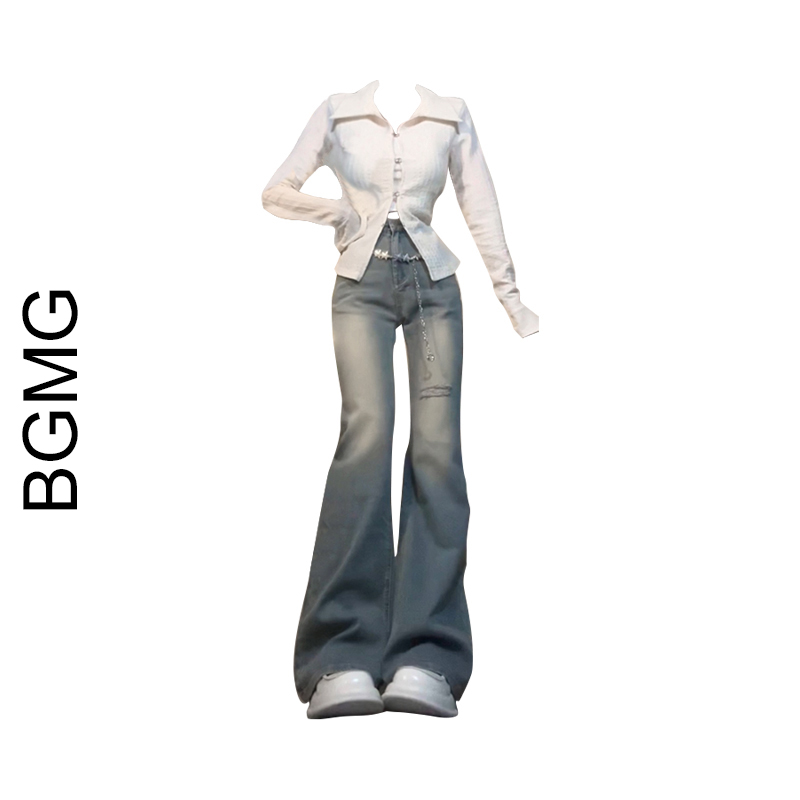 2023新款polo領翻領防曬開衫女春夏顯瘦設計感微喇叭袖長袖上衣
