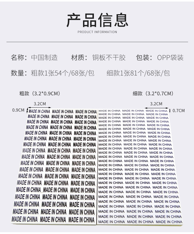 产品数量:粗款1张54个/68张/包                          细款1张81个/68张/包