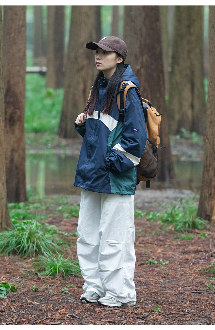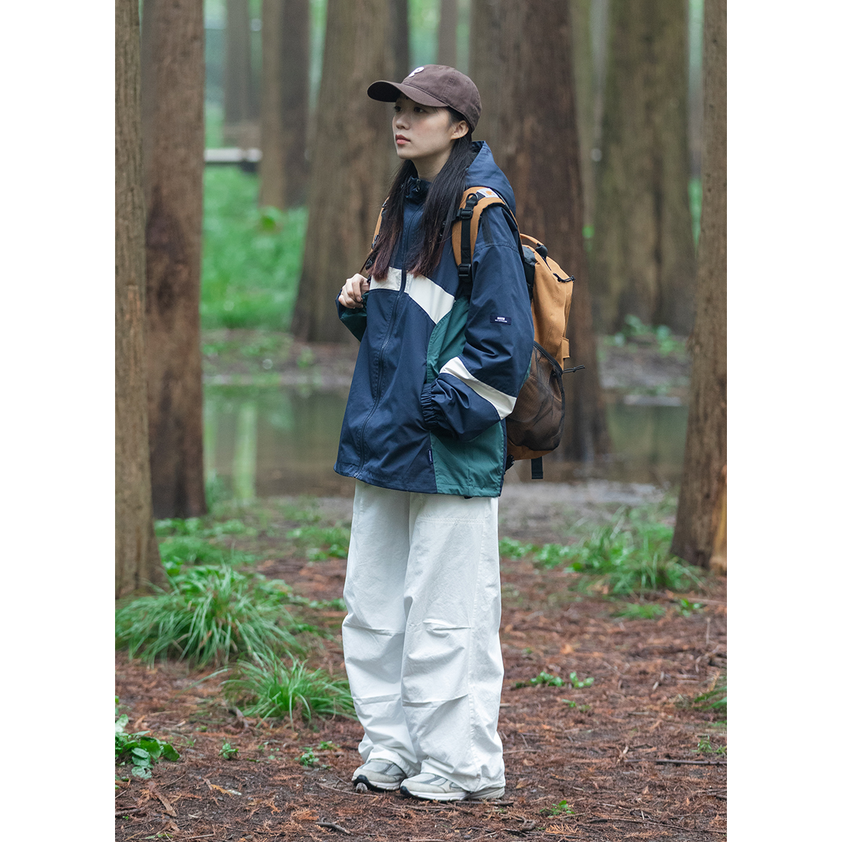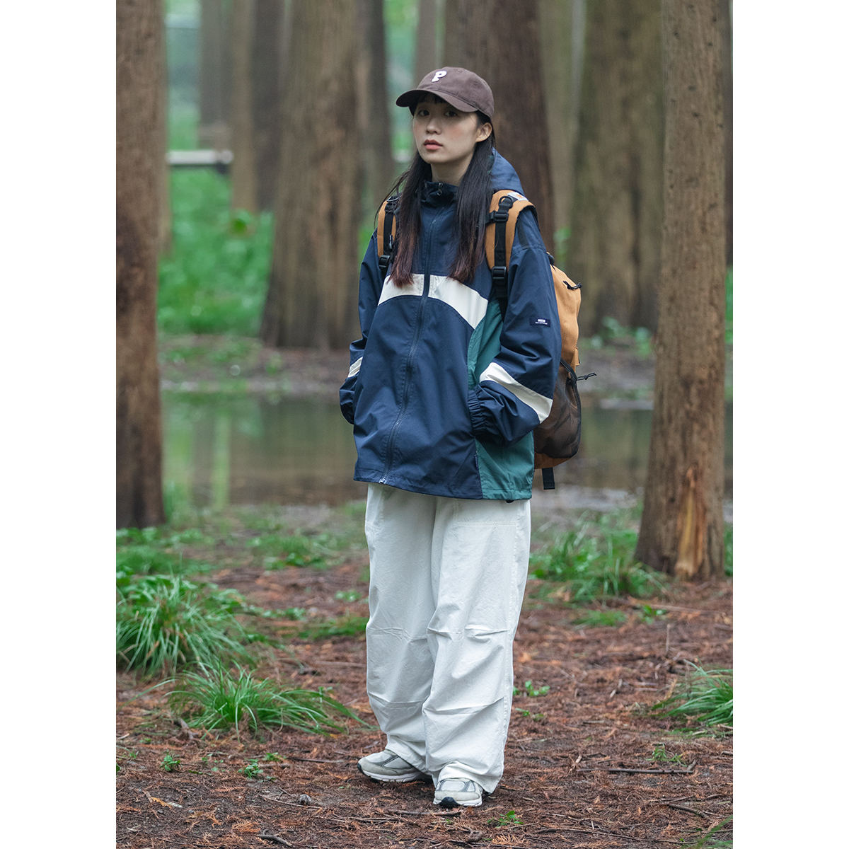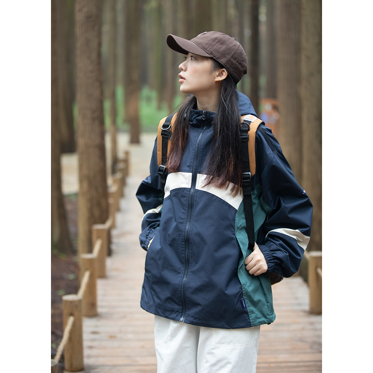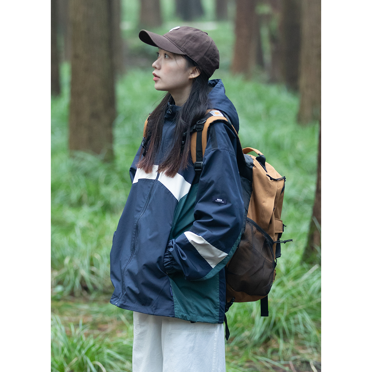Focos日系復古工裝拼接連帽寬鬆夾克外套衝鋒衣男女2023年春新款