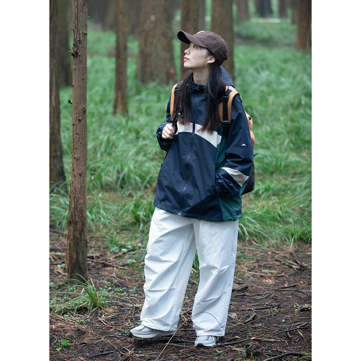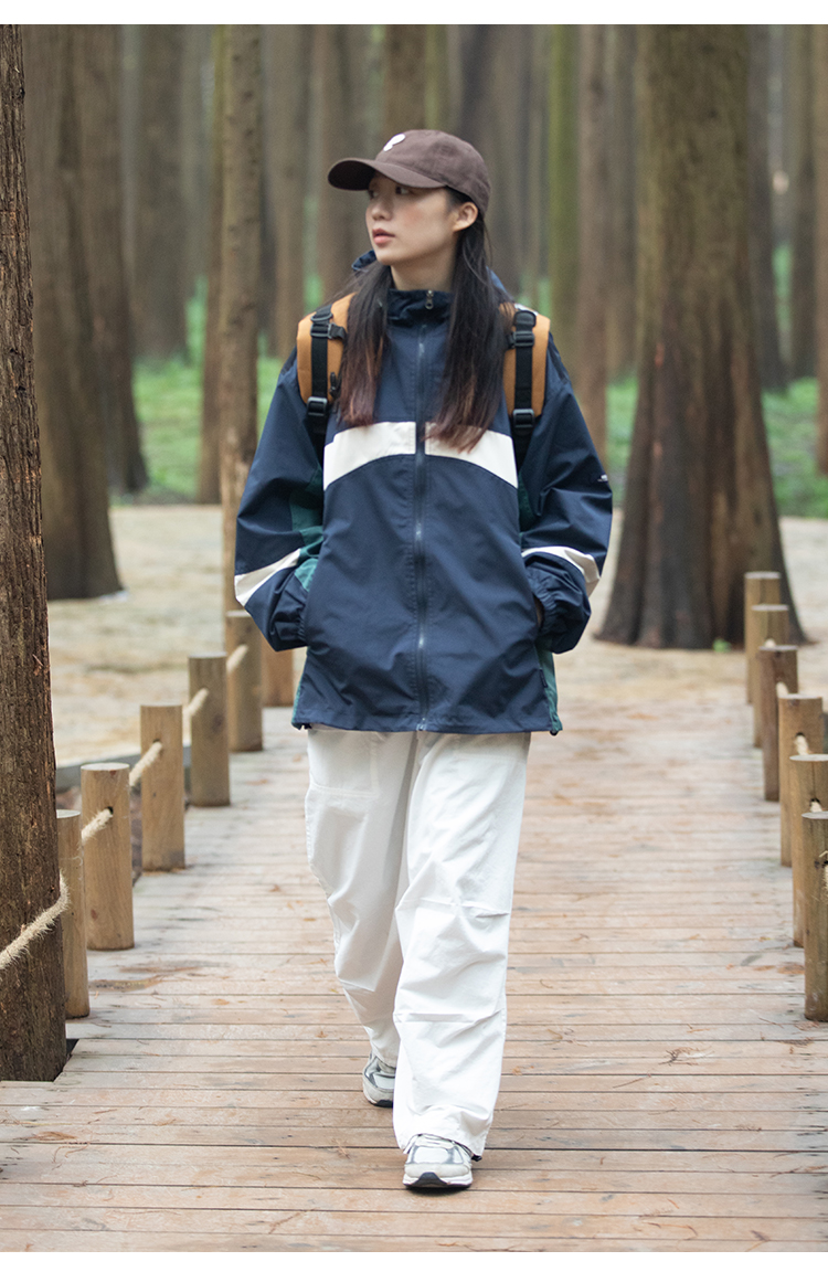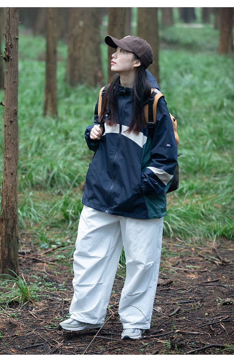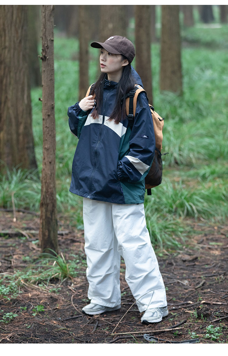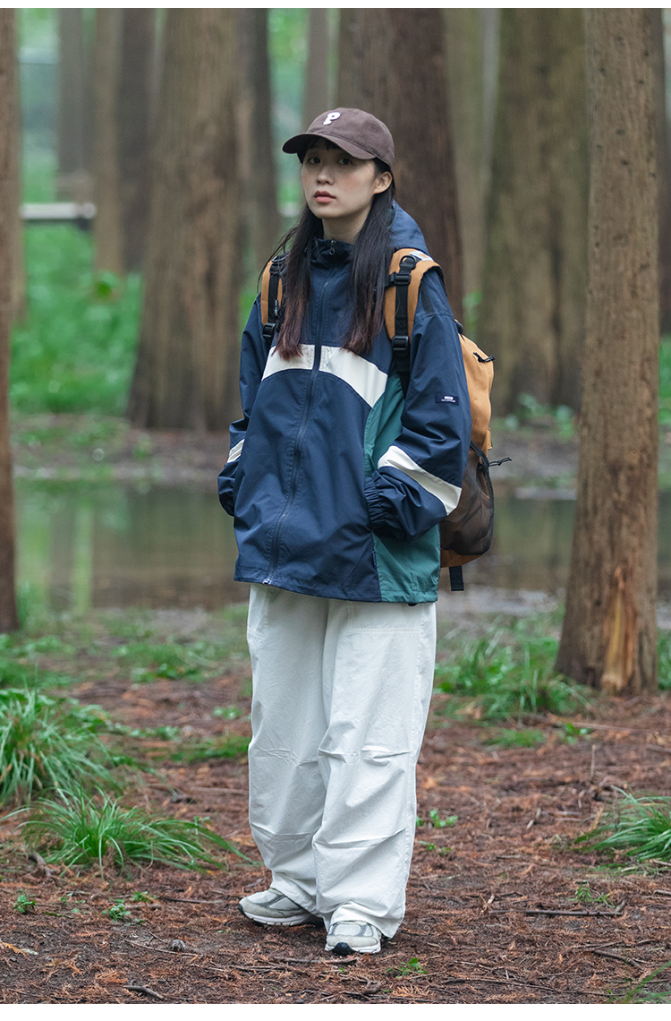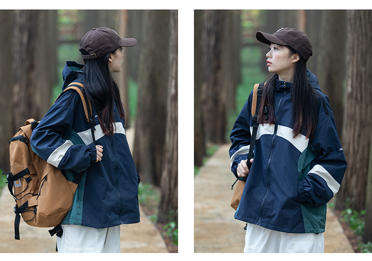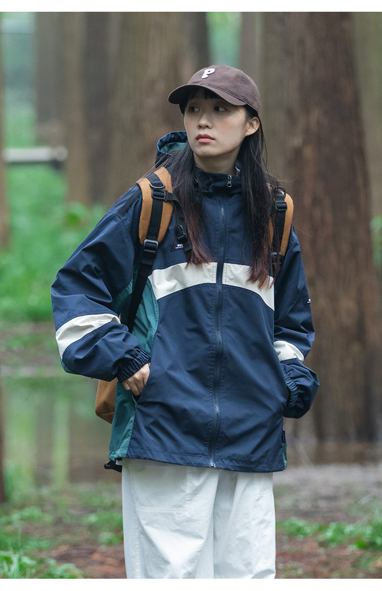 Focos日系復古工裝拼接連帽寬鬆夾克外套衝鋒衣男女2023年春新款