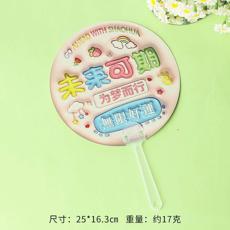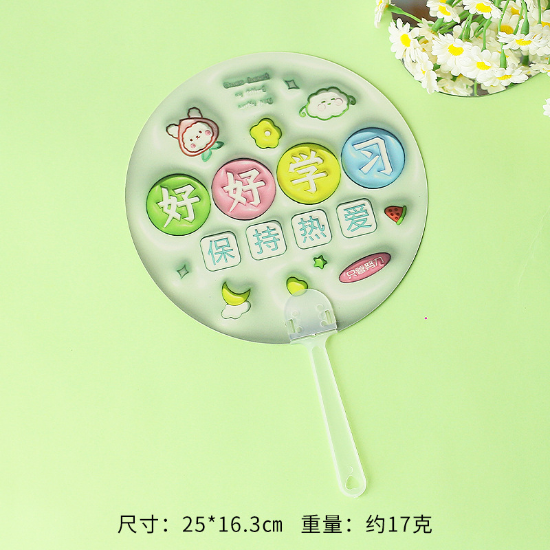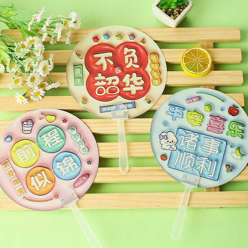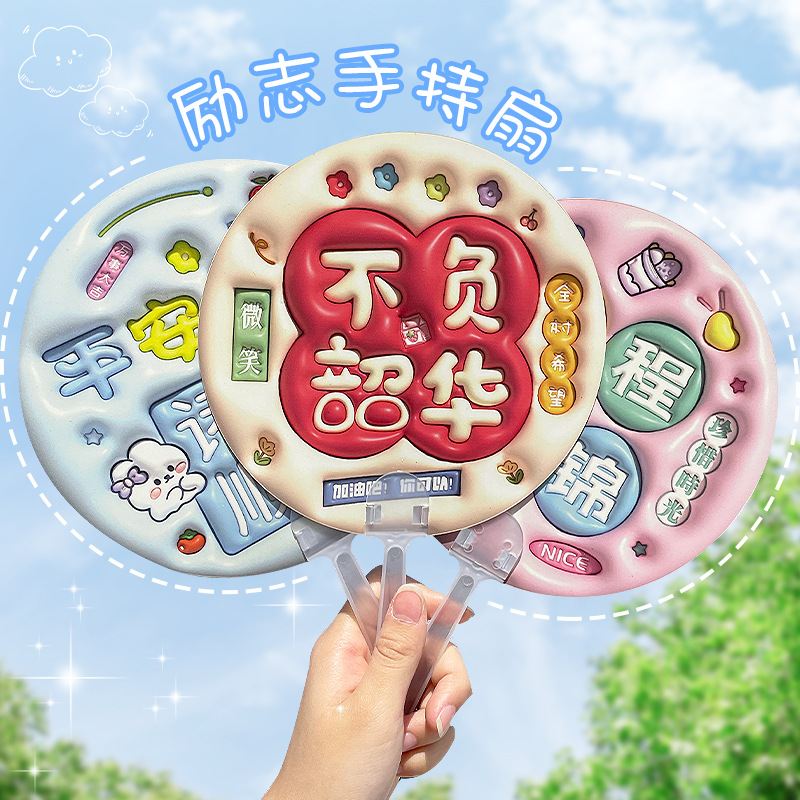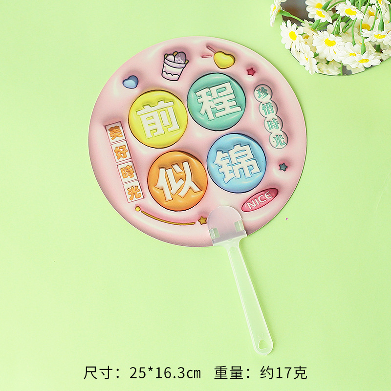 卡通膨胀立体手摇扇 励志文字手持小圆扇学生迷你便携小扇子礼物