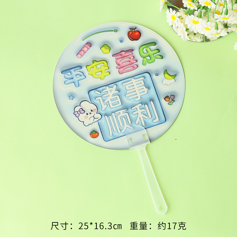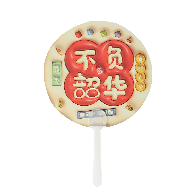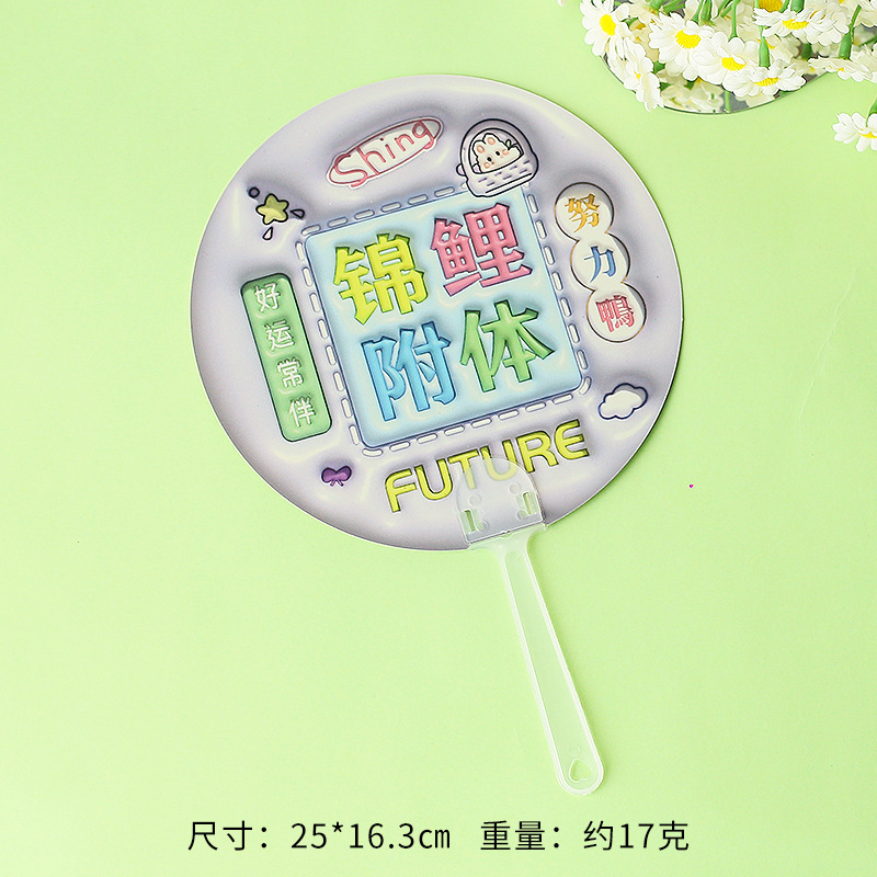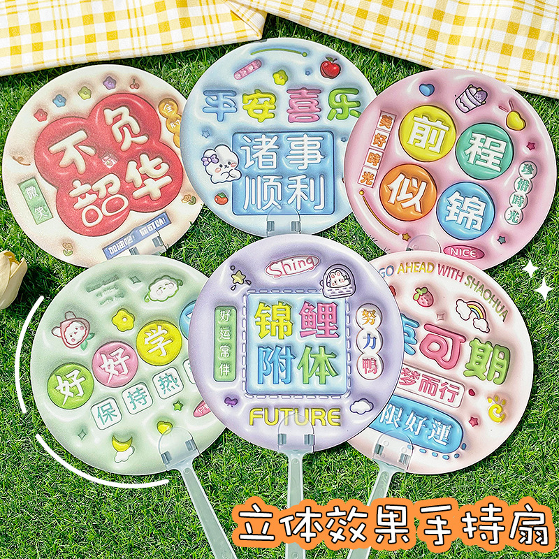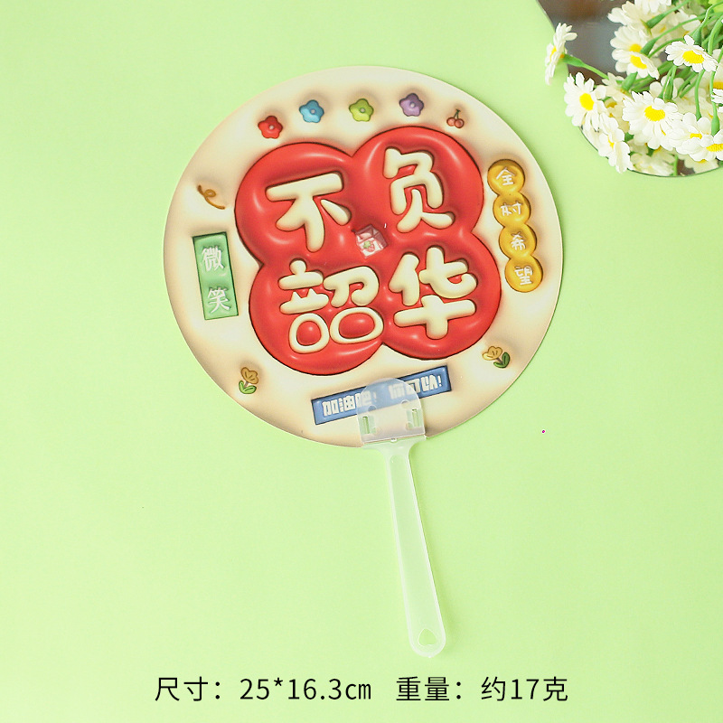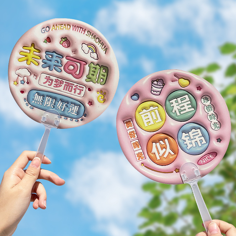 卡通膨胀立体手摇扇 励志文字手持小圆扇学生迷你便携小扇子礼物