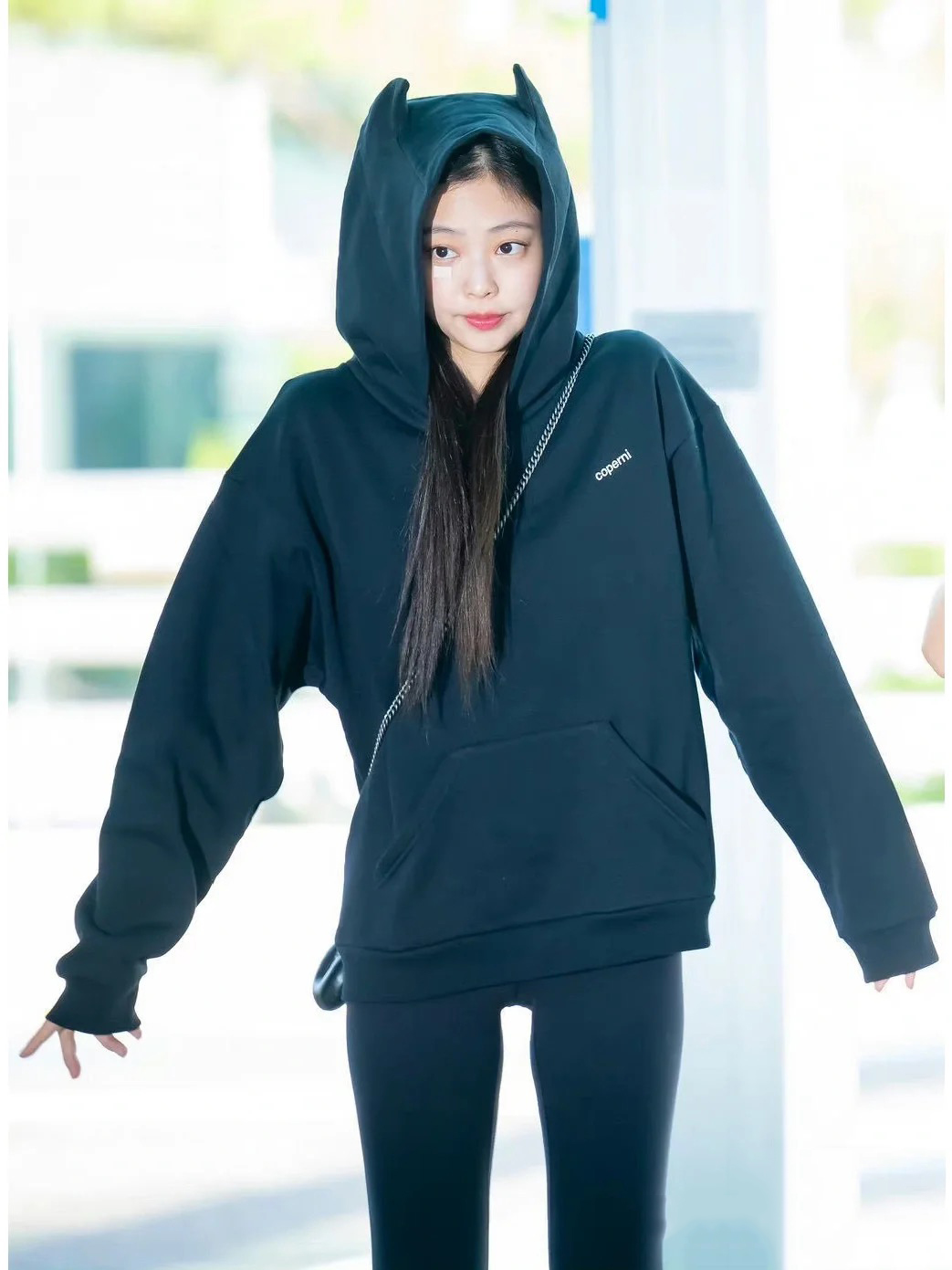 jennie同款早秋冬潮牌字母刺繡寬鬆休閒情侶連帽長袖套頭厚棉T外套