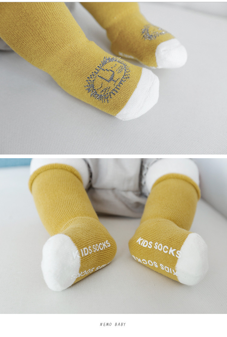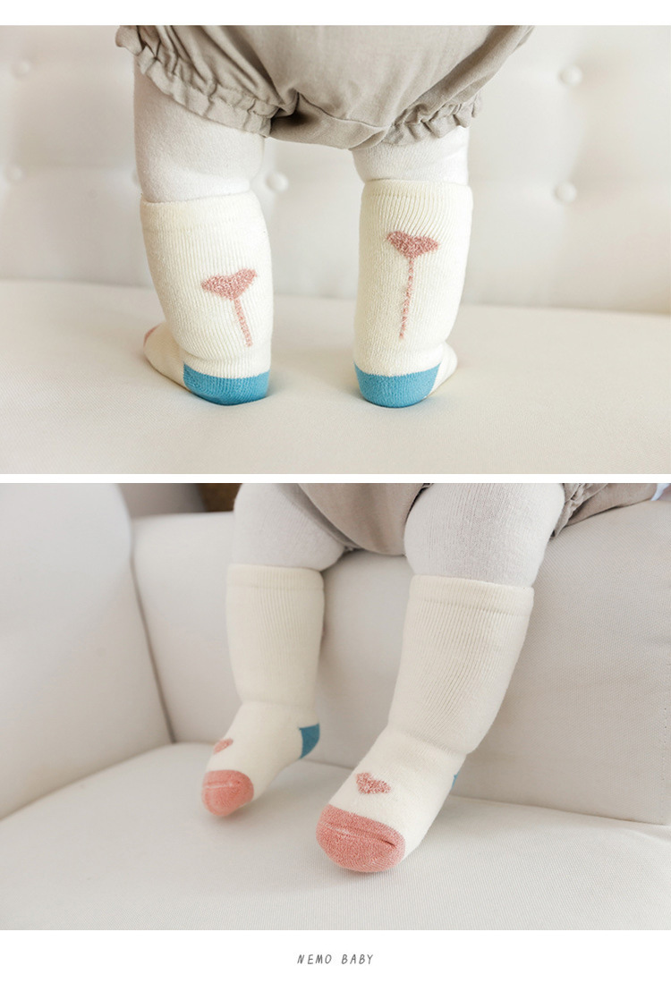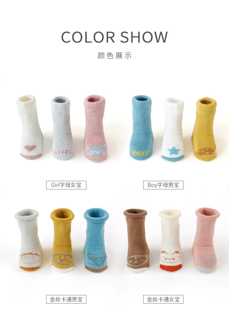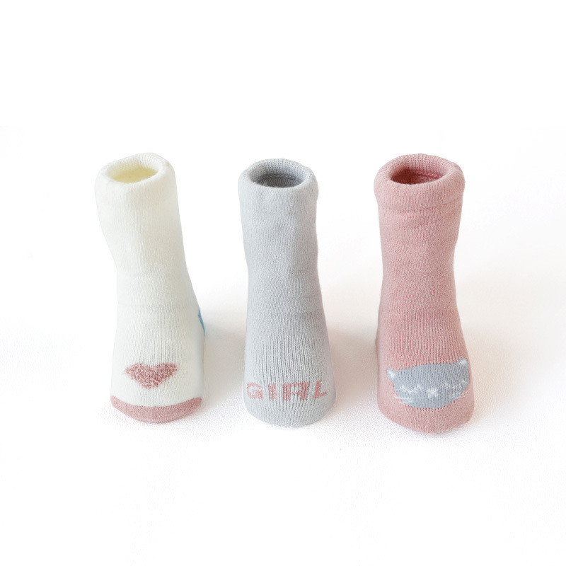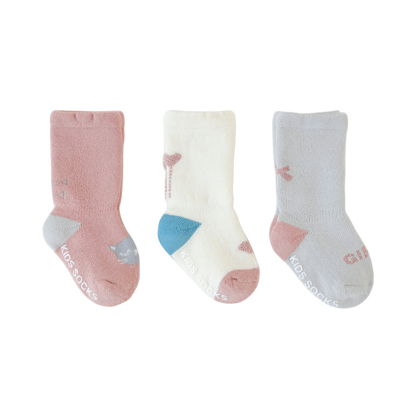 秋冬儿童袜子毛圈加厚婴儿袜子点胶卡通防滑宝宝高筒新生儿地板袜