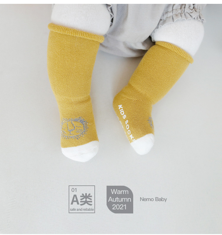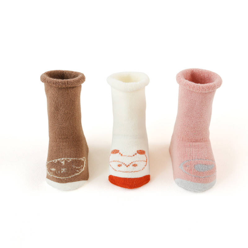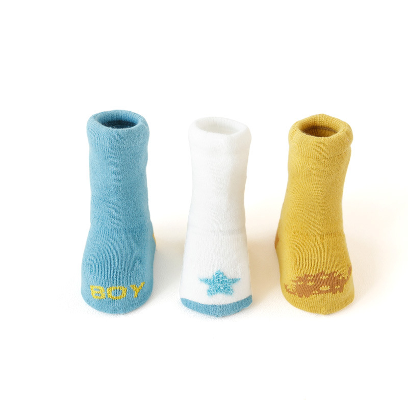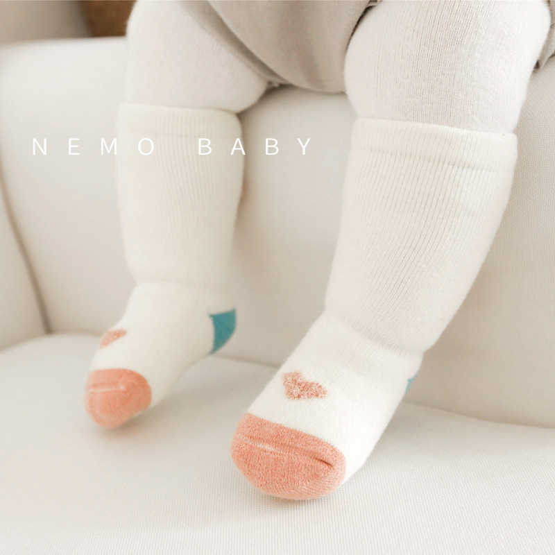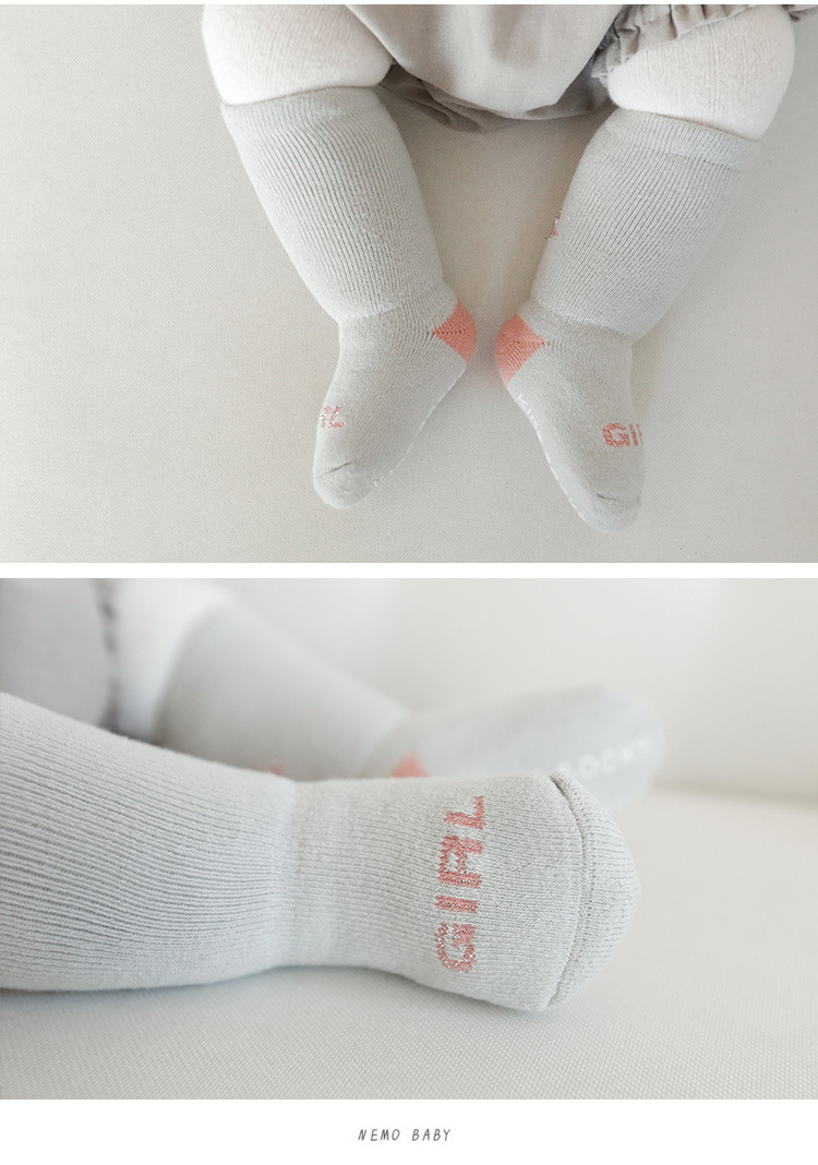 秋冬儿童袜子毛圈加厚婴儿袜子点胶卡通防滑宝宝高筒新生儿地板袜