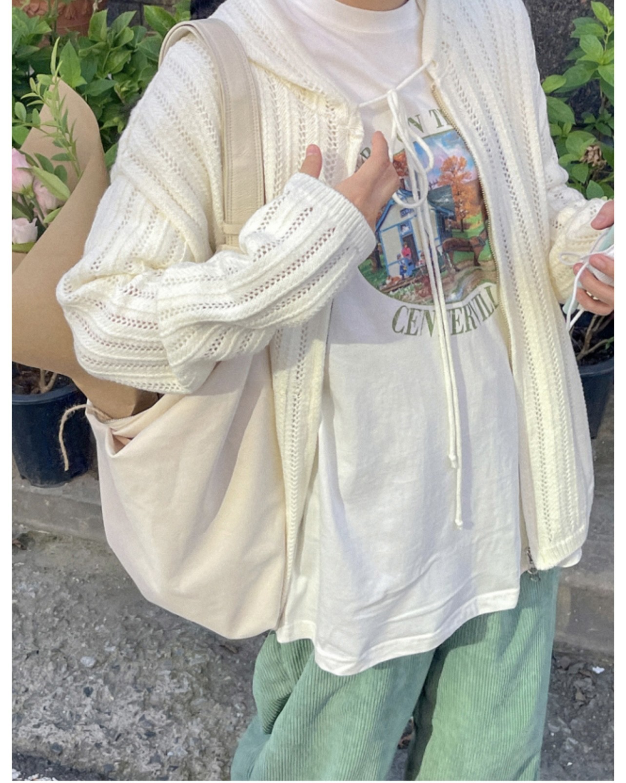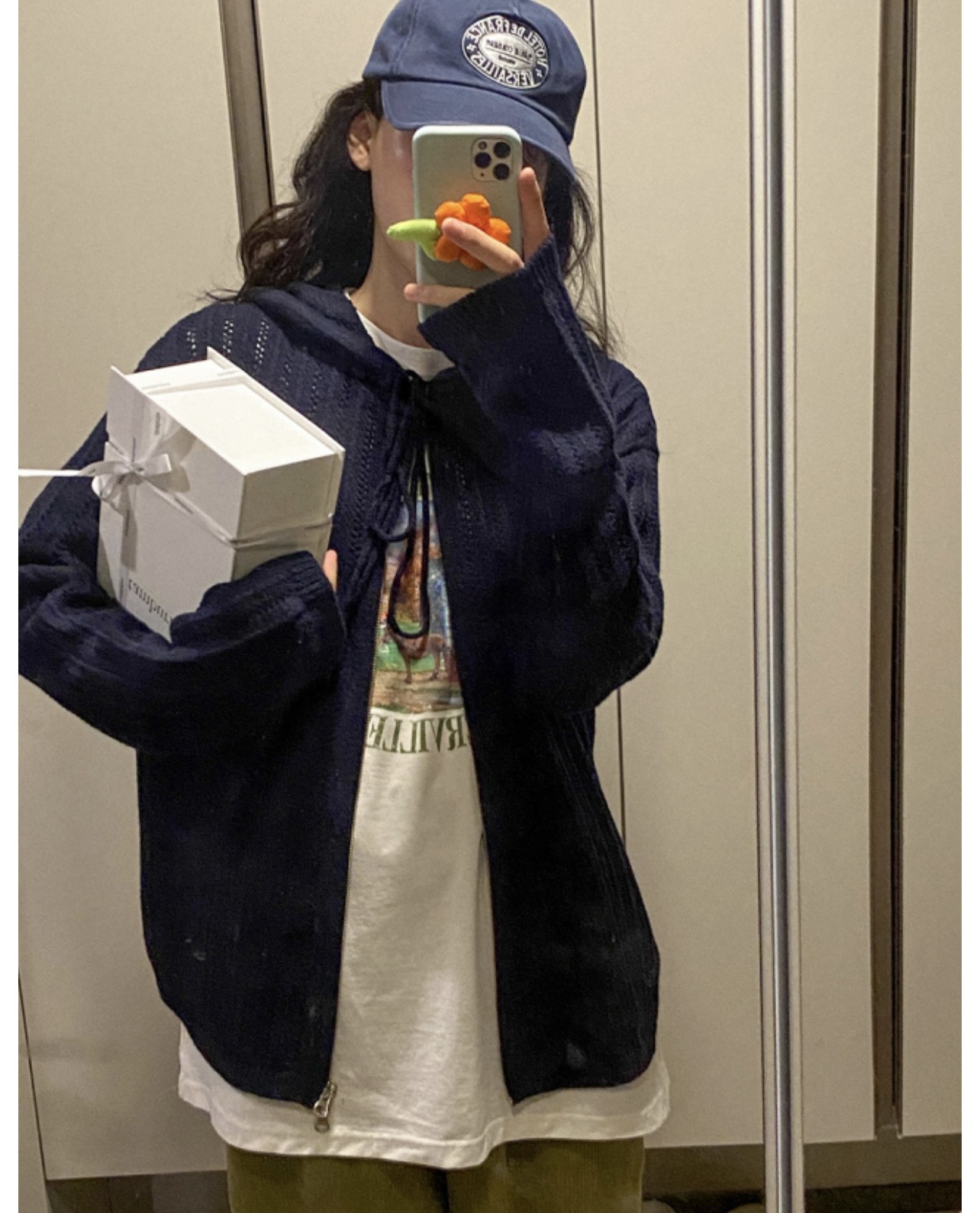 Unique SEI 簡約個性少女感減齡鏤空寬鬆連帽拉鍊針織衫防曬外套