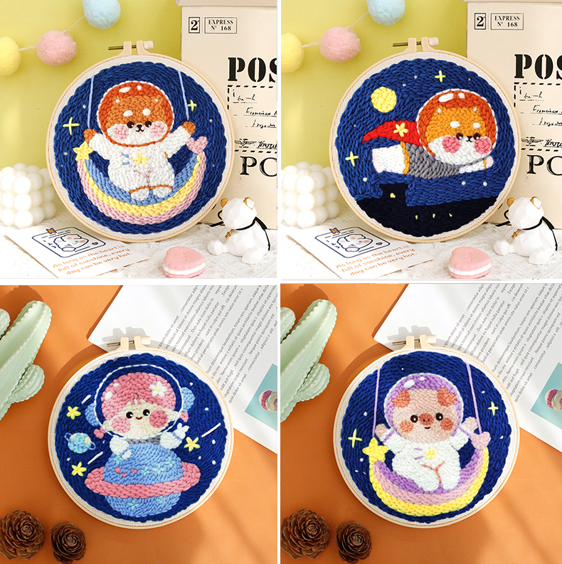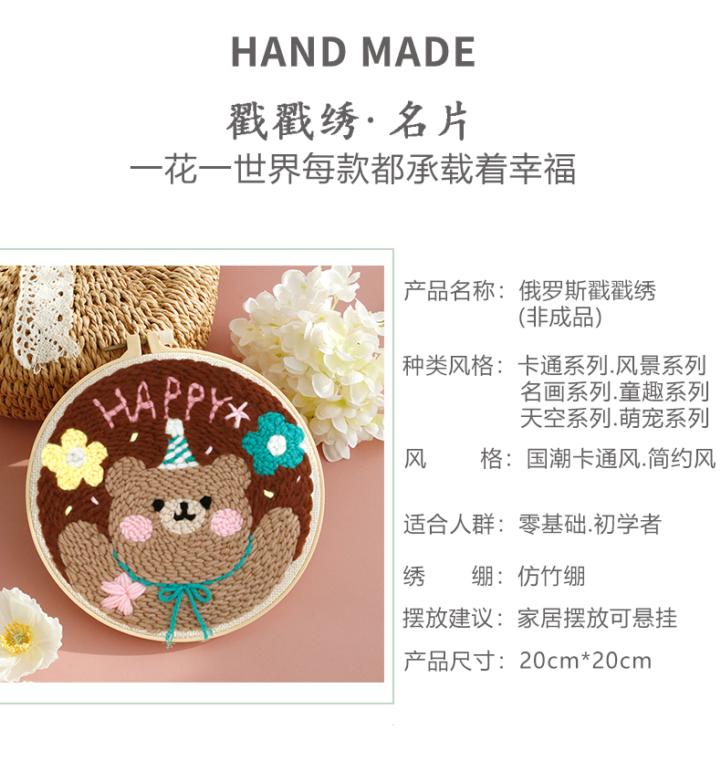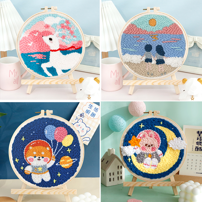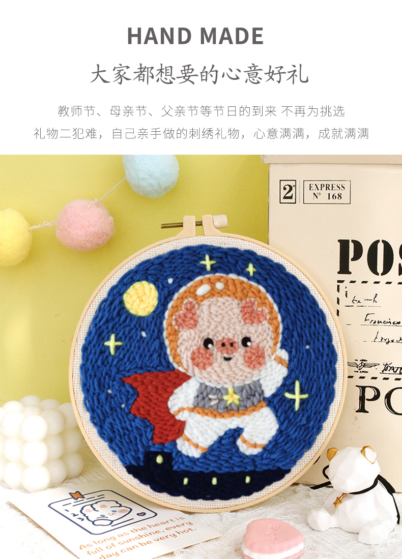 diy手工刺繡材料包俄羅斯戳戳繡毛線畫針戳戳秀十字繡情侶掛畫禮物