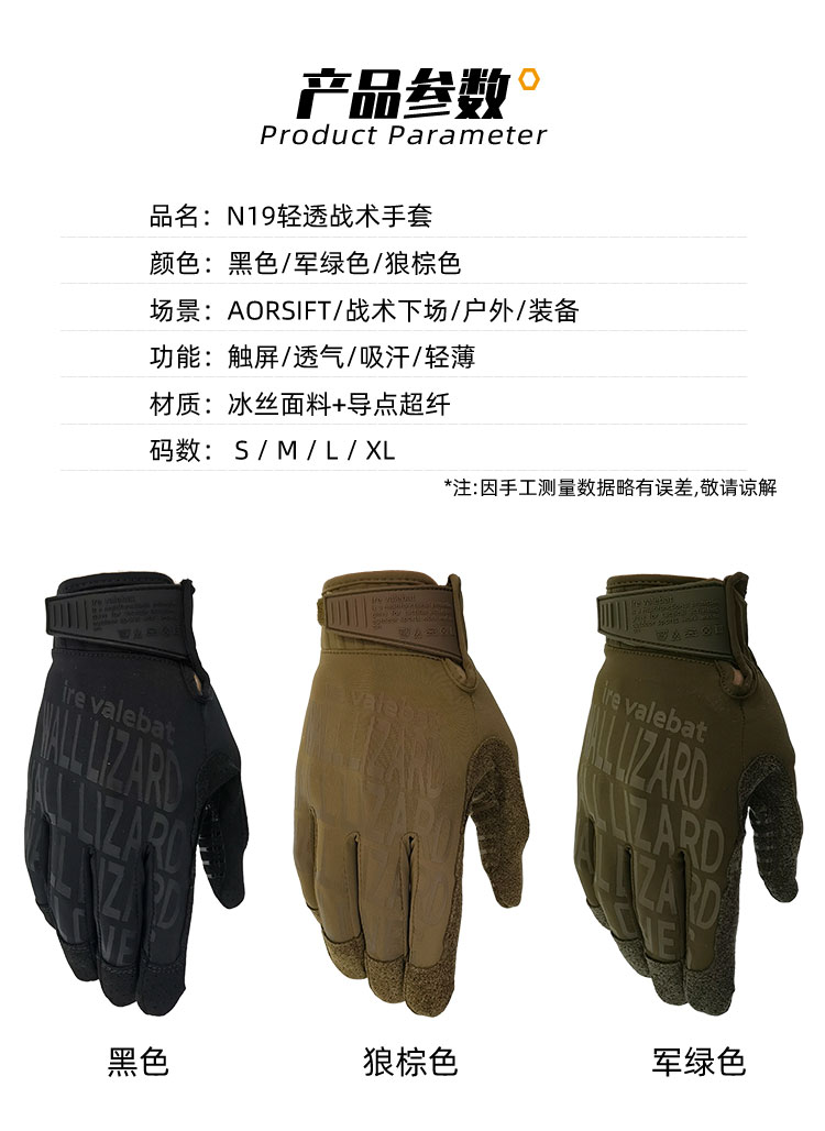 超級技師0.5平替 N19輕透戰術手套 冰絲夏季透氣薄款觸控屏幕運動手套