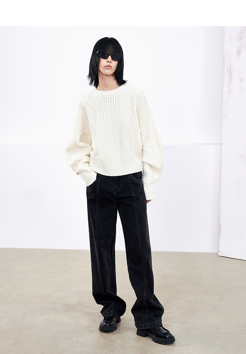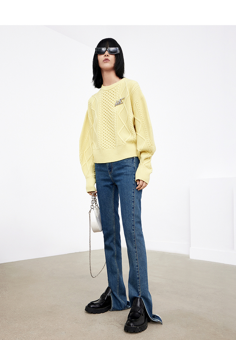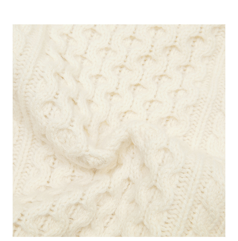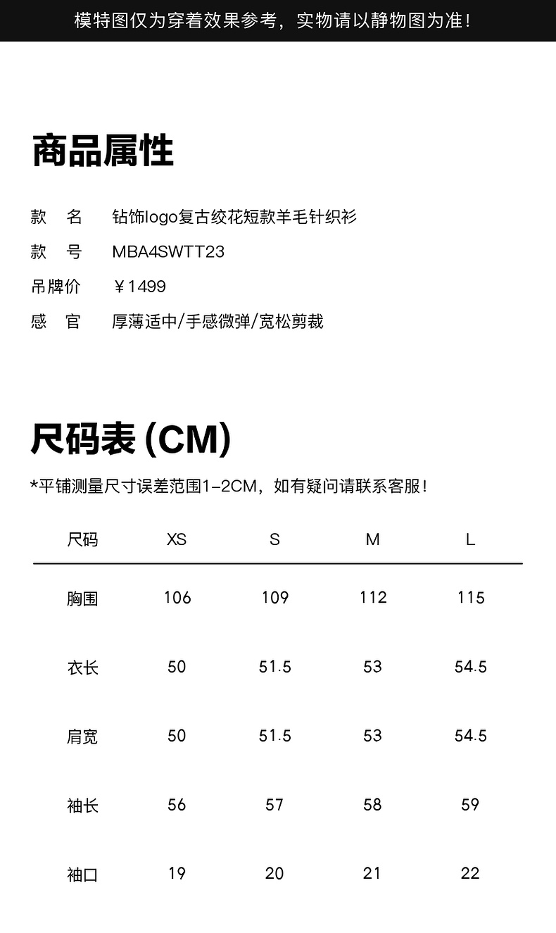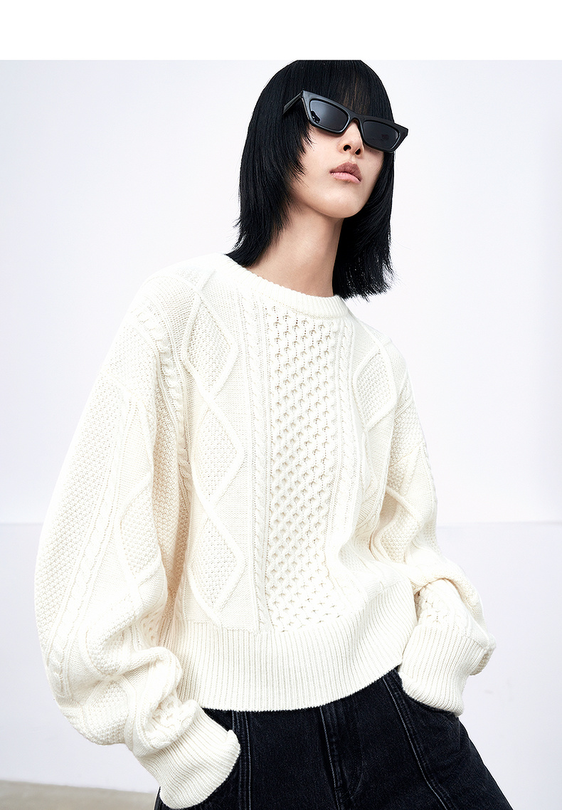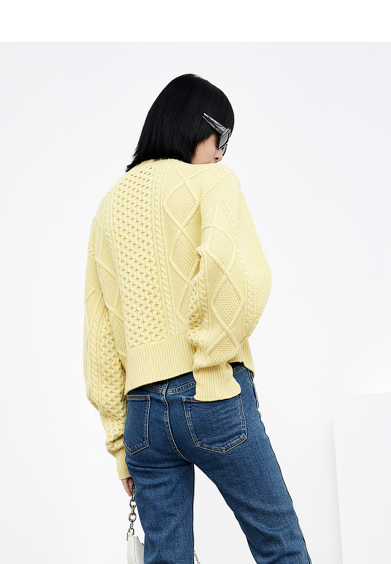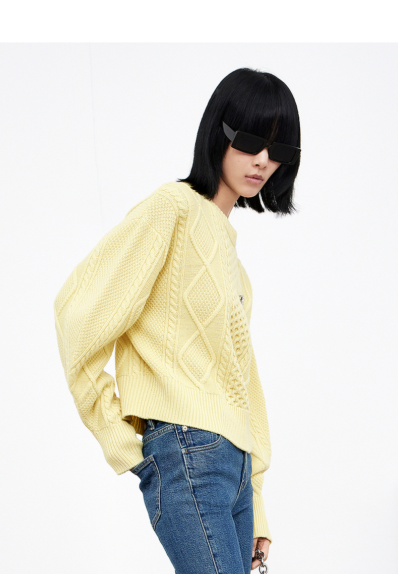 【MOCO獨享售罄下架】鑽飾logo復古絞花套頭短款羊毛針織衫美麗諾