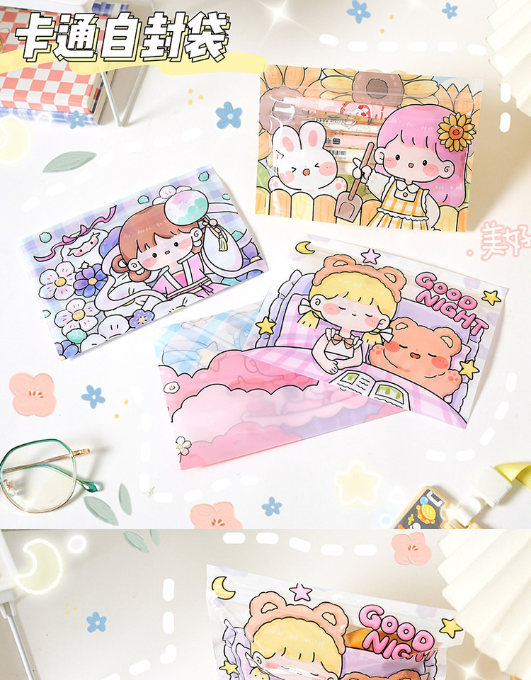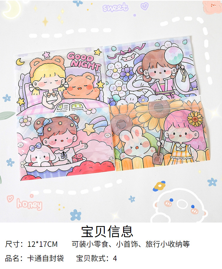 韩国卡通女孩零食首饰横版收纳自封袋少女心糖果口罩包装袋糖果袋