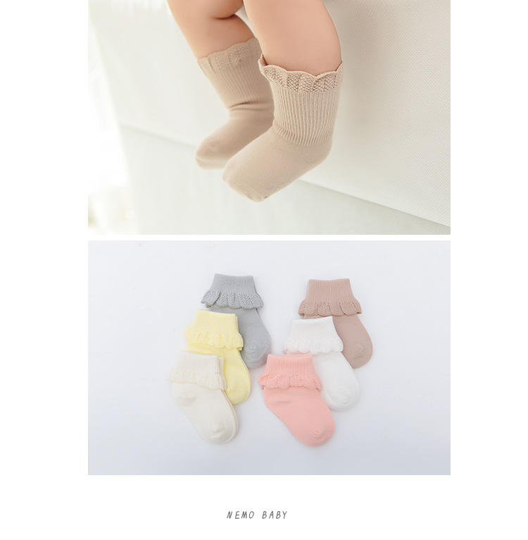 春夏季全棉花边宝宝袜子 纯棉防滑婴儿袜 女童双针纯色韩国公主袜3.80