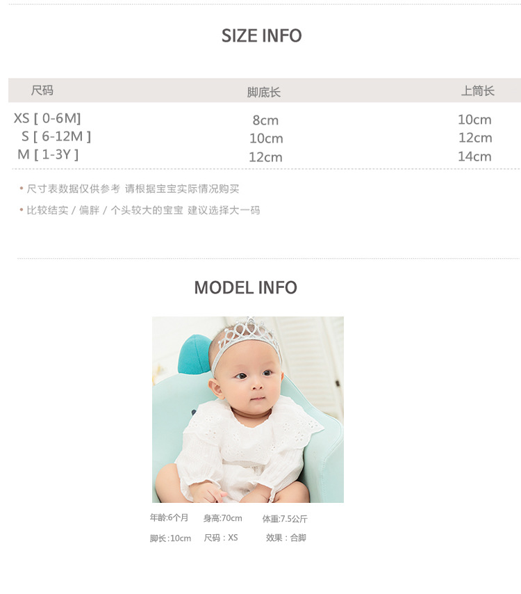 童袜尺码 XS码(0-6个月),S码(6-12个月),M码(1-3岁)