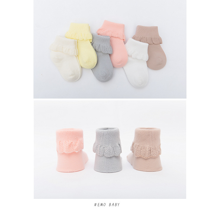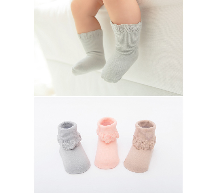 春秋手工缝头纯色全棉婴儿袜子 可爱花边纯棉宝宝袜子 男女儿童袜2.70