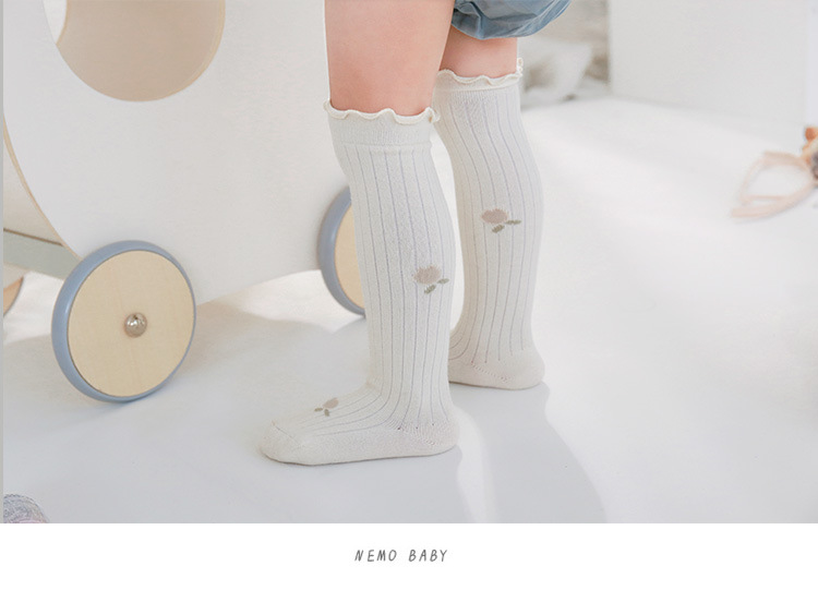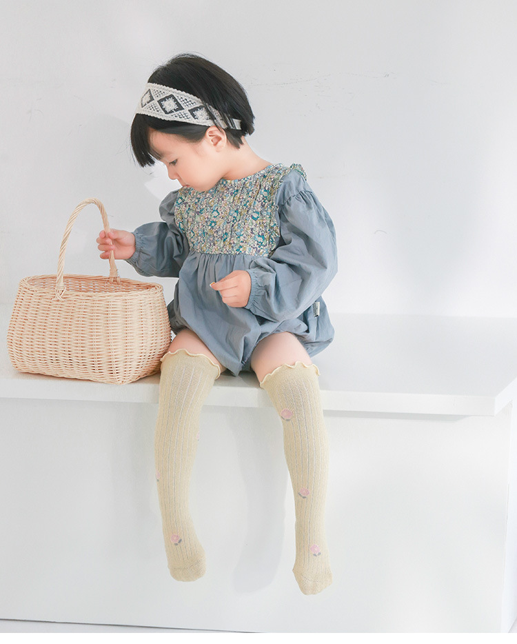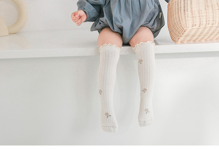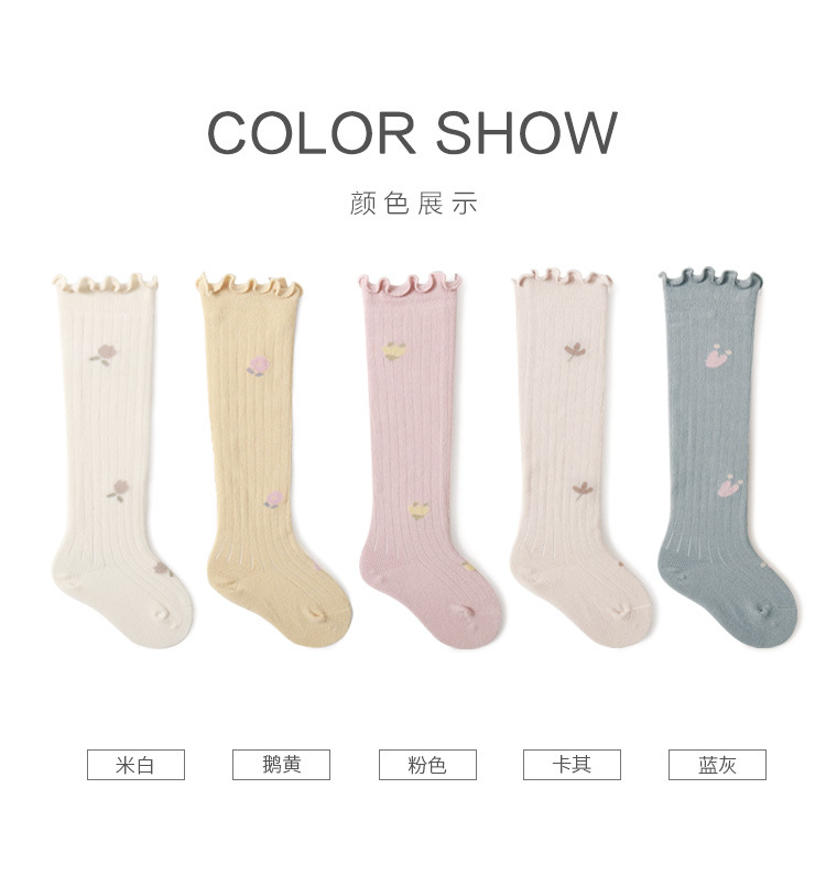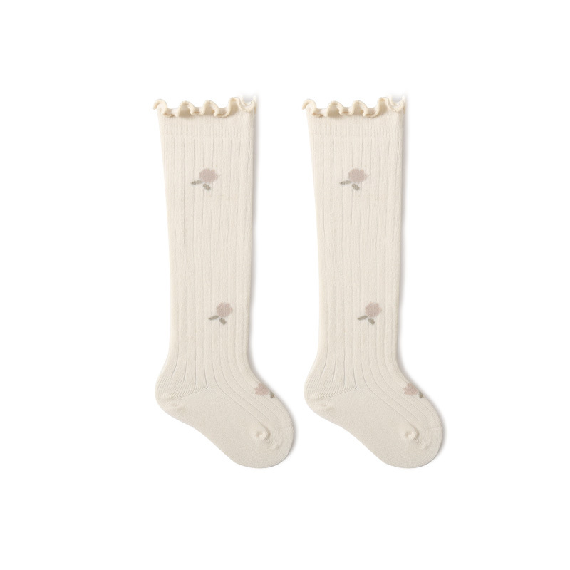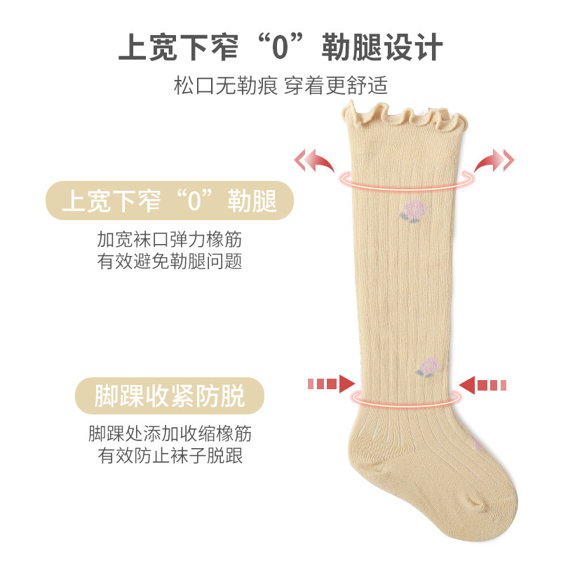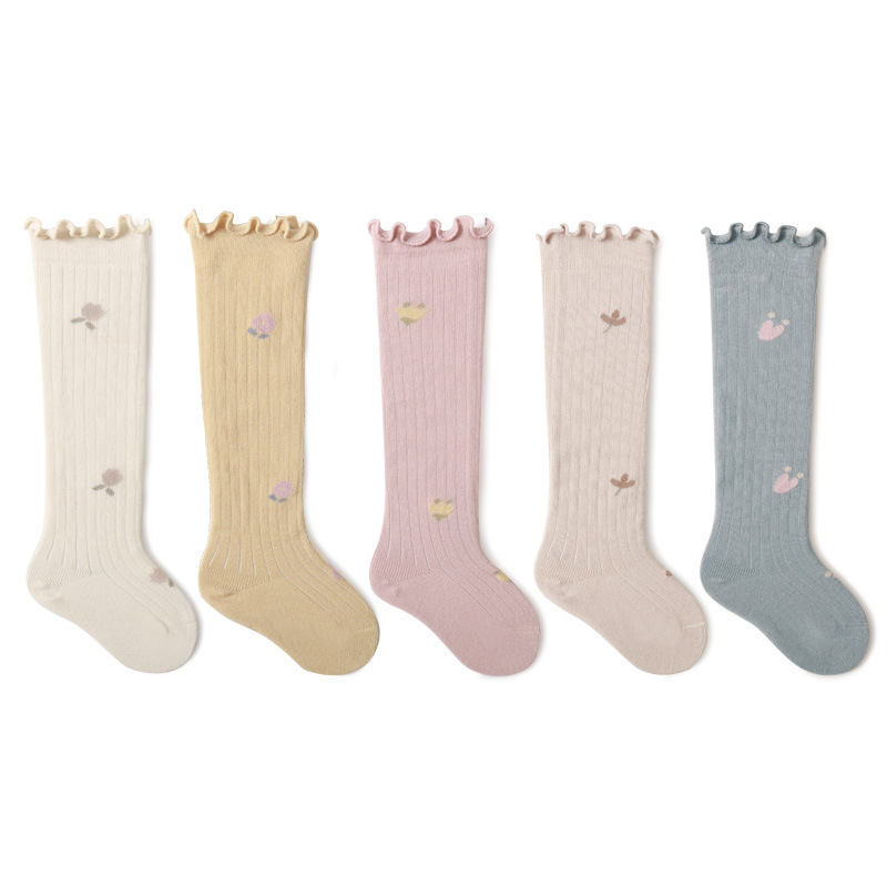 婴儿长筒袜子宝宝精梳棉春秋儿童高筒袜碎花松口新生儿不勒腿袜子