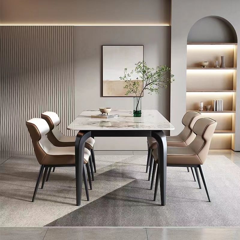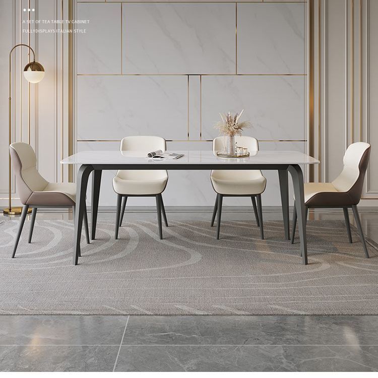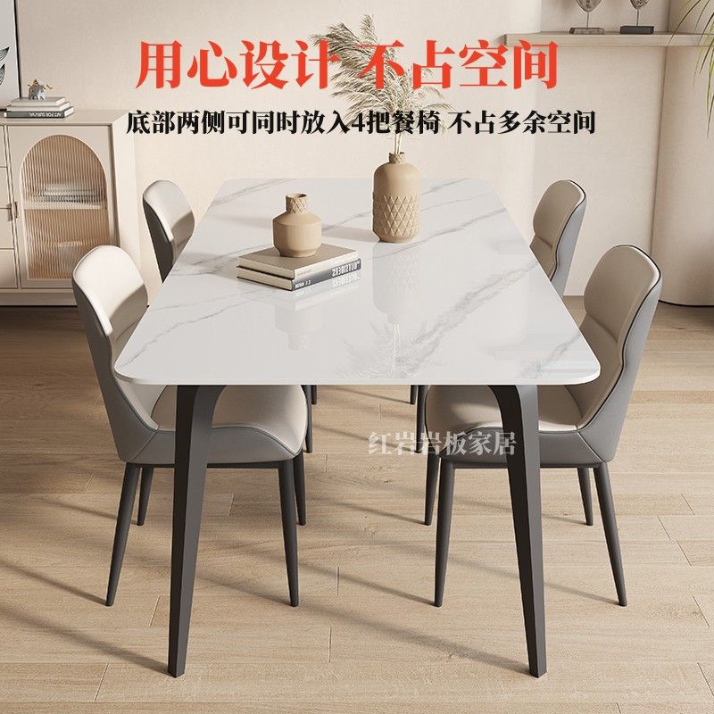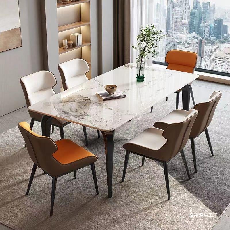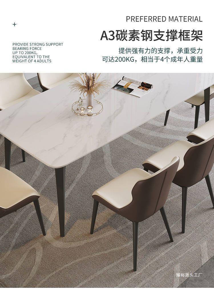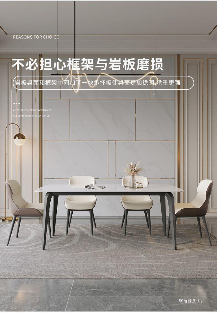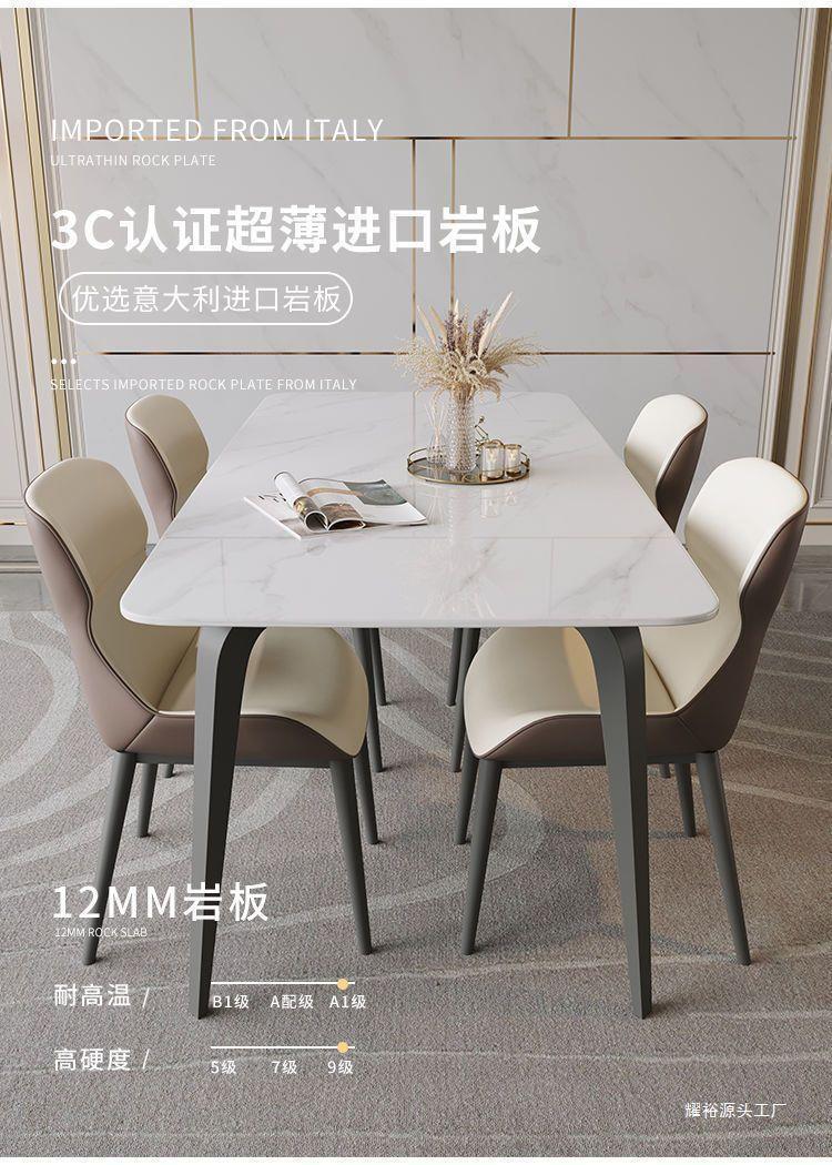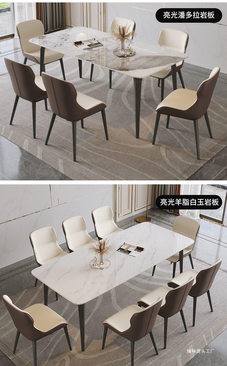 意式亮光椅组合奶油新款小户型家用岩板长方形腿餐桌岩板餐桌