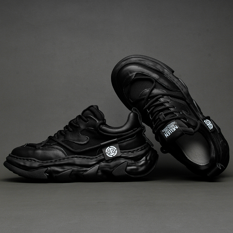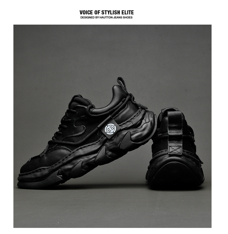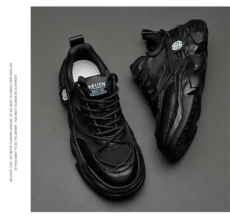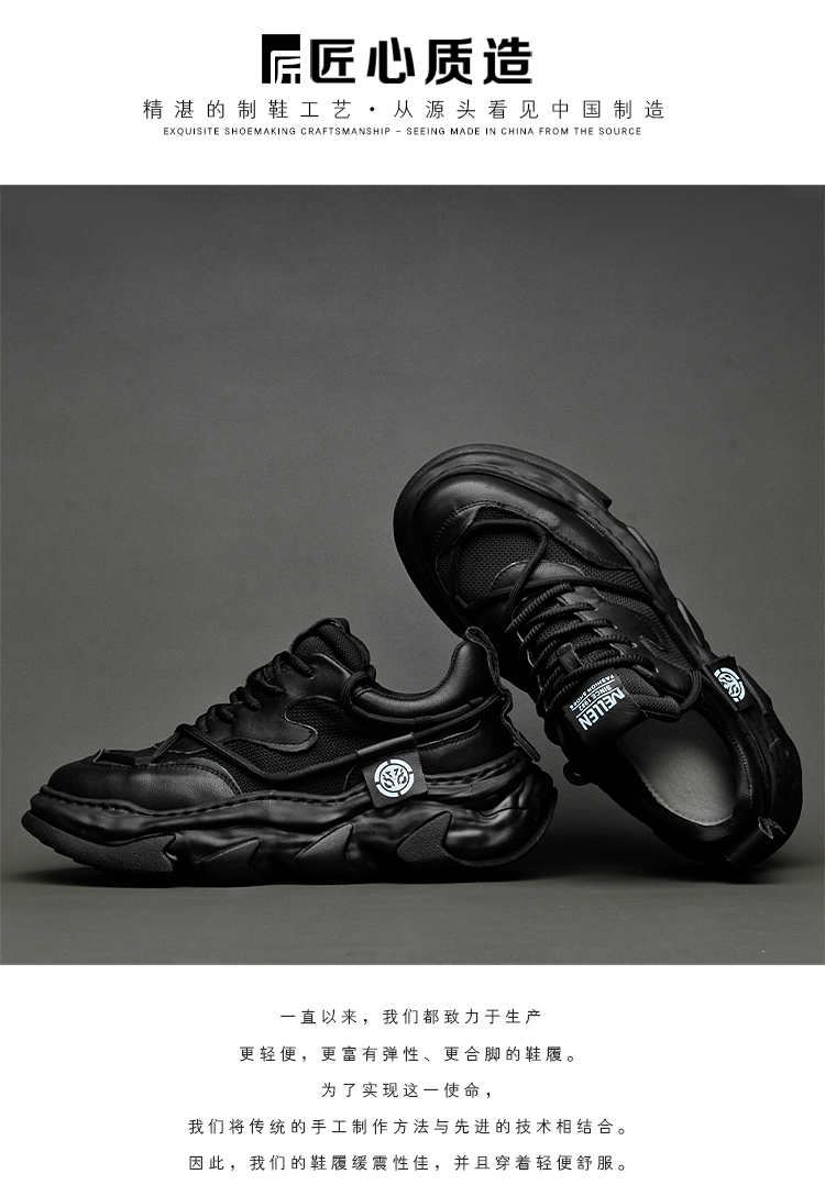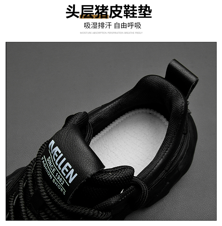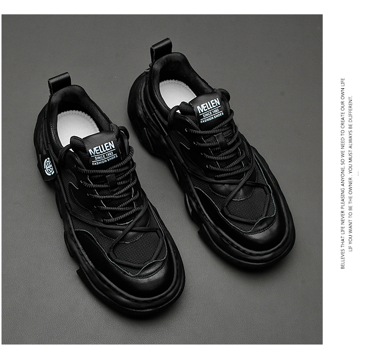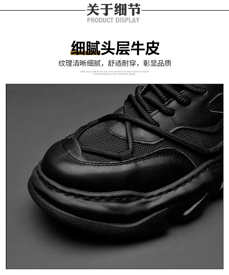 男鞋2023夏季新款潮流板鞋韓版厚底增高老爹鞋真皮透氣運動休閒鞋