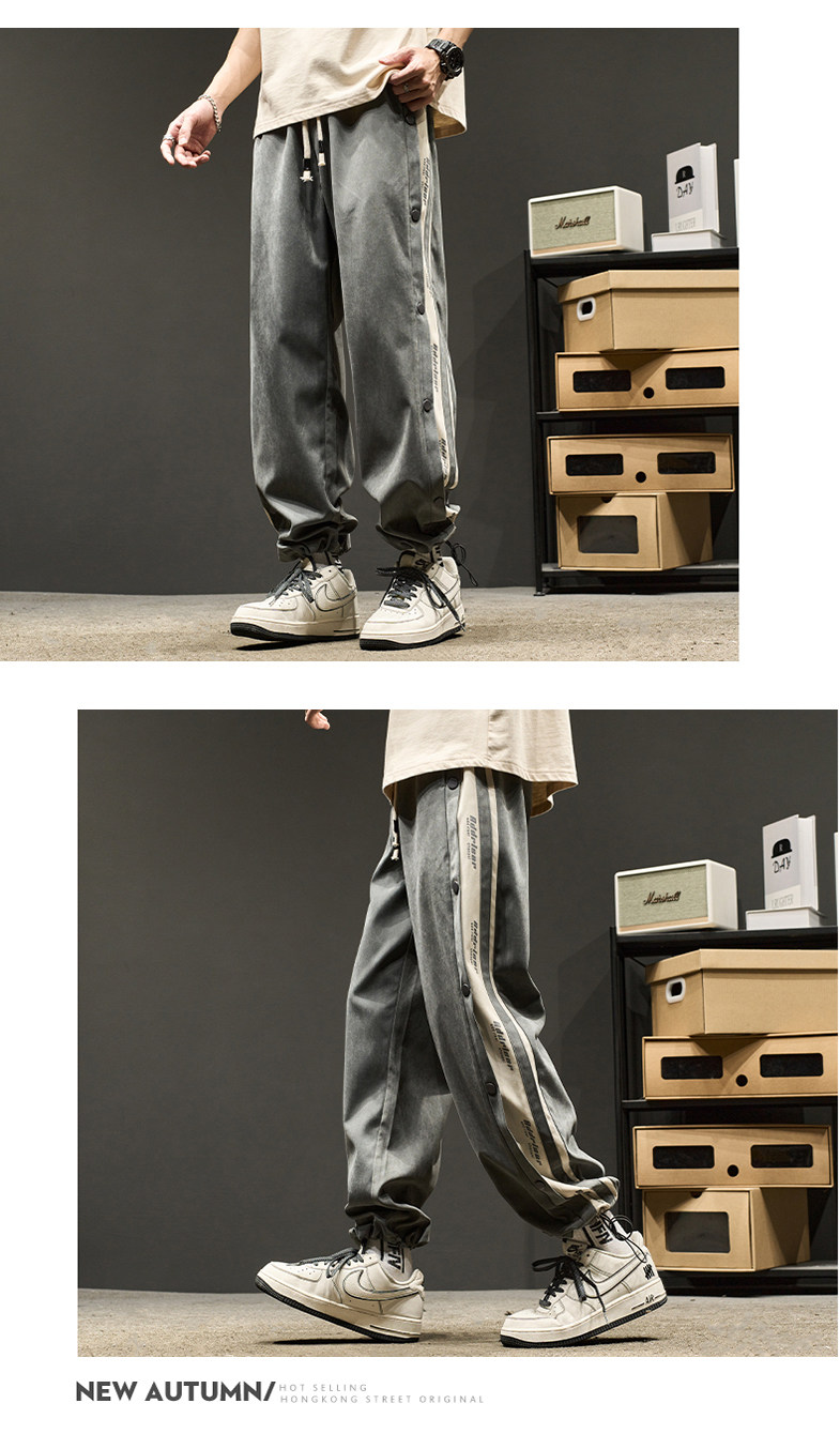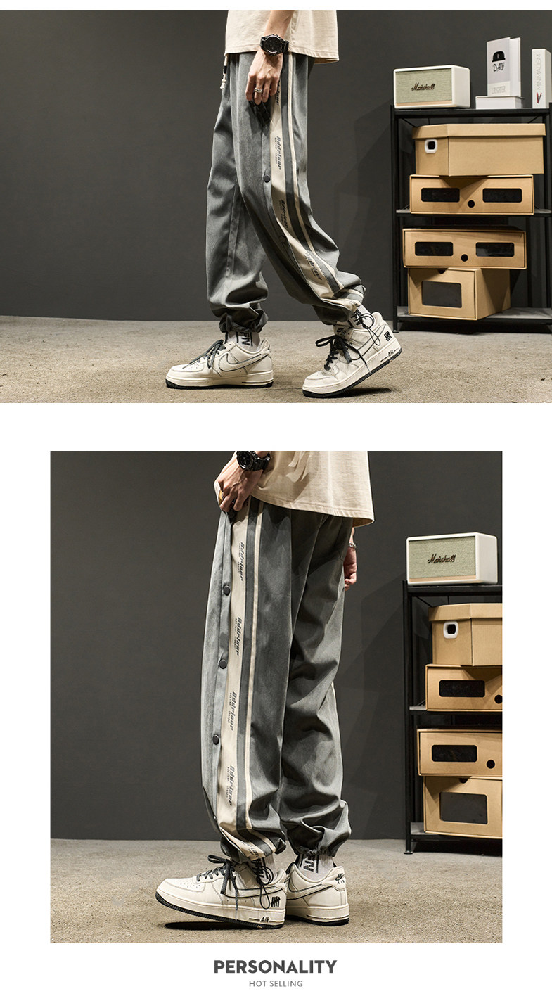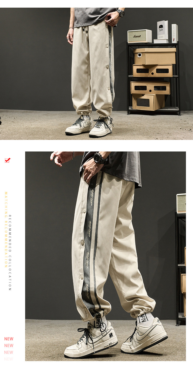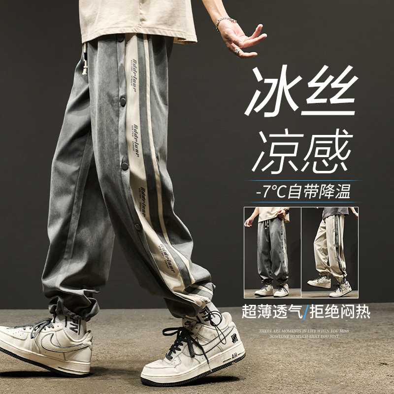 冰絲褲子男士夏季薄款寬鬆束腳運動褲潮牌男生排扣休閒褲春秋男裝