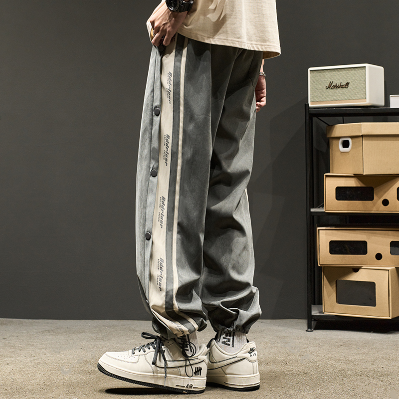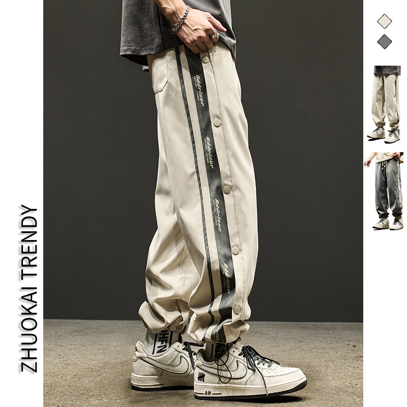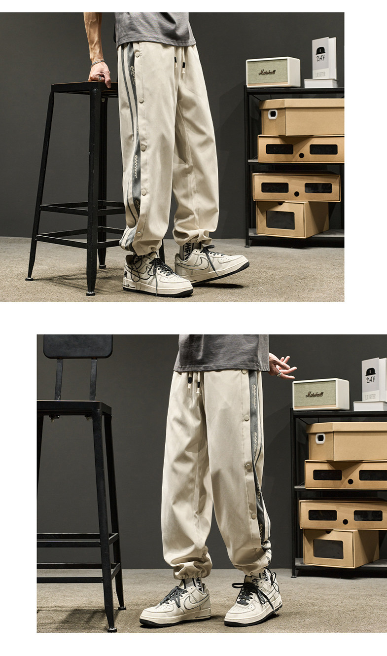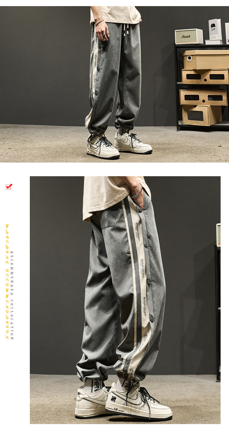 冰絲褲子男士夏季薄款寬鬆束腳運動褲潮牌男生排扣休閒褲春秋男裝
