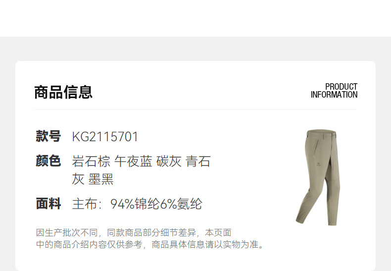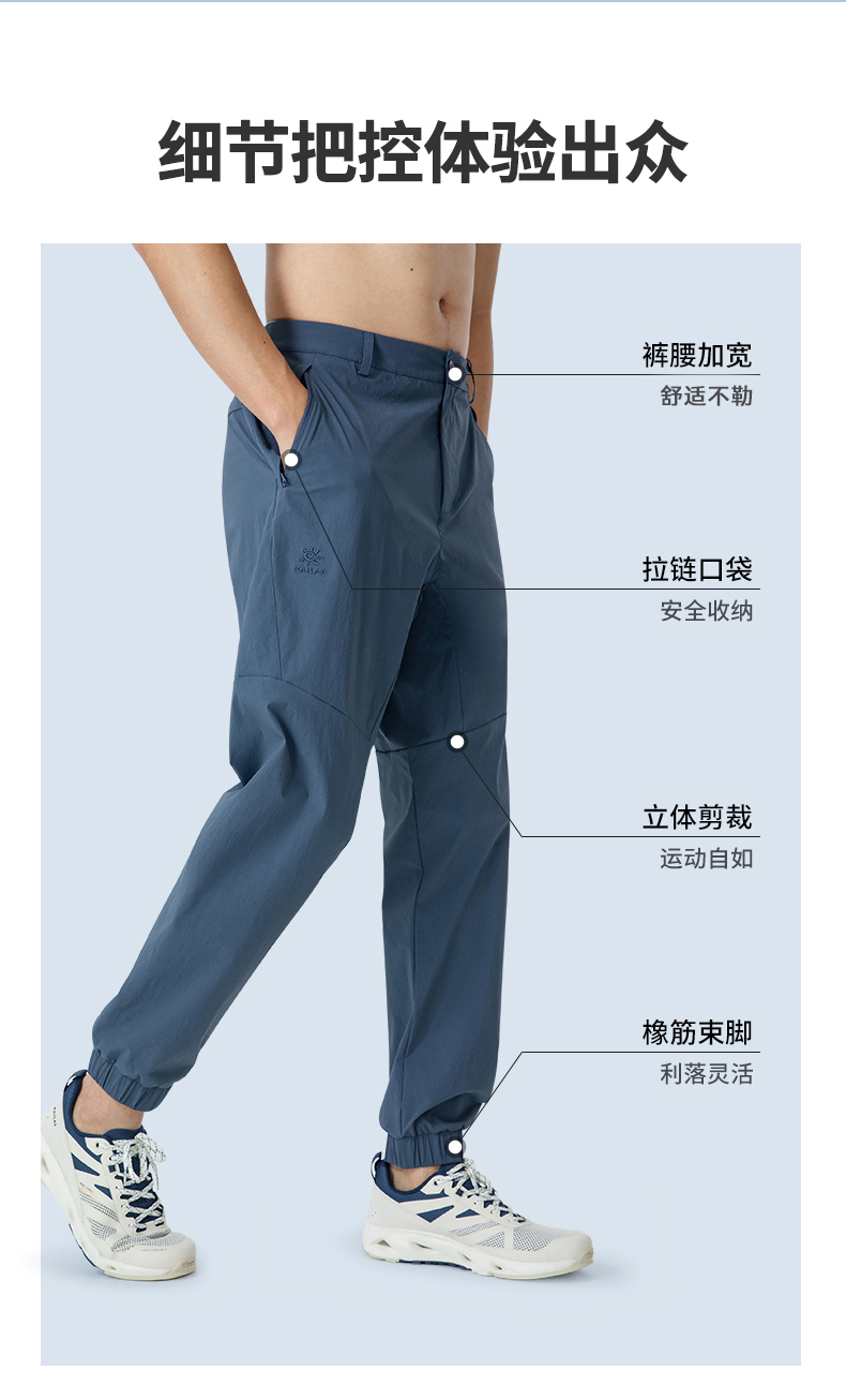 凱樂石速乾褲男款彈力束口褲修身錐形褲戶外登山褲快乾徒步褲夏季