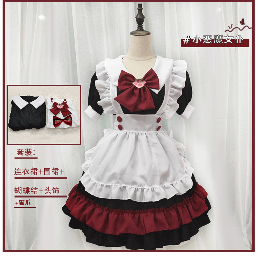 万圣节吸血鬼小恶魔女仆 Lolita哥特风黑红女仆cos动漫角色扮演服