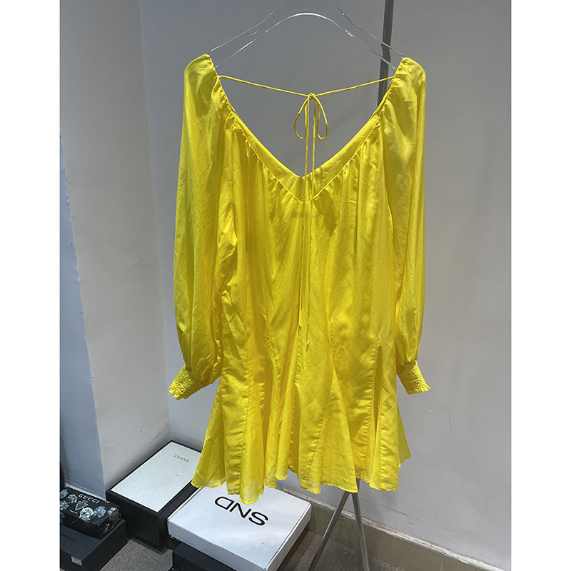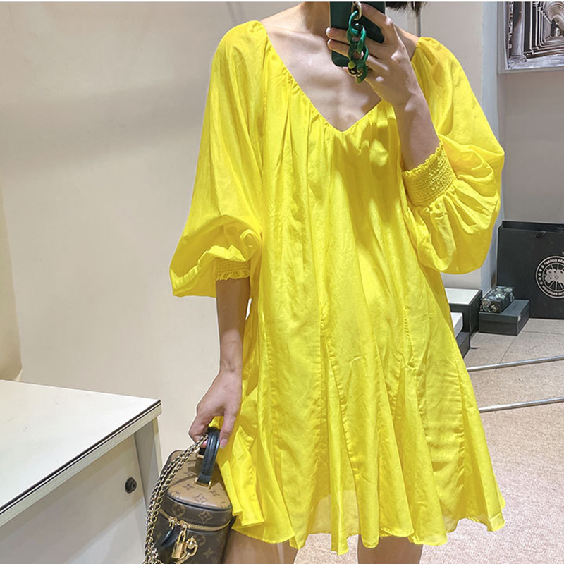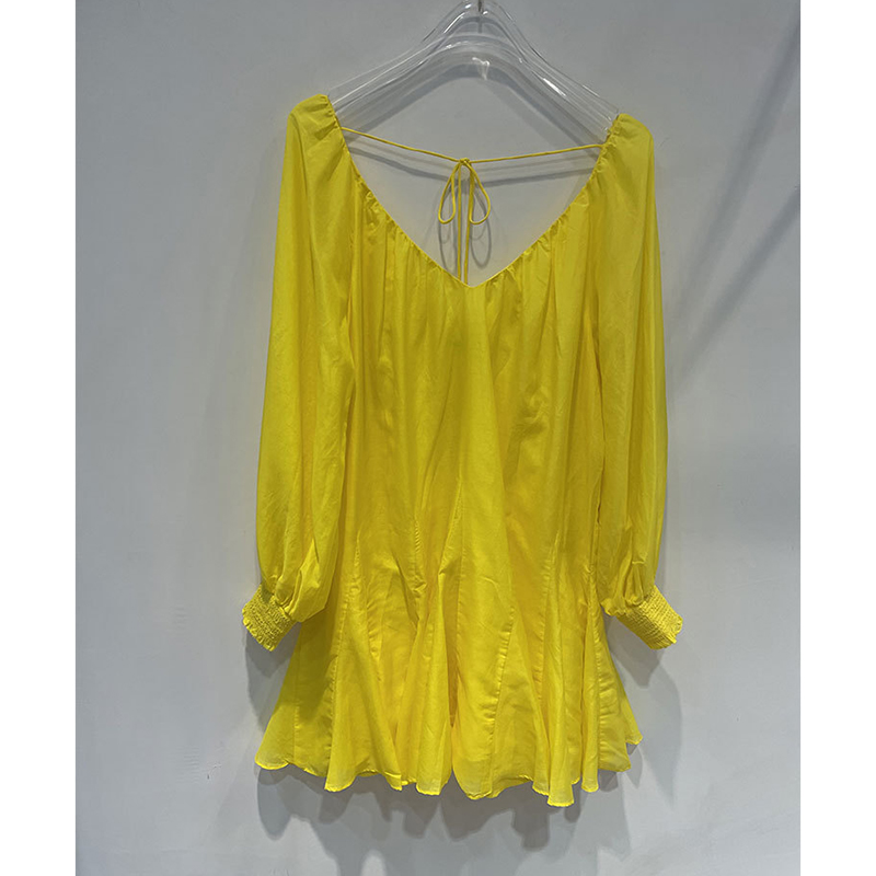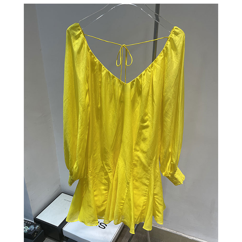 小眾2023春夏新款時尚氣質百搭寬鬆長袖繫帶中長版洋裝n女潮ins