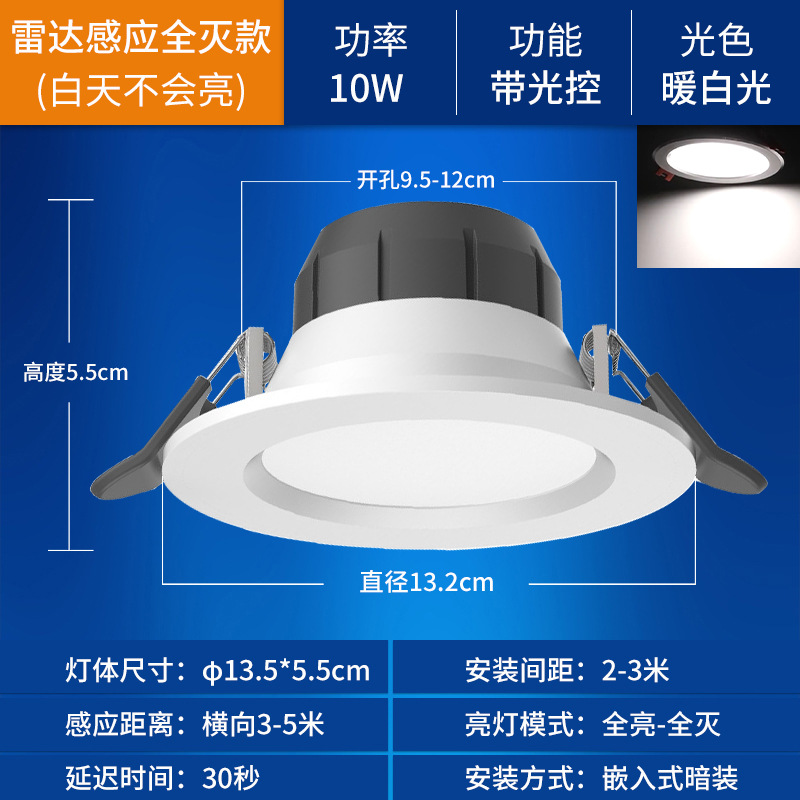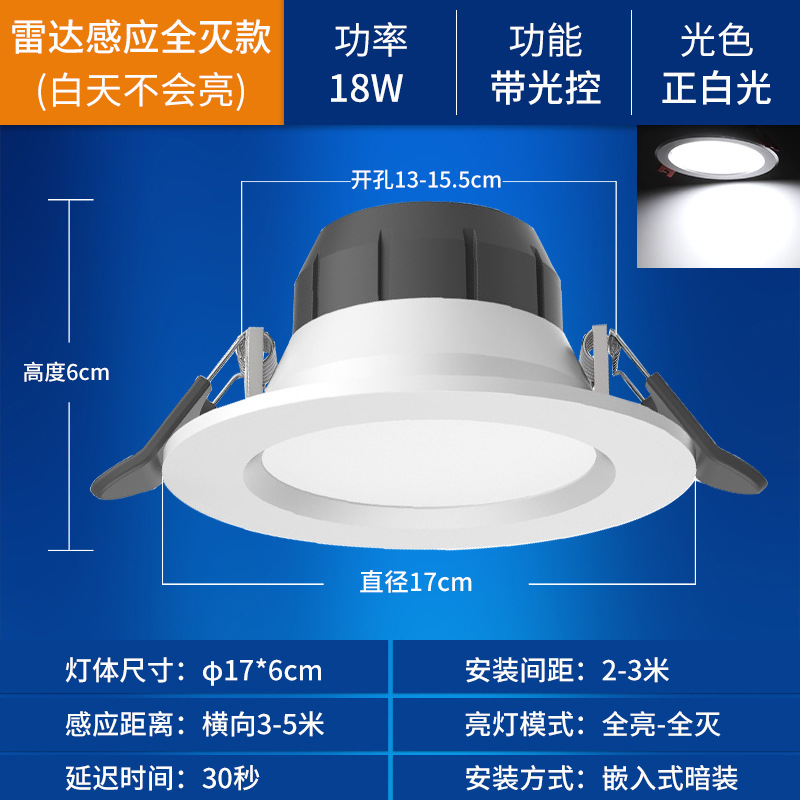 灯光颜色 体验价5.5W雷达感应白光【带光控全灭】 开孔7.5-9.5cm,5.5W雷达感应白光【带光控全灭】 开孔7.5-9.5cm,5.5W雷达感应暖白光【带光控全灭】 开孔7.5-9.5cm,5.5W雷达感应暖黄光【带光控全灭】 开孔7.5-9.5cm,10W雷达感应白光【带光控全灭】 开孔9.5-12cm,10W雷达感应暖白光【带光控全灭】 开孔9.5-12cm,10W雷达感应暖黄光【带光控全灭】 开孔9.5-12cm,18W雷达感应白光【带光控全灭】 开孔13-15.5cm,18W雷达感应暖白光【带光控全灭】 开孔13-15.5cm