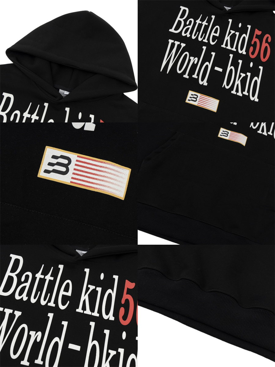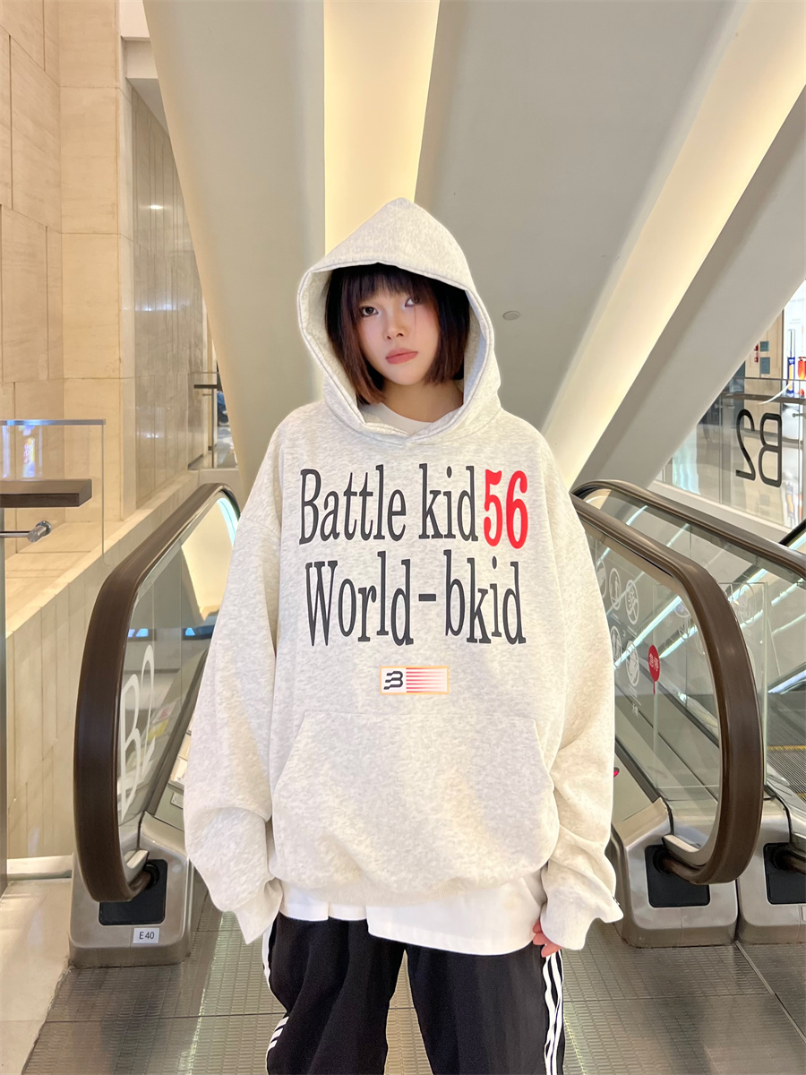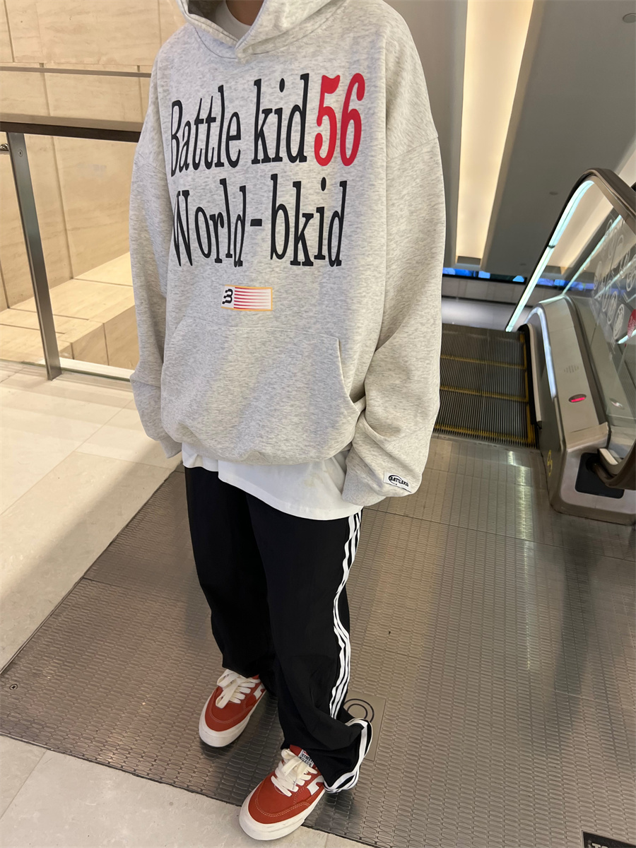 JU403 美式復古字母印花連帽運動衫春秋寬鬆休閒套頭百搭帽衫男女潮