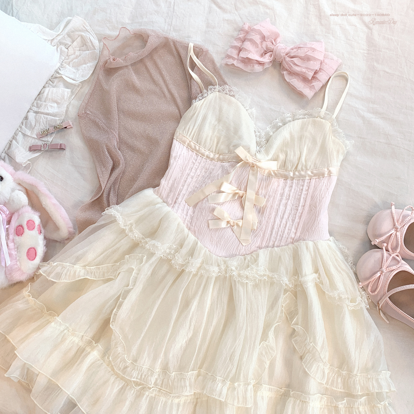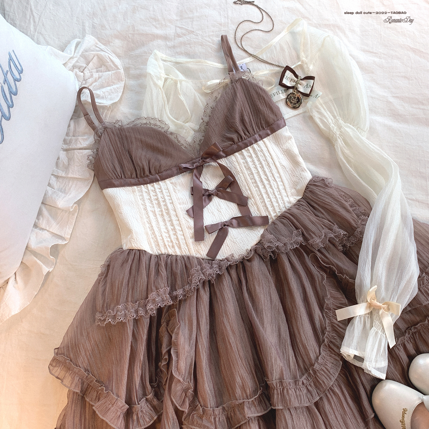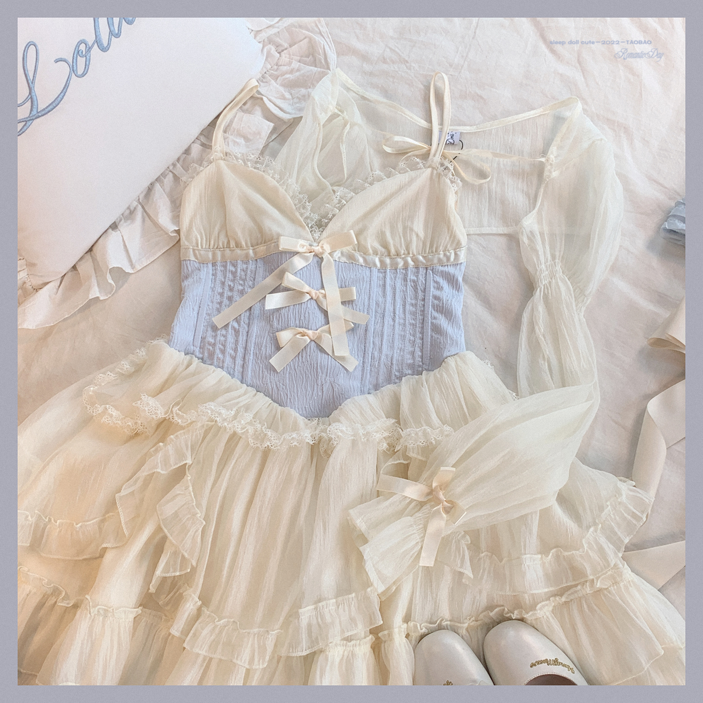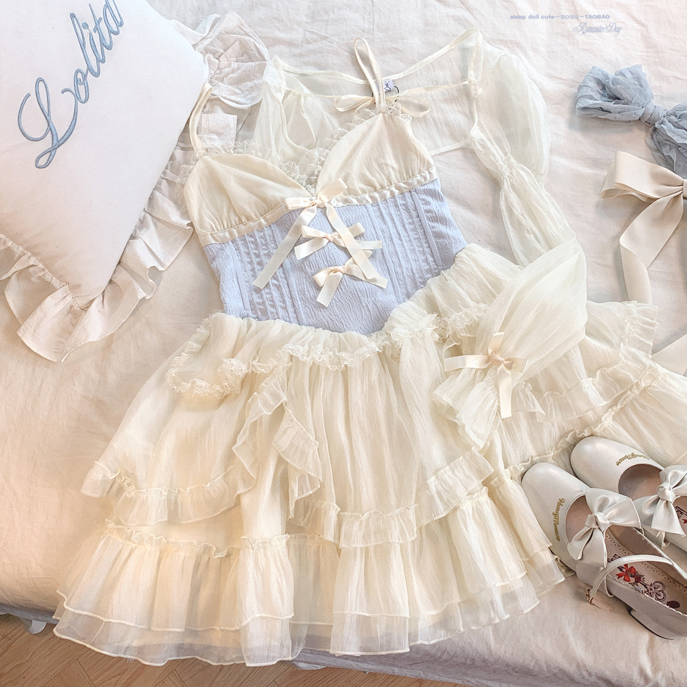 *sleepingdoll自制* 雲霧之姬 蝴蝶結提花復古吊帶蓬蓬洋裝